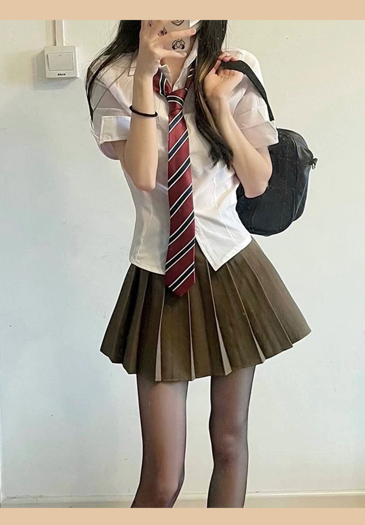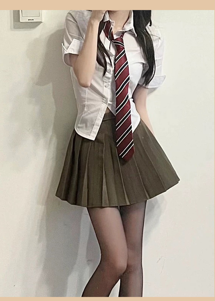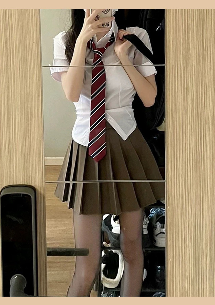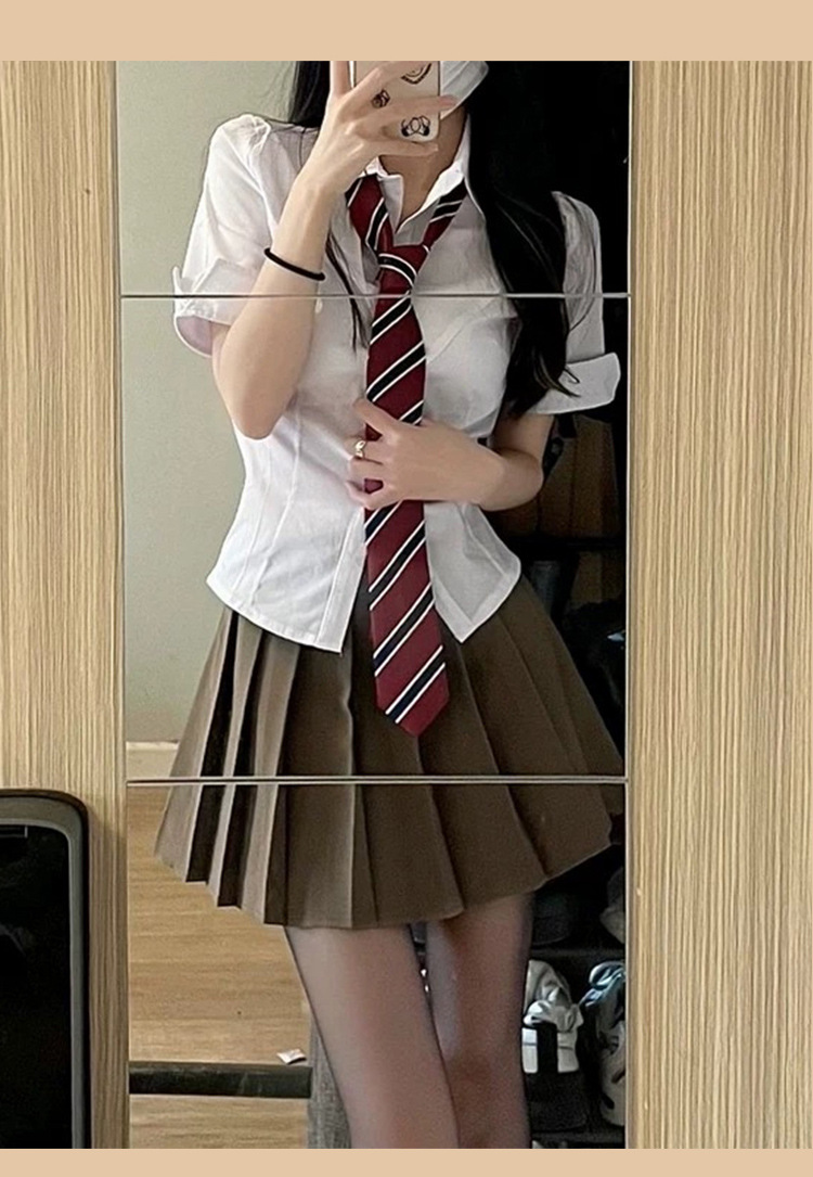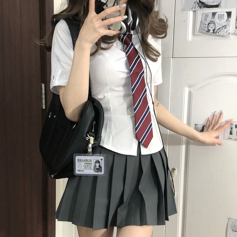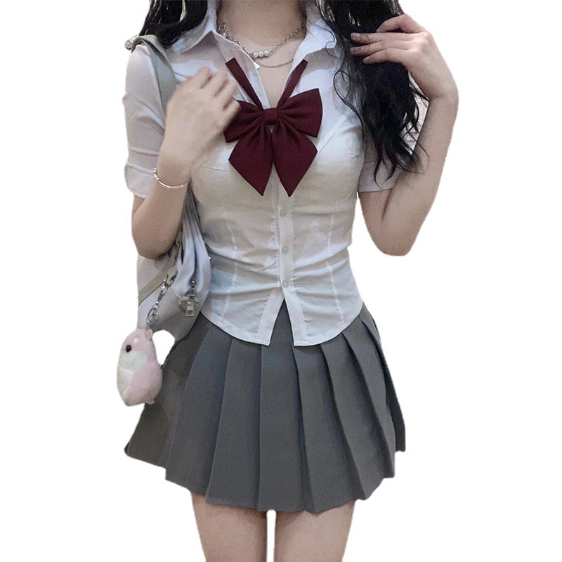 jk制服夏季新款绑带收腰jk衬衫泡泡袖短袖辣妹纯欲上衣学院风套装