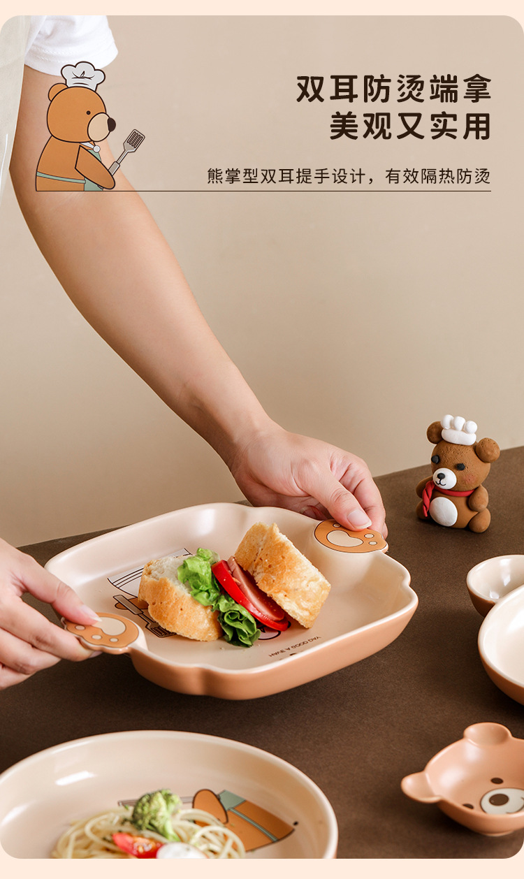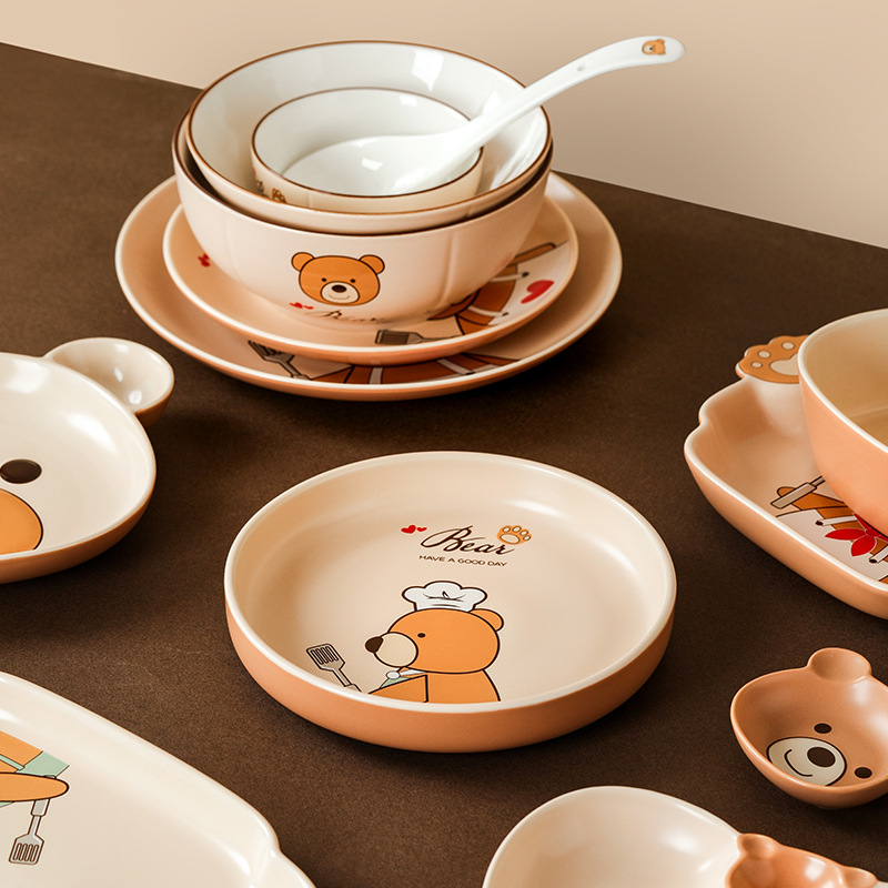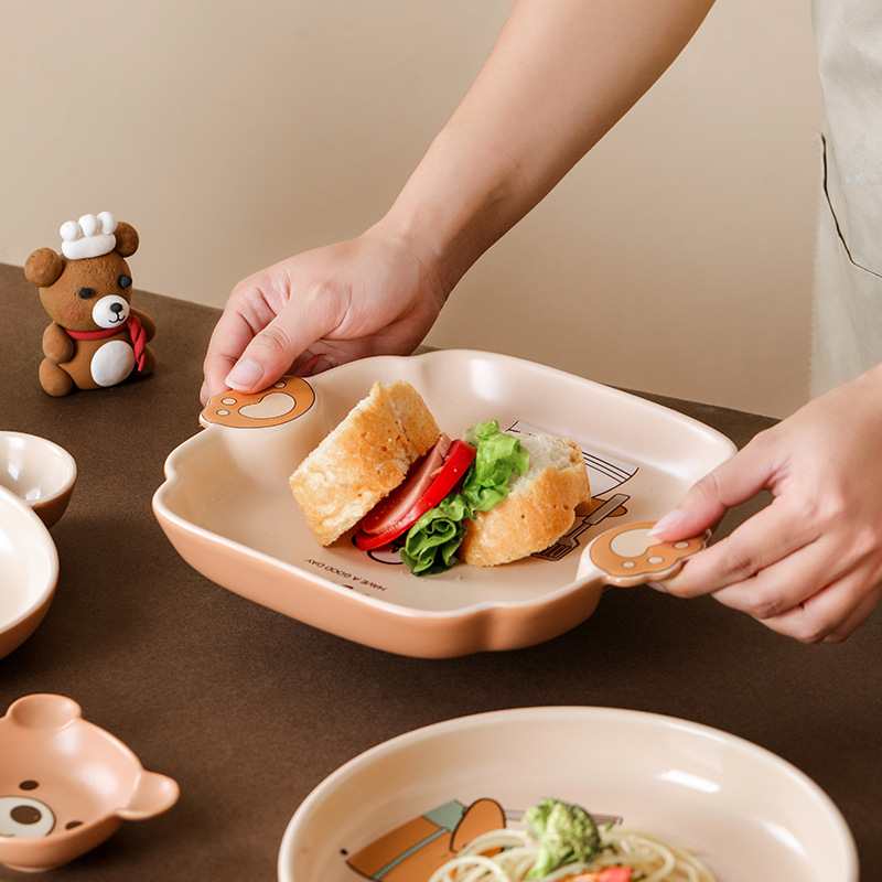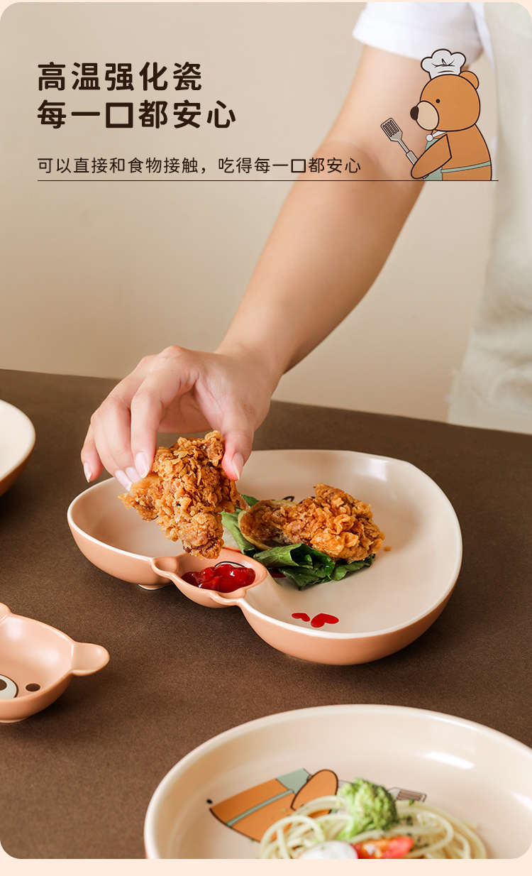 儿童碗盘碗碟子菜盘家用2021新款创意陶瓷餐具亲子可爱ins饺子盘