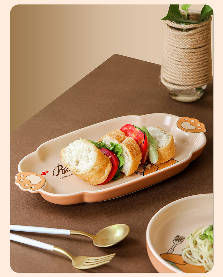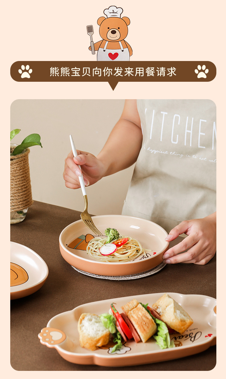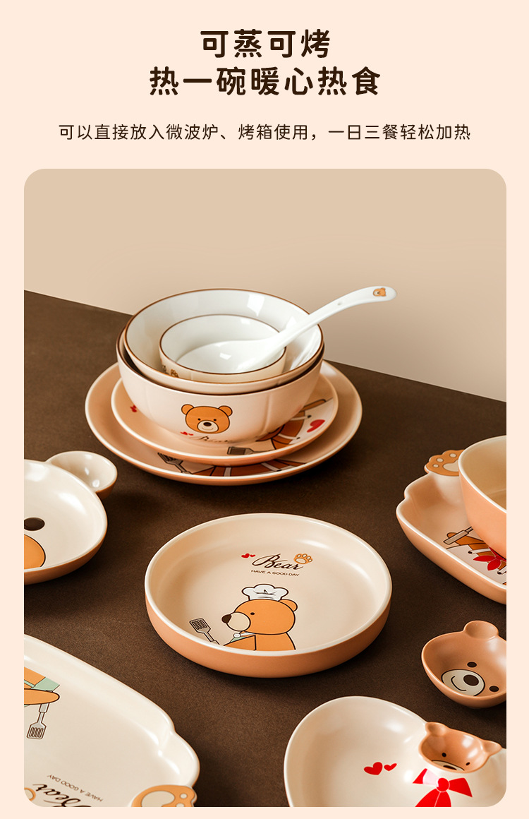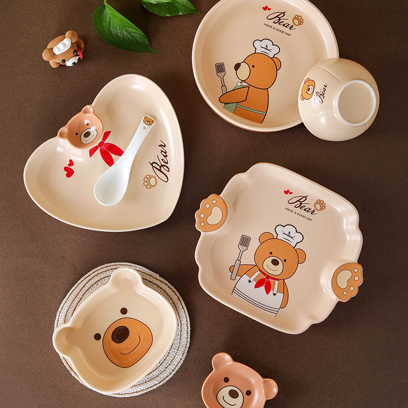 儿童碗盘碗碟子菜盘家用2021新款创意陶瓷餐具亲子可爱ins饺子盘