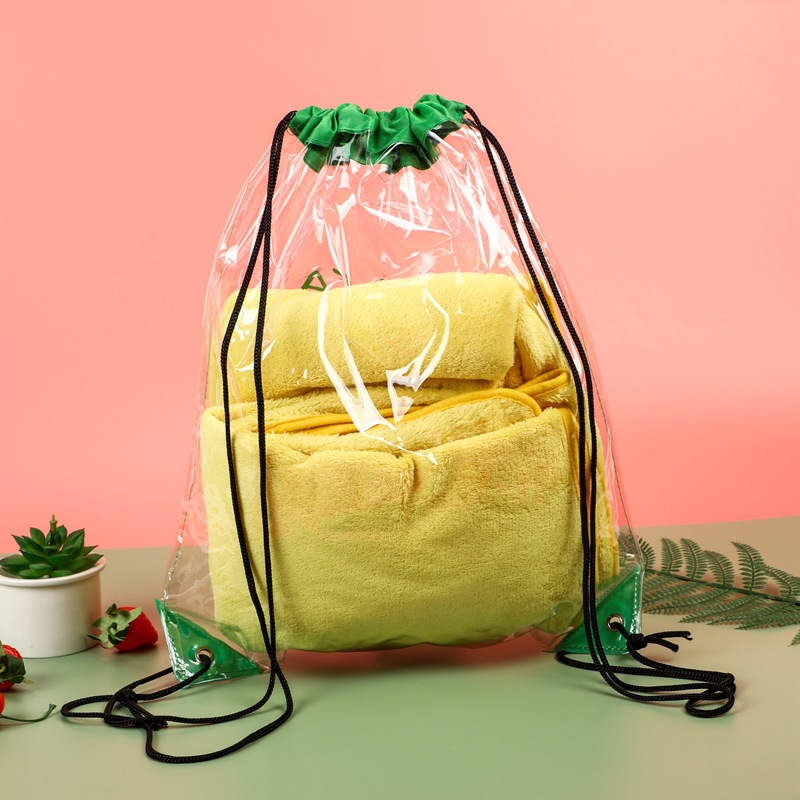 便携透明包束口拉绳沙滩收纳袋抽绳体育运动双肩背袋批发