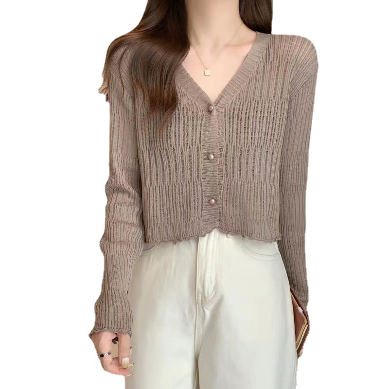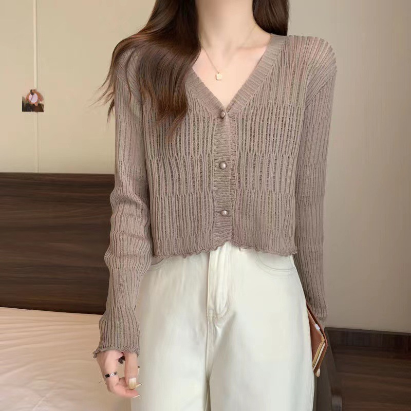 V领针织开衫女秋冬季新款女装短款长袖小外套纯色修身显高上衣女