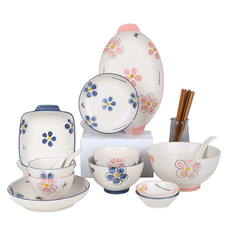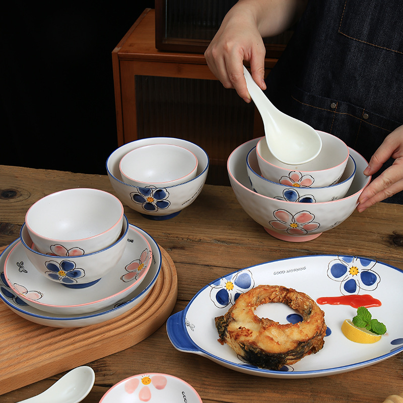 陶瓷盘碗中式创意家用陶瓷餐具菜盘碗碟蒸鱼盘米饭碗ins风批发