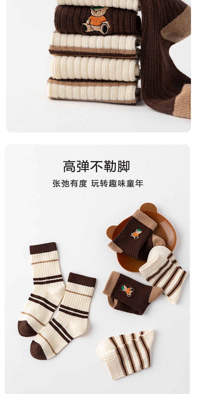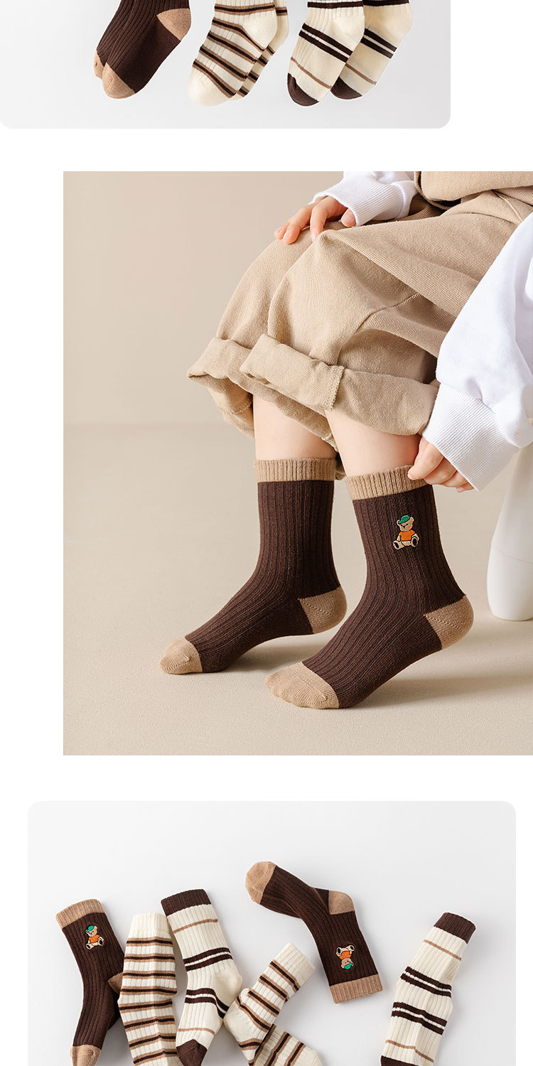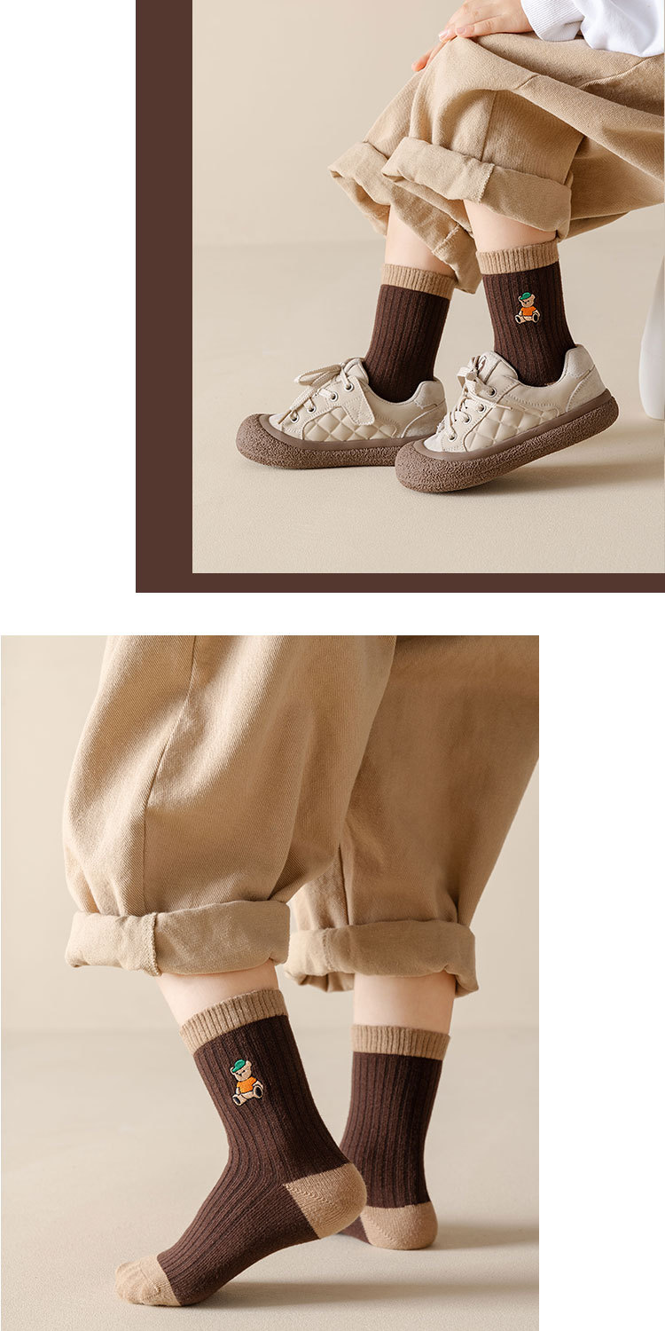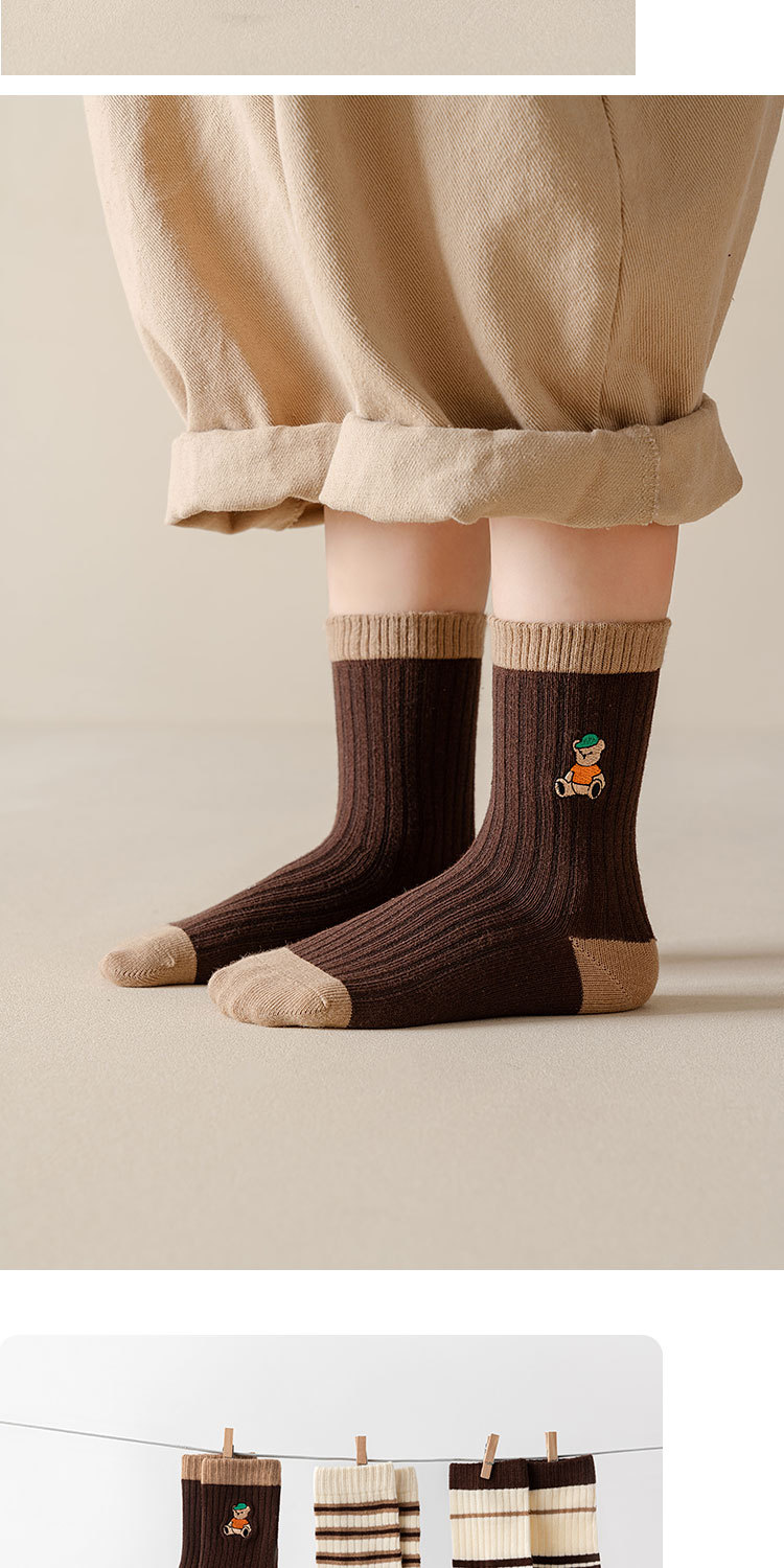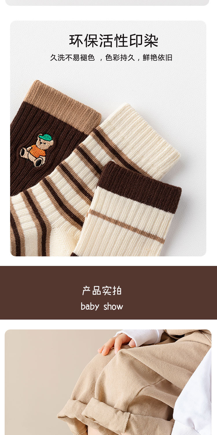 新款儿童袜子秋季中筒袜男女童复古卡通刺绣小熊宝宝袜秋季棉袜
