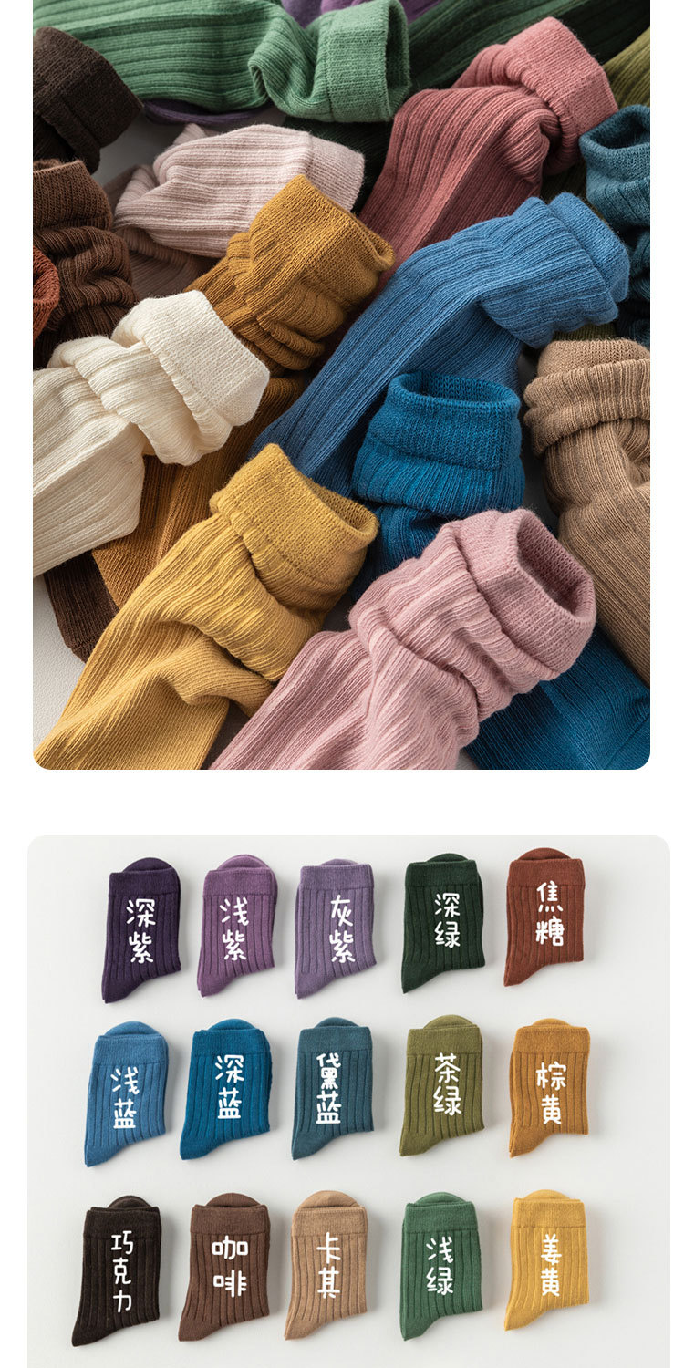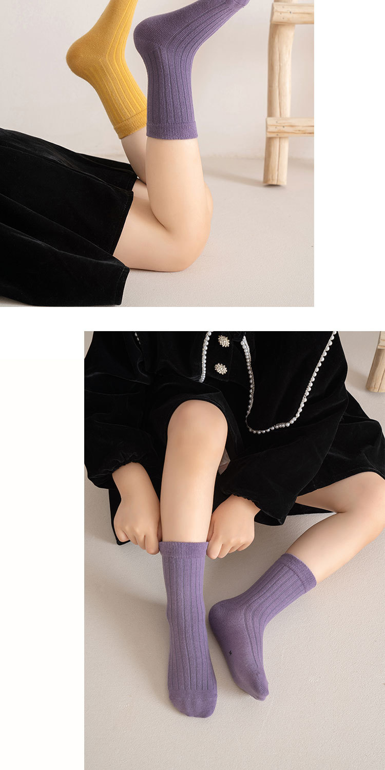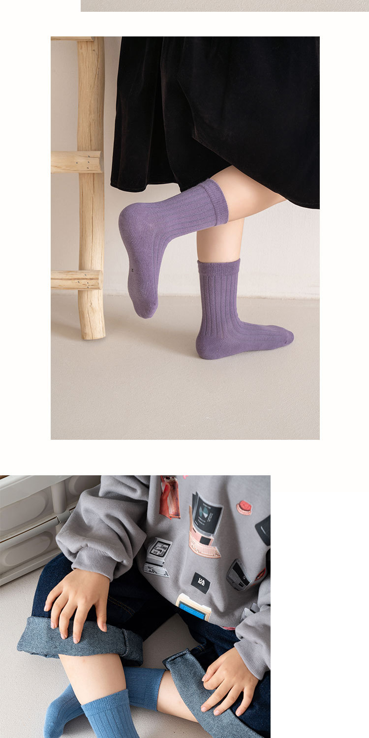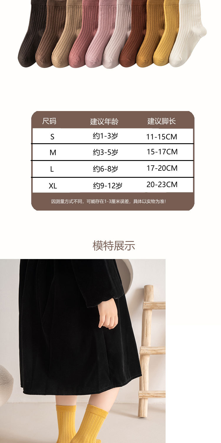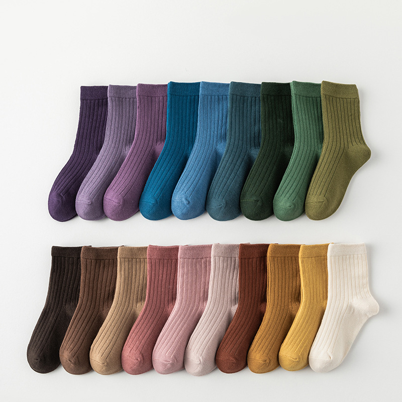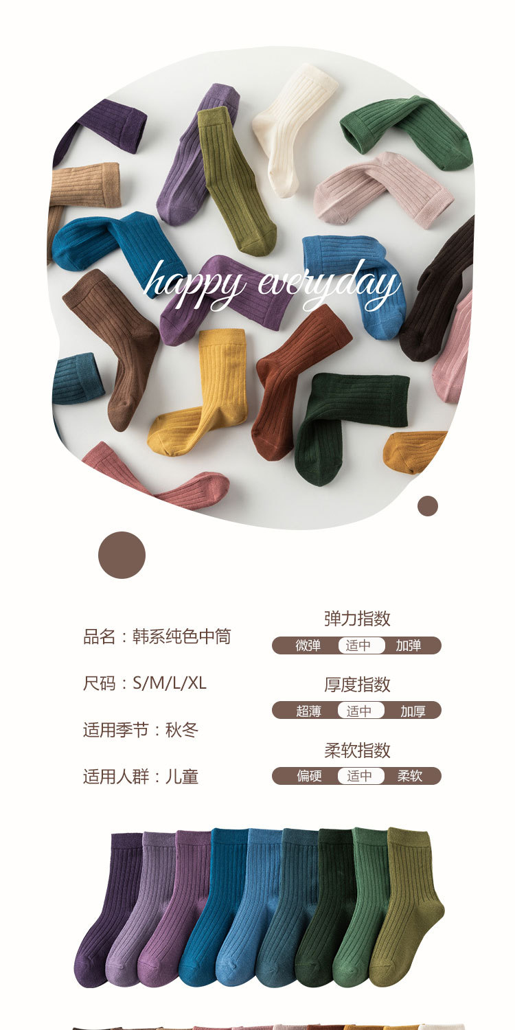 儿童袜子秋冬新款韩系纯色中筒袜子莫兰迪色男女童百搭袜子棉春秋