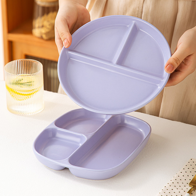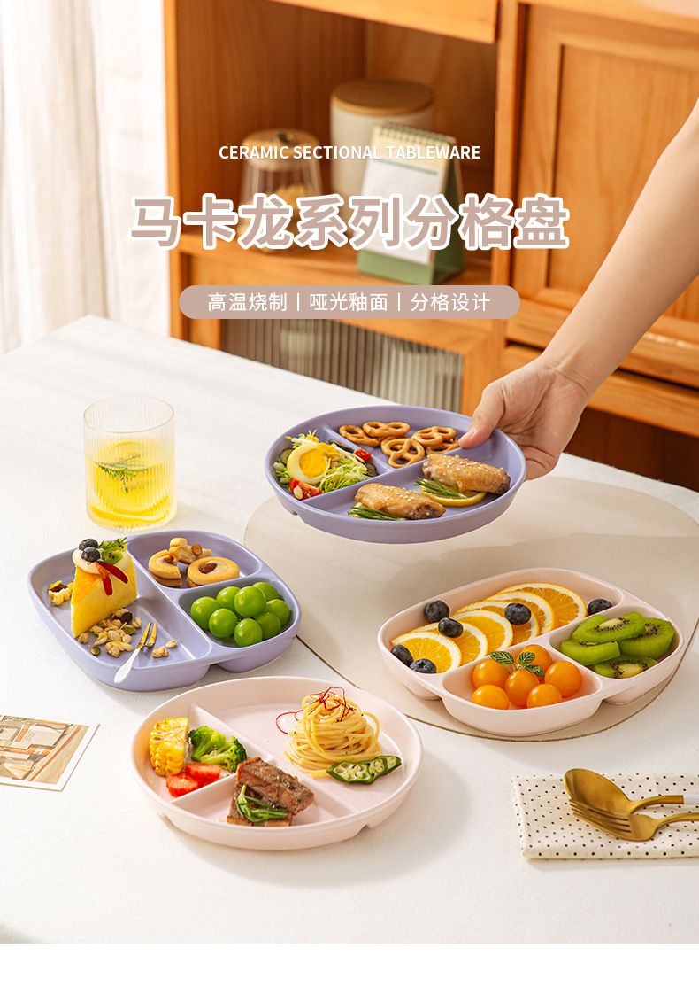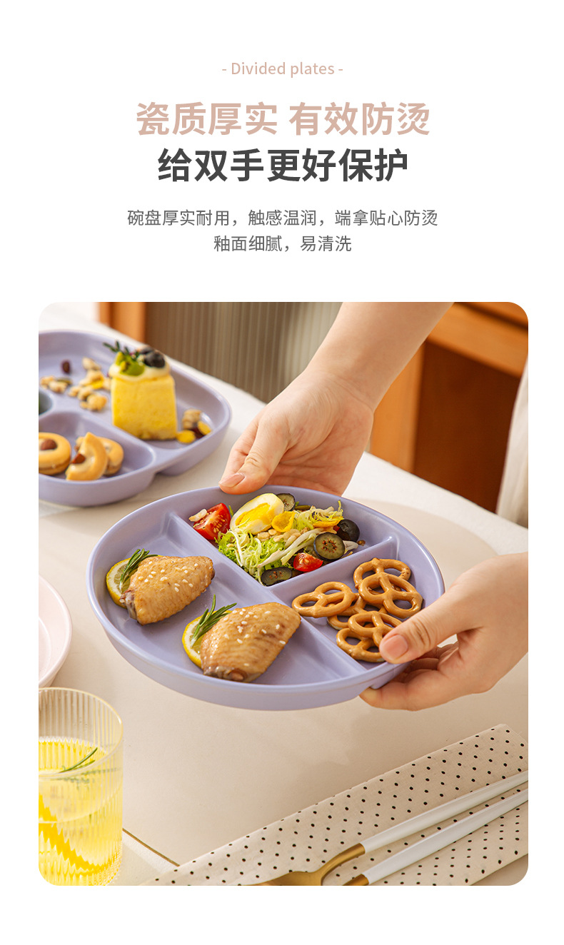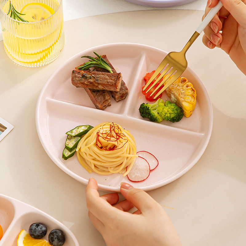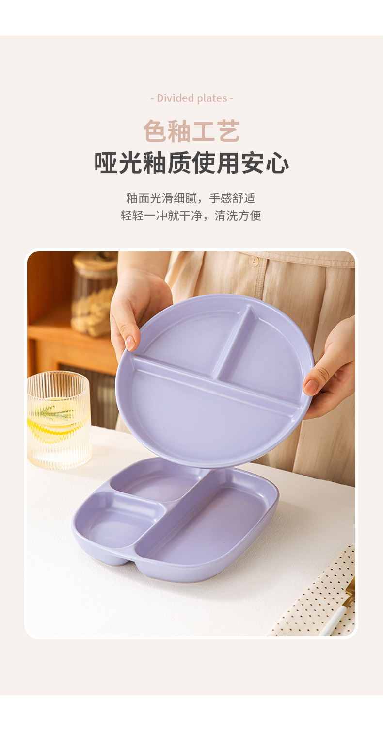 分格餐盘陶瓷大人早餐盘一人食儿童餐具家用减脂高颜值分隔盘子