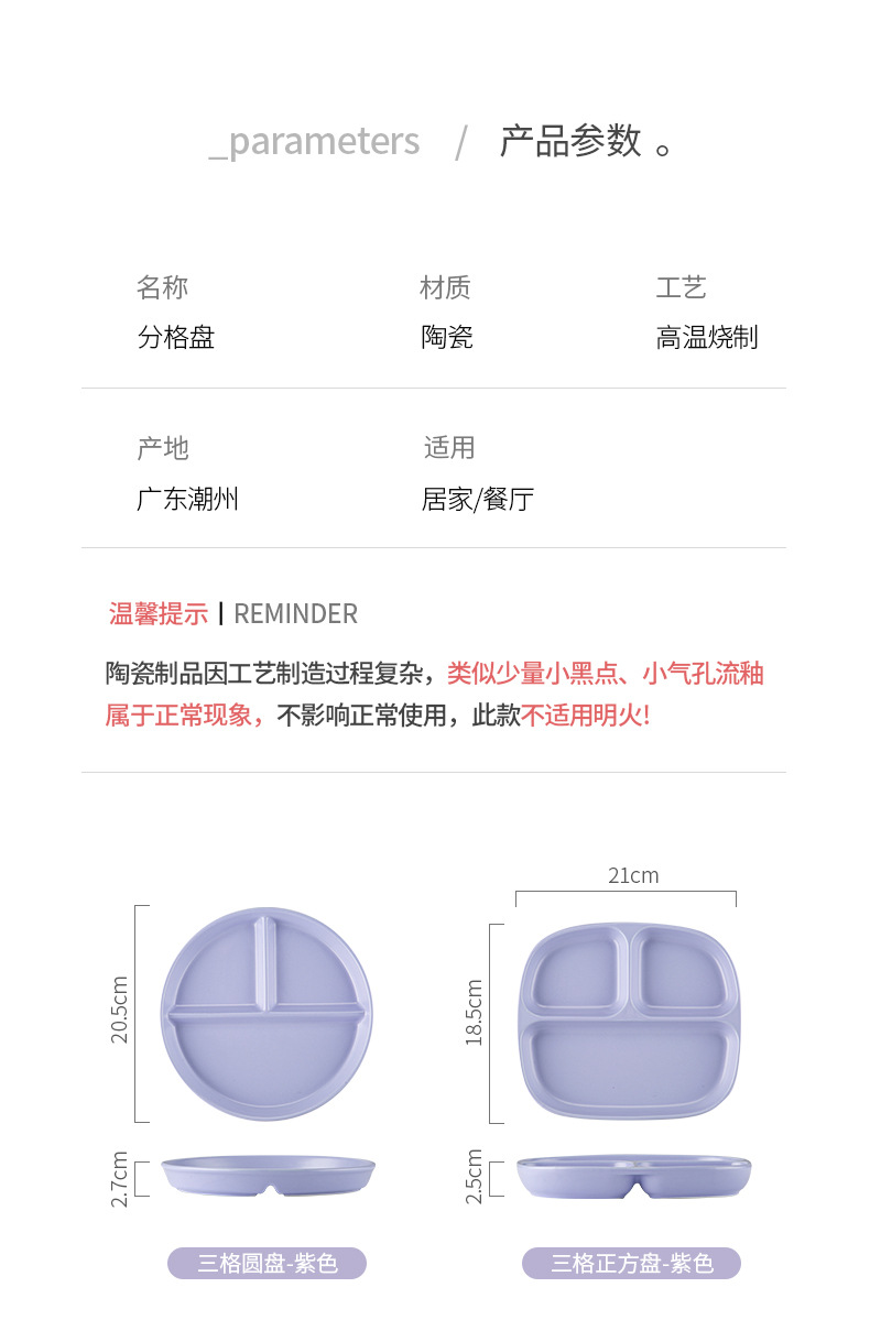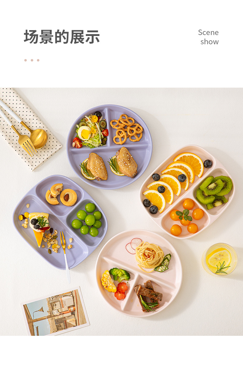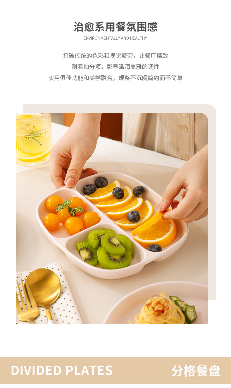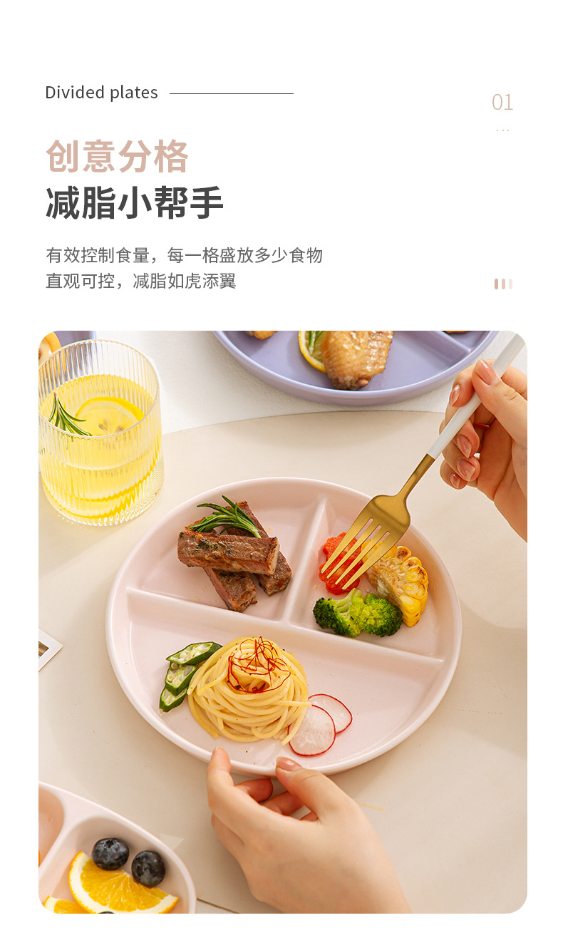 分格餐盘陶瓷大人早餐盘一人食儿童餐具家用减脂高颜值分隔盘子