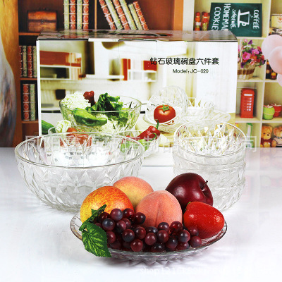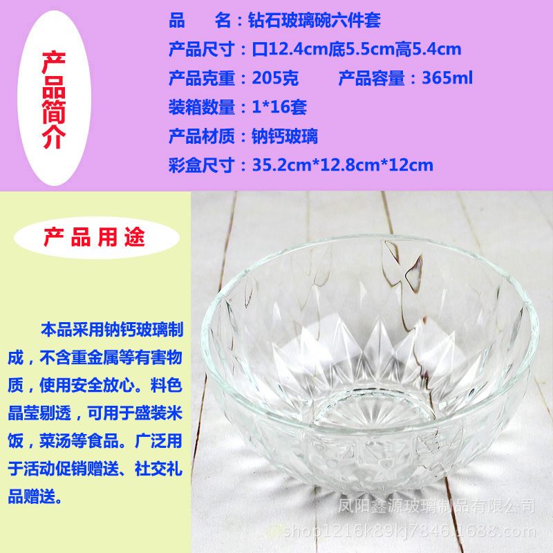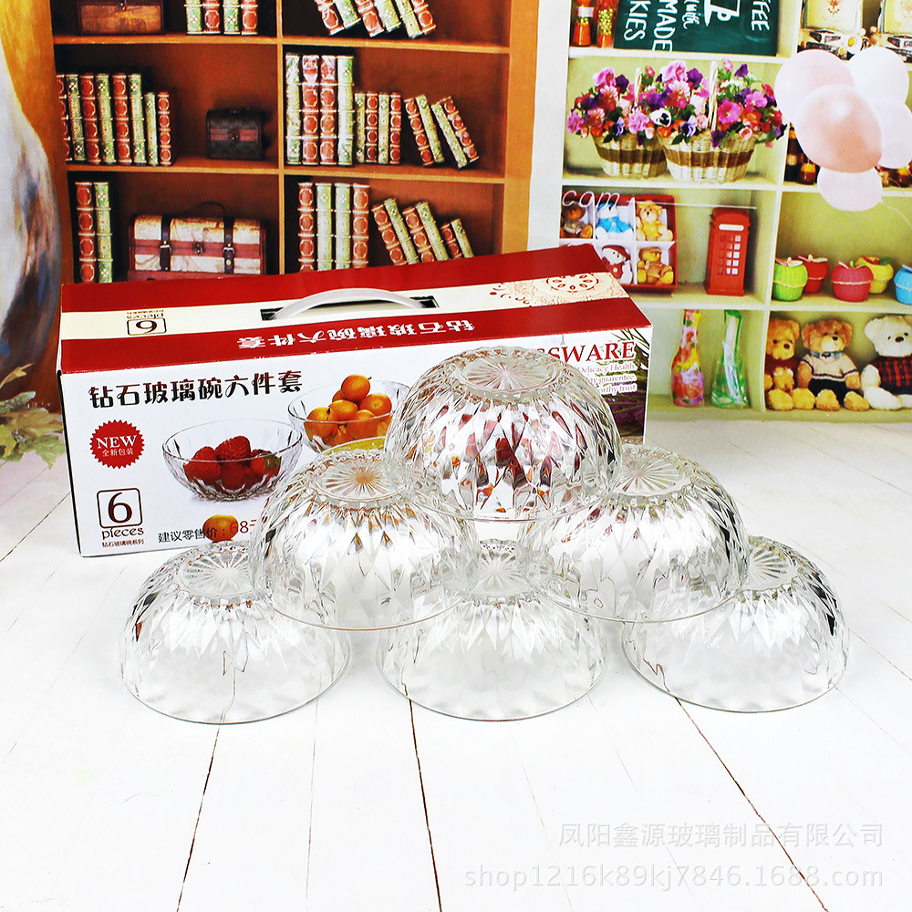 开业礼品赠送 活动礼品 玻璃碗沙拉碗水晶碗两件套钻石碗六件套