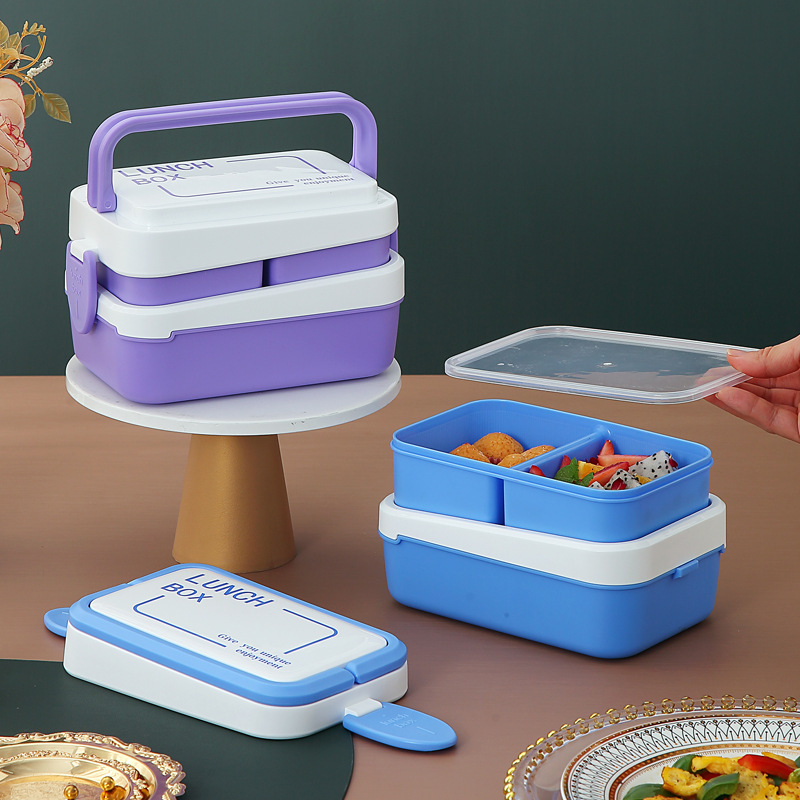 双层大容量上班族饭盒可微波成人学生便携手提便当盒餐盒带餐具
