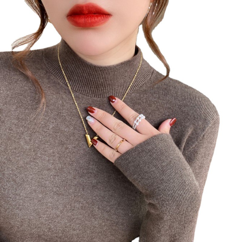 2023半高领打底衫秋冬保暖毛衣新款女装针织衫长袖内搭修身上衣女