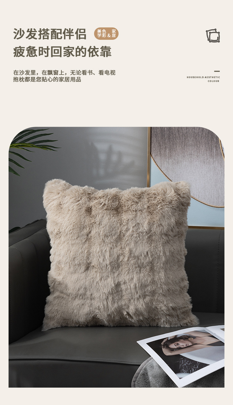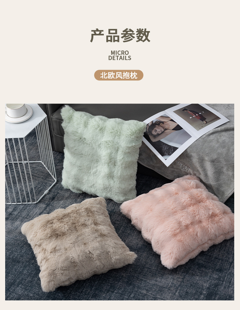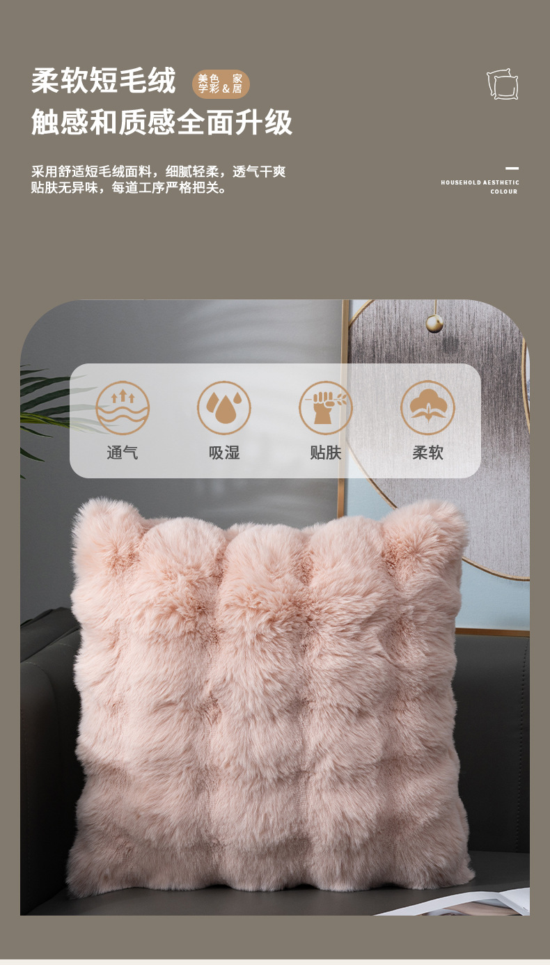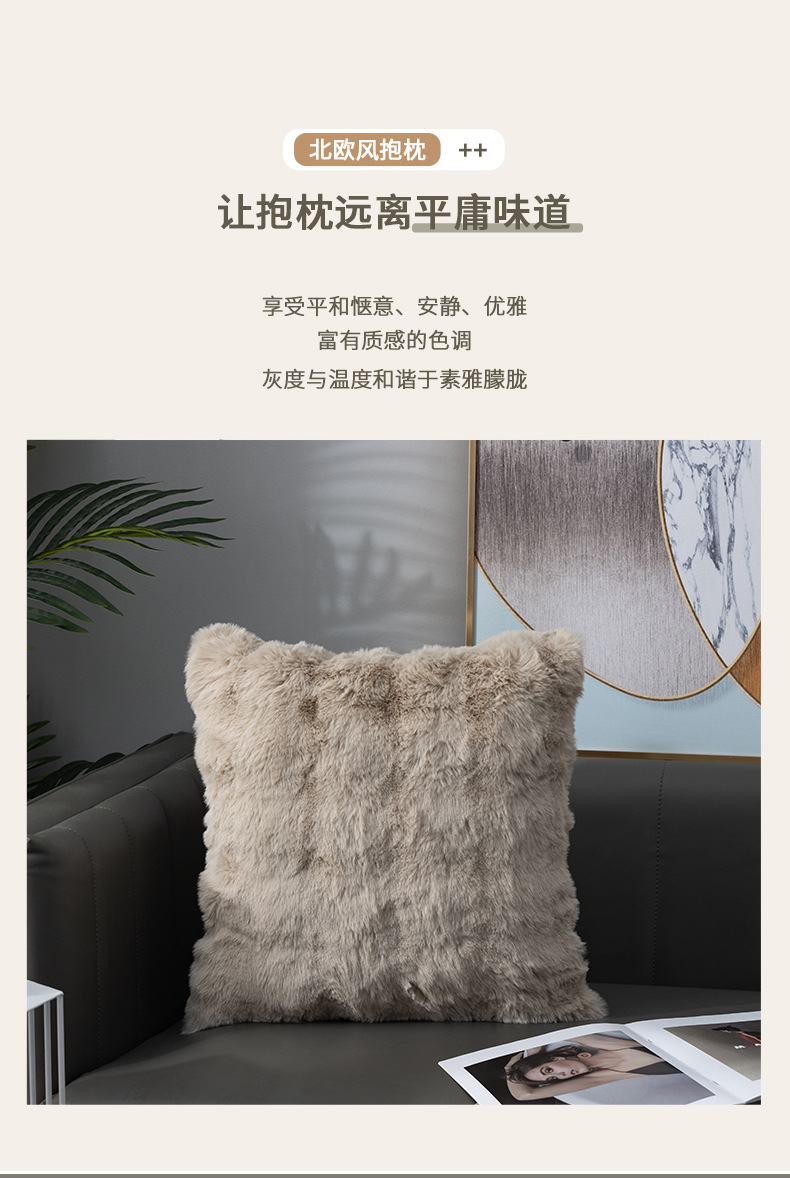 北欧轻奢纯色仿兔毛抱枕卧室床头靠垫客厅沙发毛绒抱枕套飘窗靠枕
