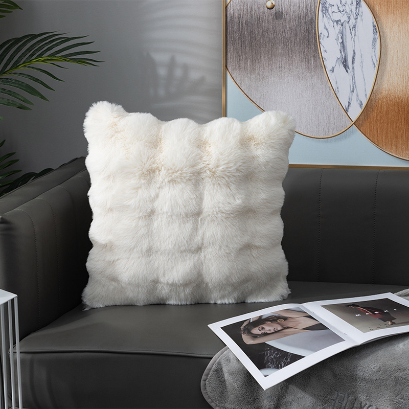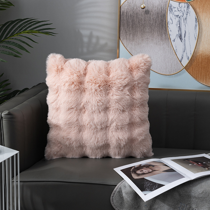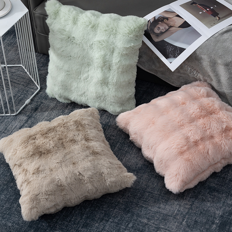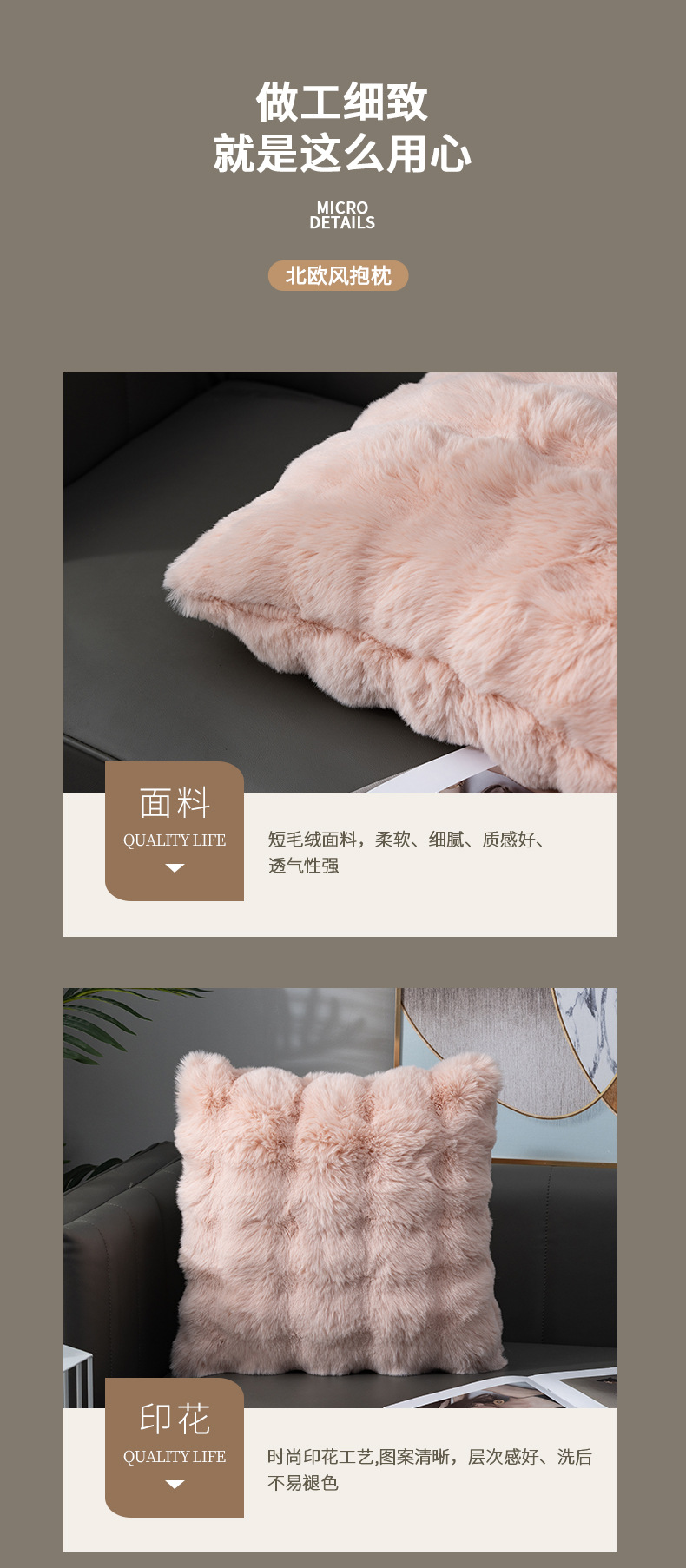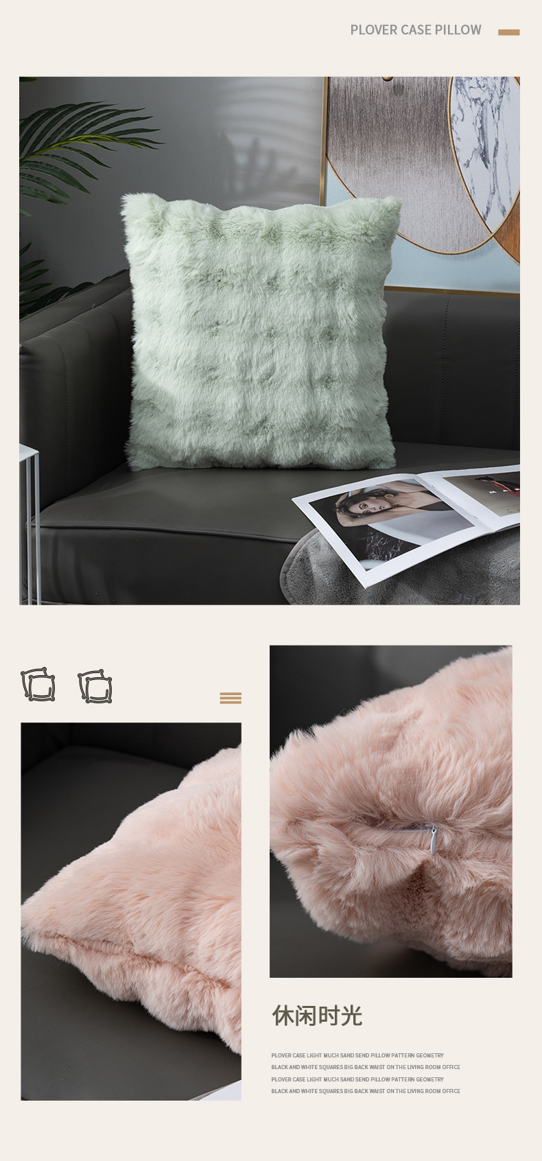 北欧轻奢纯色仿兔毛抱枕卧室床头靠垫客厅沙发毛绒抱枕套飘窗靠枕