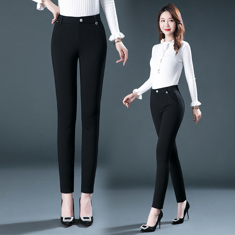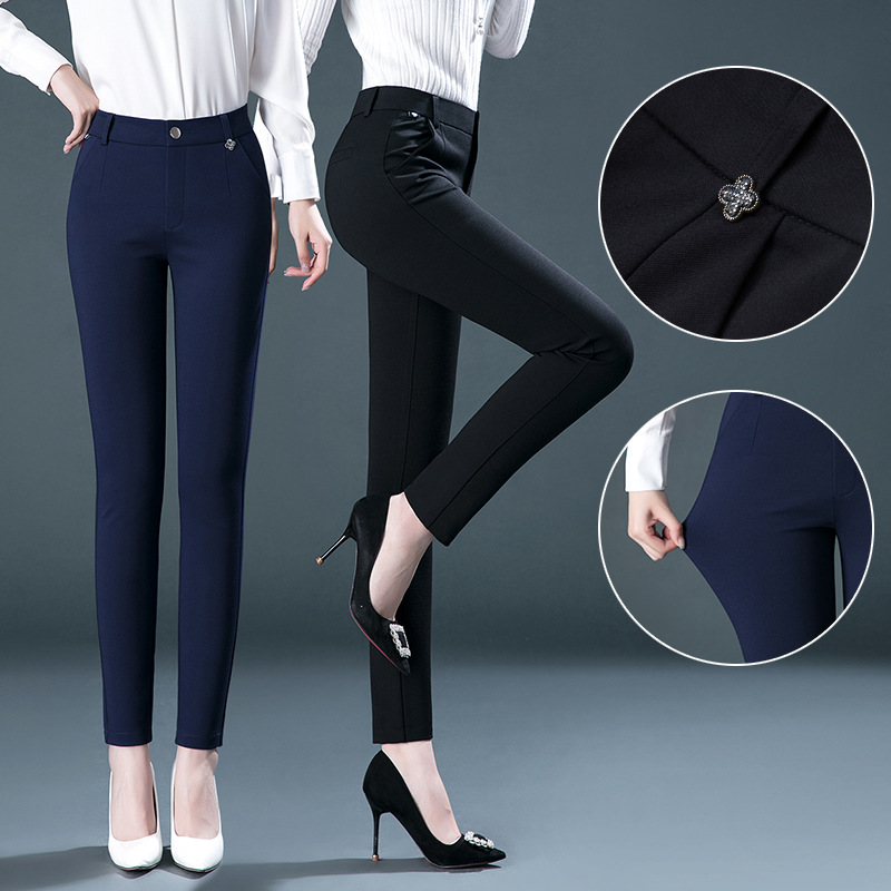 休闲裤女2023春秋季新款高腰显瘦直筒长裤妈妈西装裤中老年女裤子