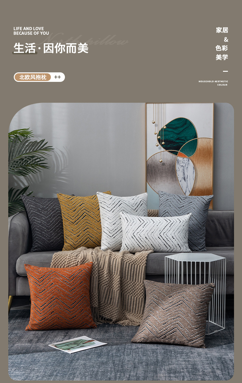 斜纹布抱枕雪尼尔飘窗枕靠垫套批发床头北欧风现代轻奢客厅靠枕