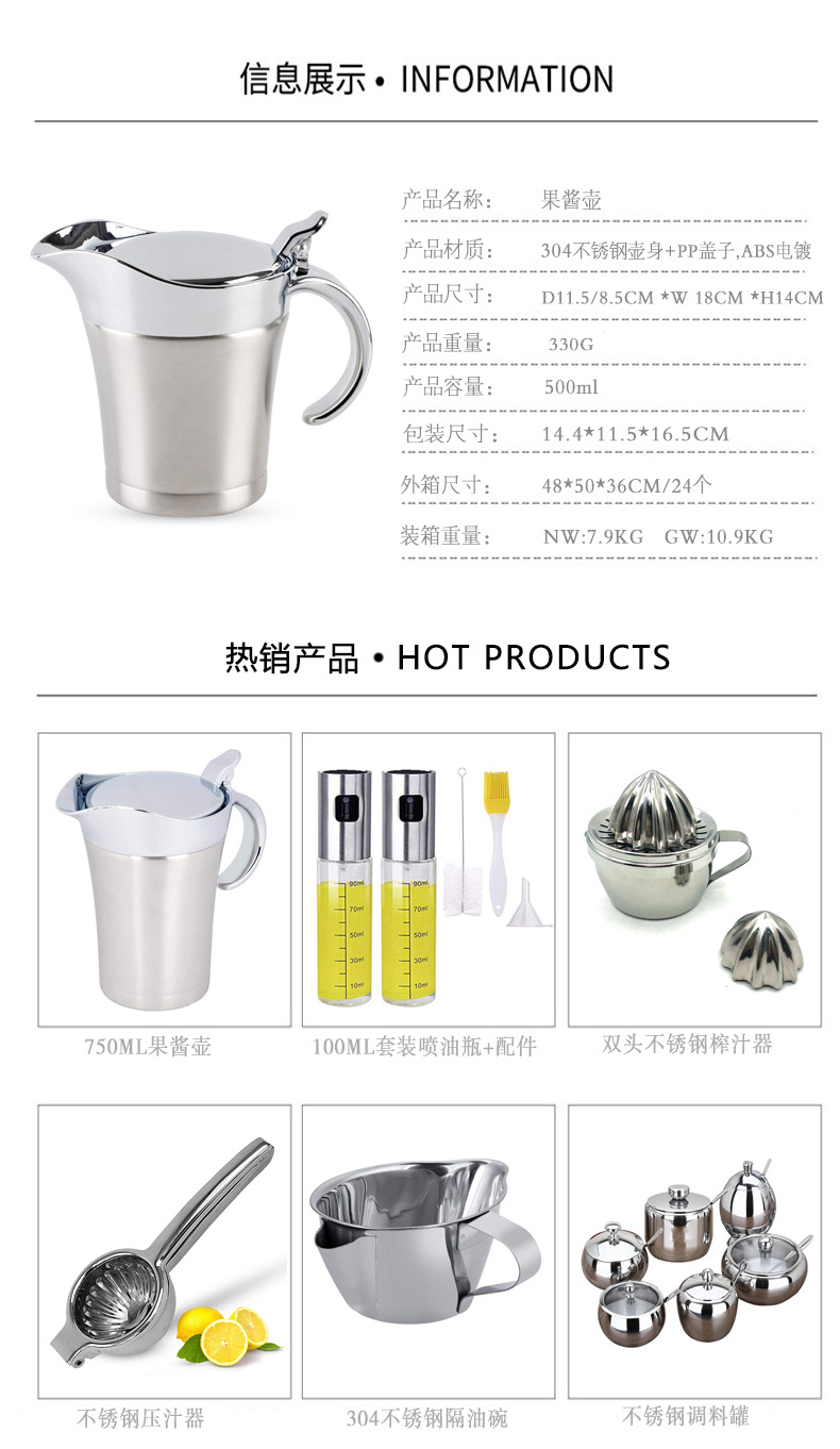不锈钢果酱壶双层果浆汁分配器牛排汁壶调料罐厨房用品酱汁壶