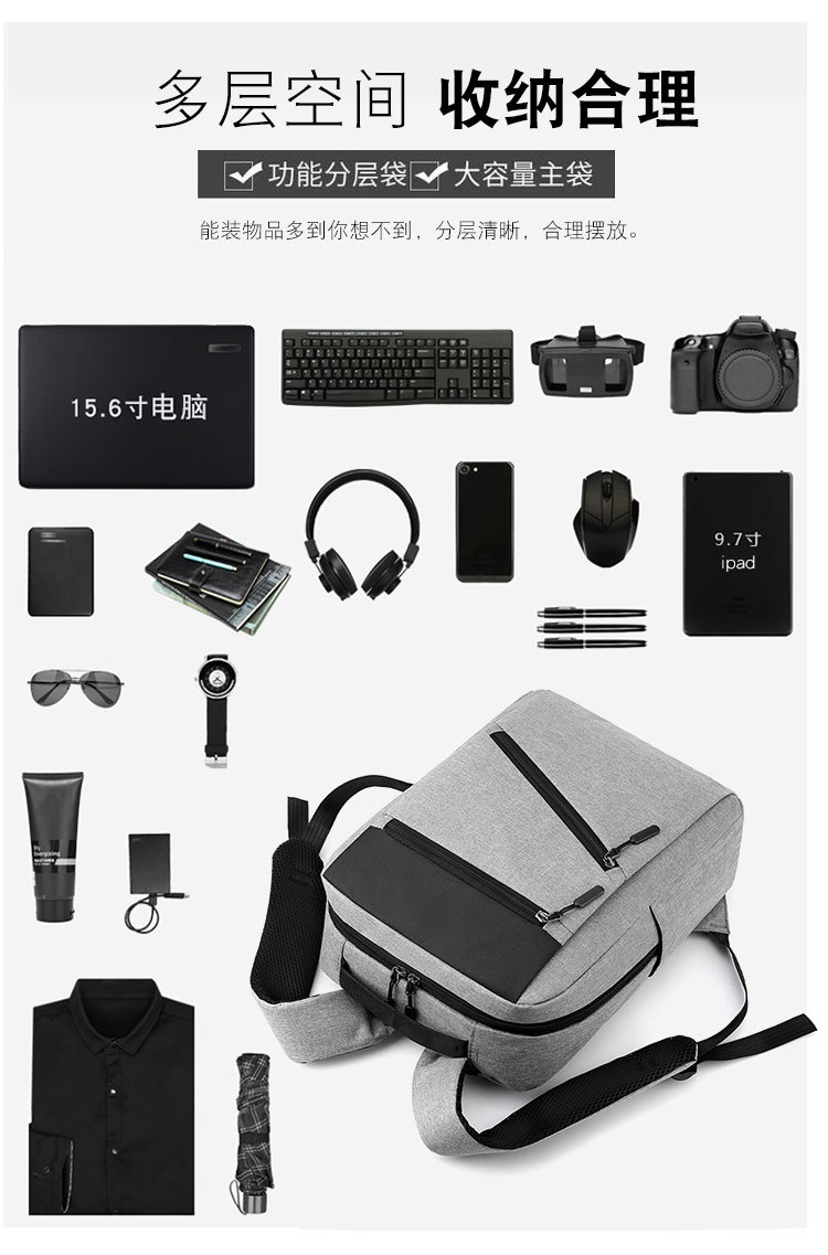 新款商务双肩包男款大容量USB充电脑包书包中学生大学生背包