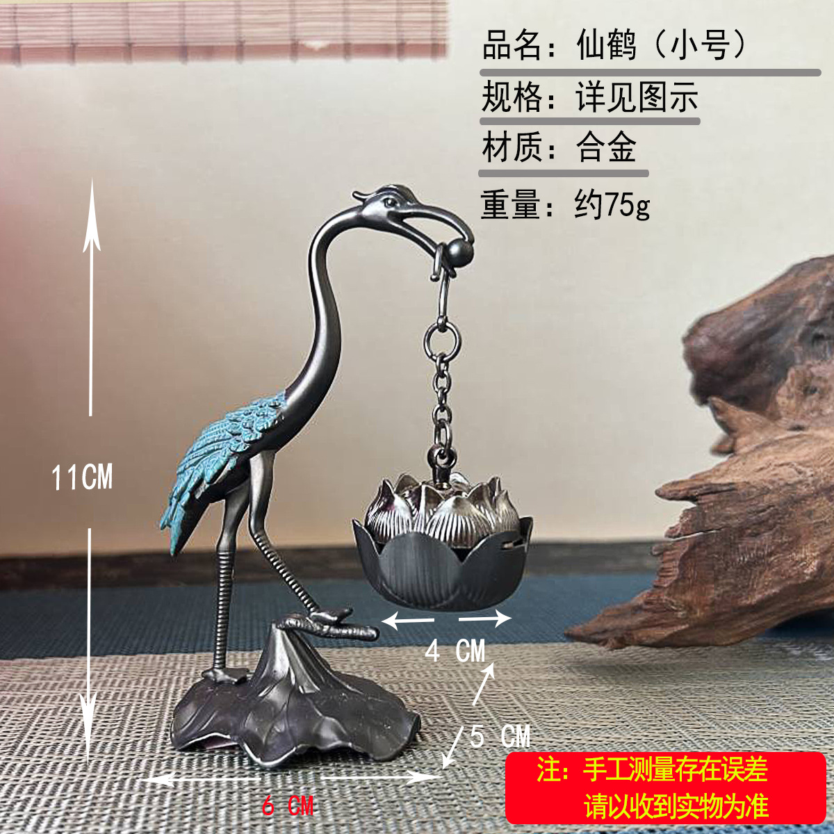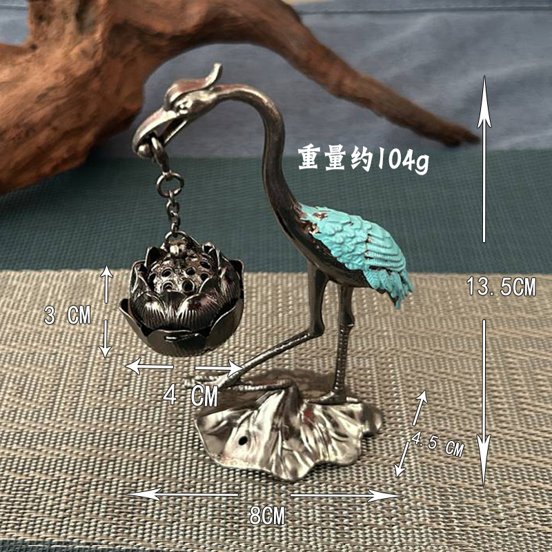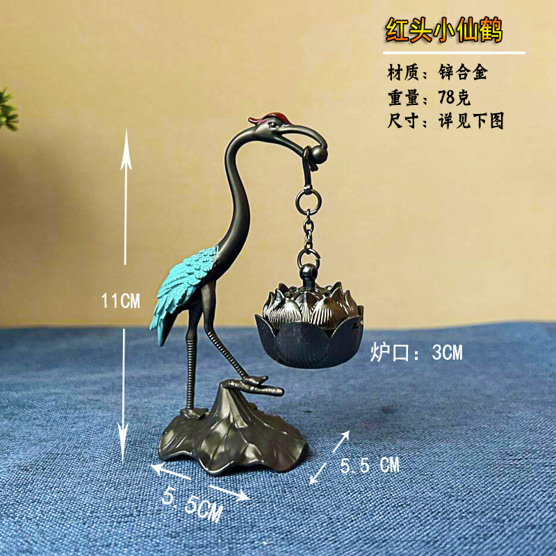 仙鹤香炉 青铜做旧悬挂式仙鹤莲花 线香盘香吊炉 创意香薰炉摆件
