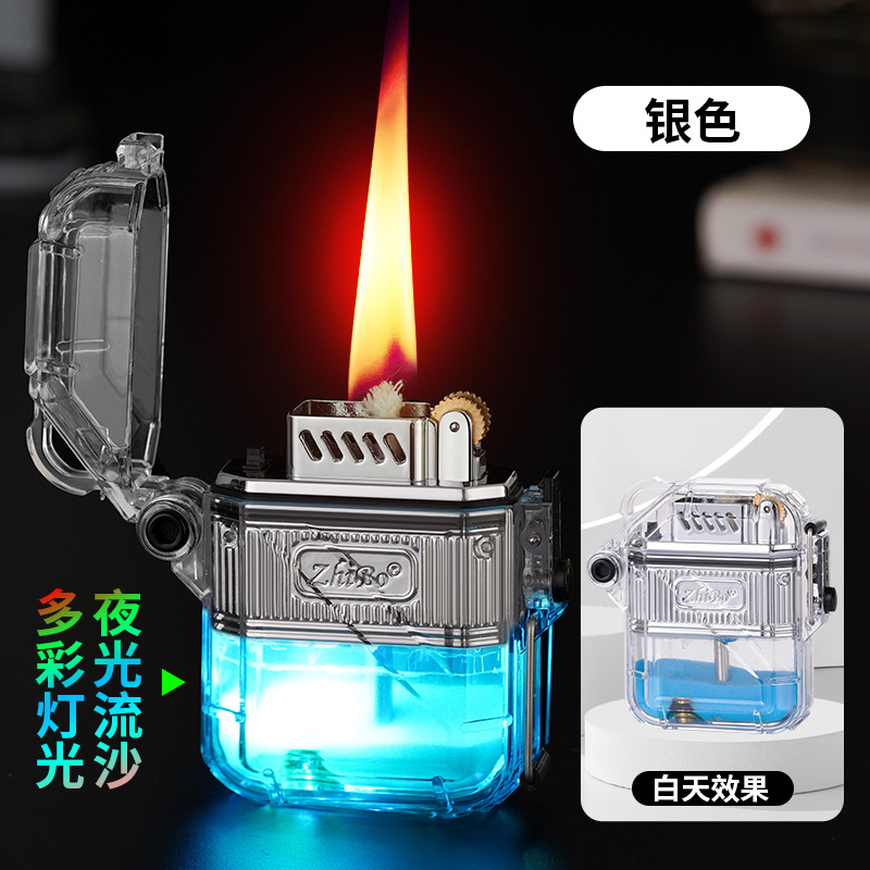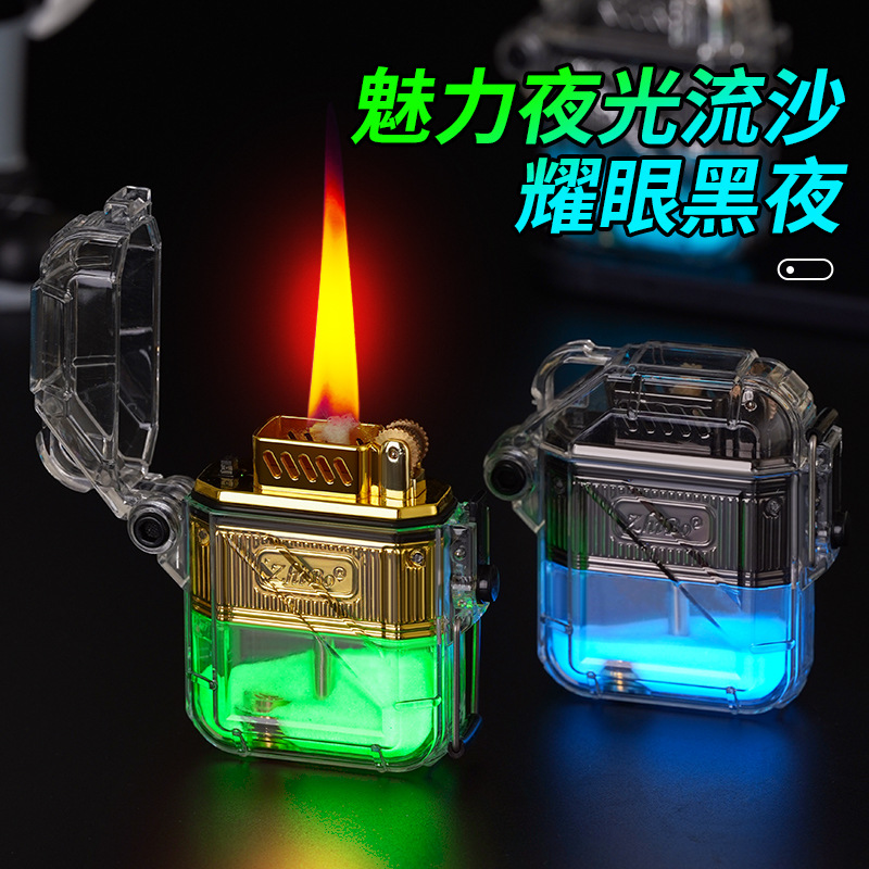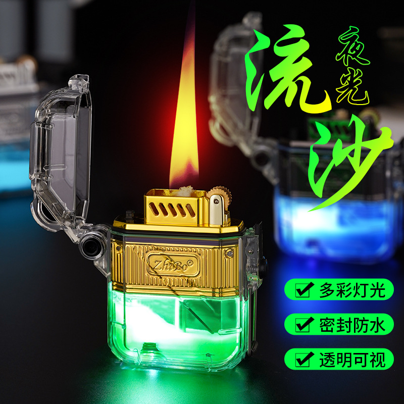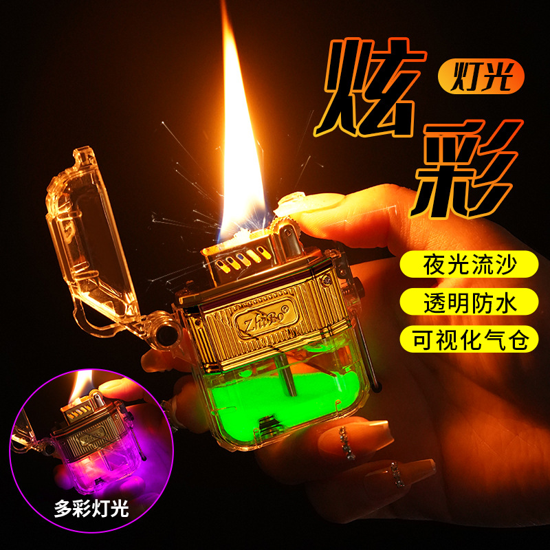 质博806透明夜光流沙煤油打火机创意复古煤油打火机抖音热销 批发