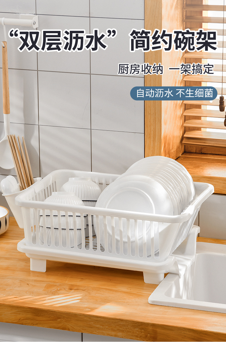 厨房水槽沥水碗架餐具滤水篮碗盘筷子置物架多功能双层洗碗收纳篮