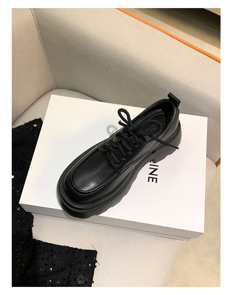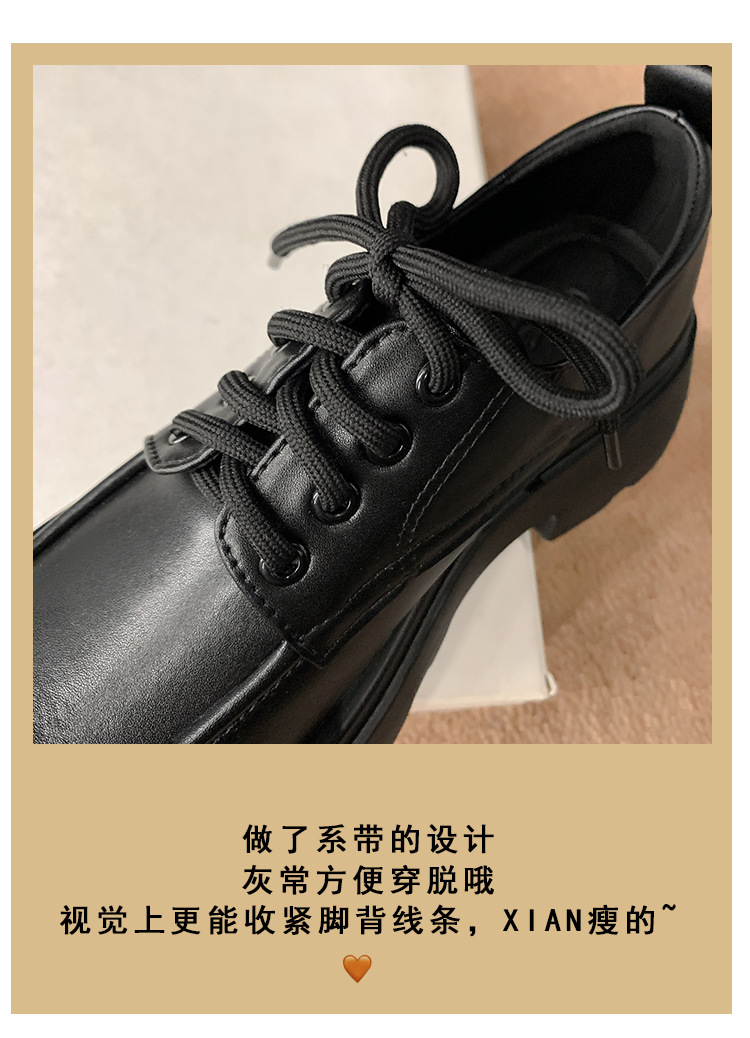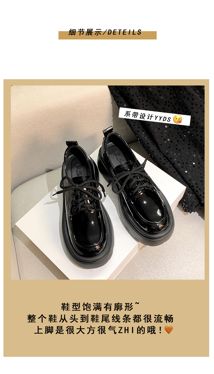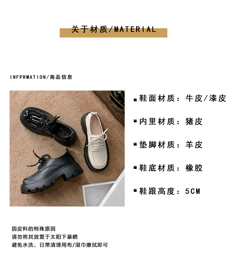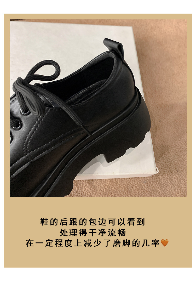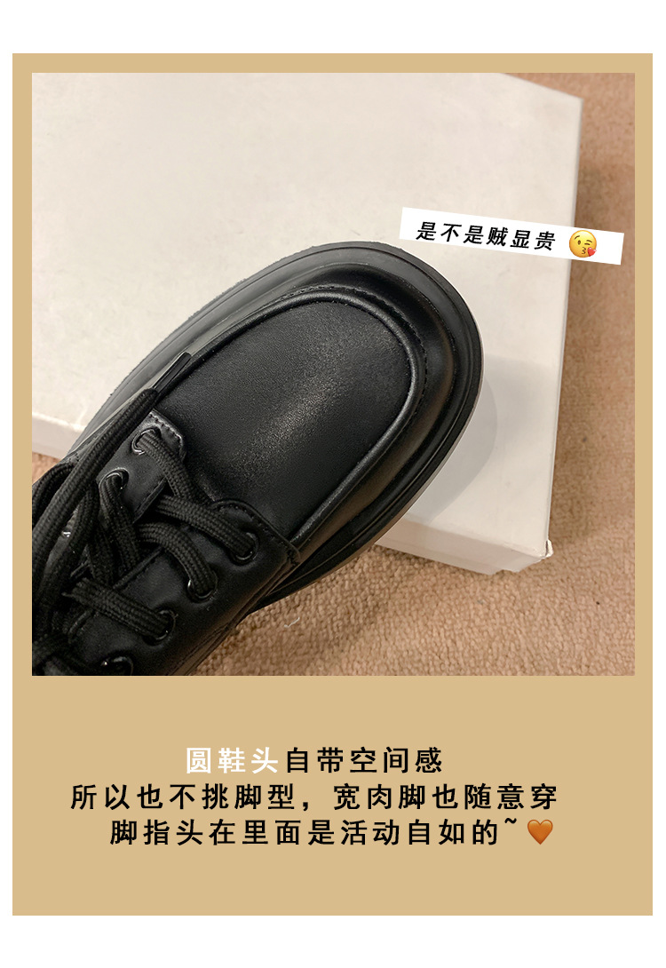 轻漫家【繁花似锦】2023新款百搭圆头单鞋厚底英伦风真皮小皮鞋女