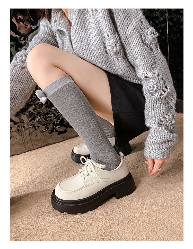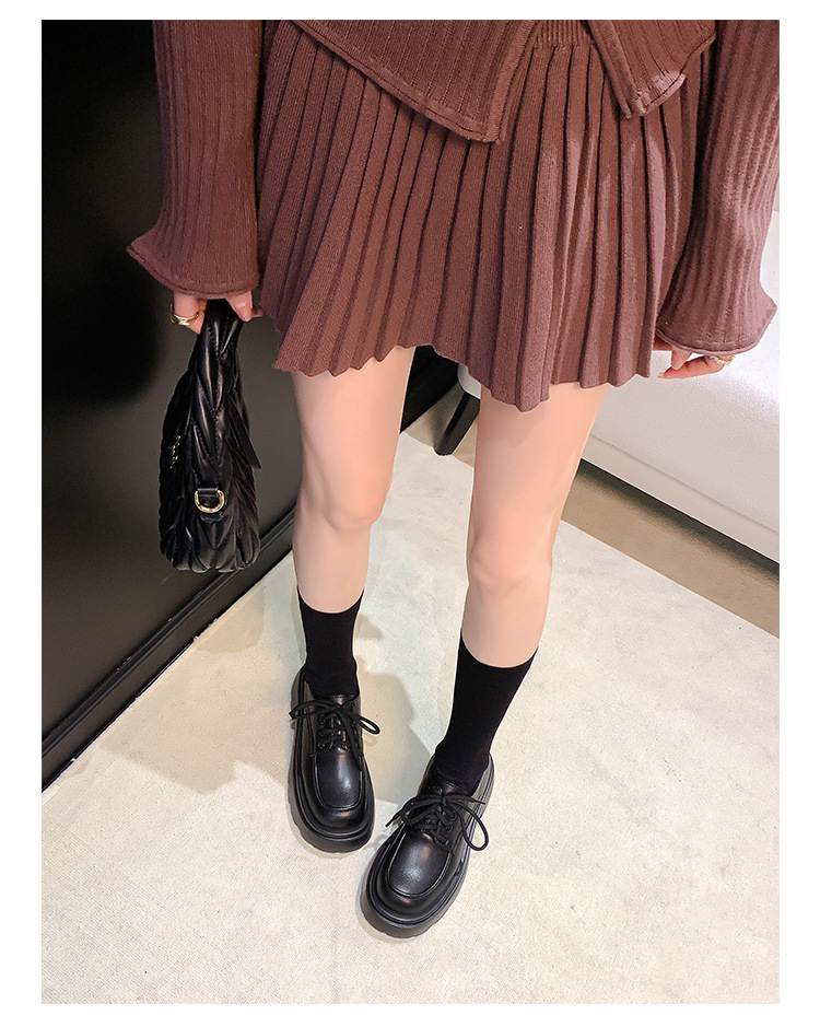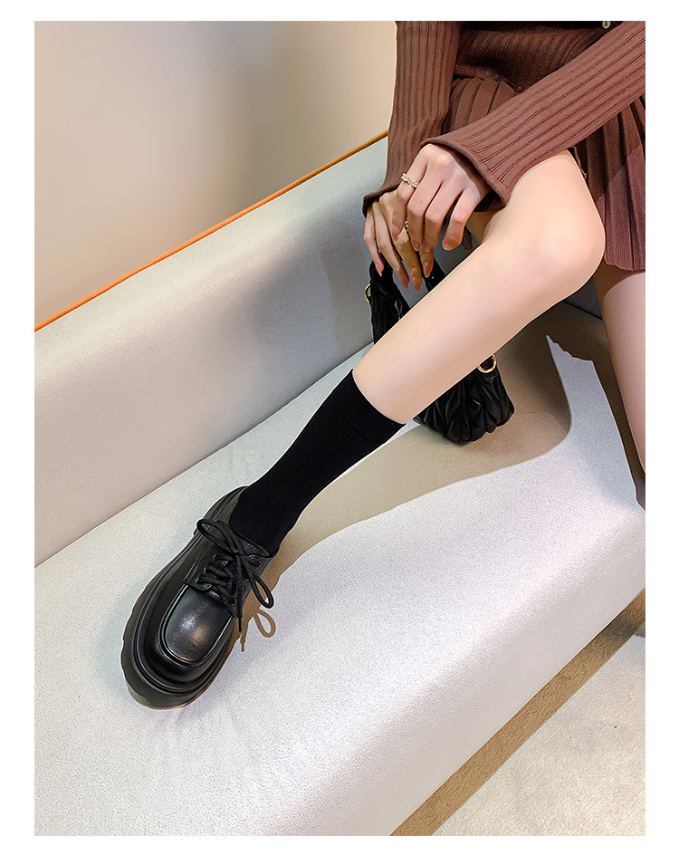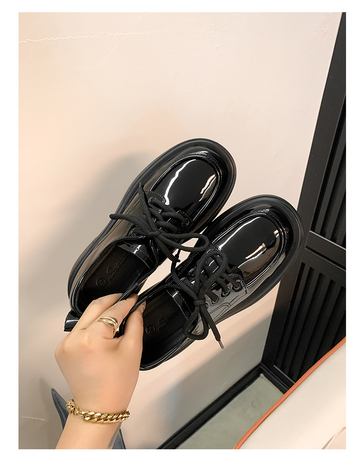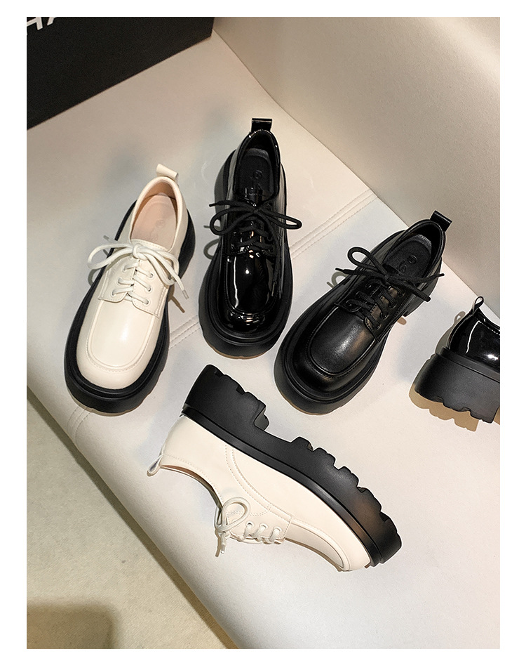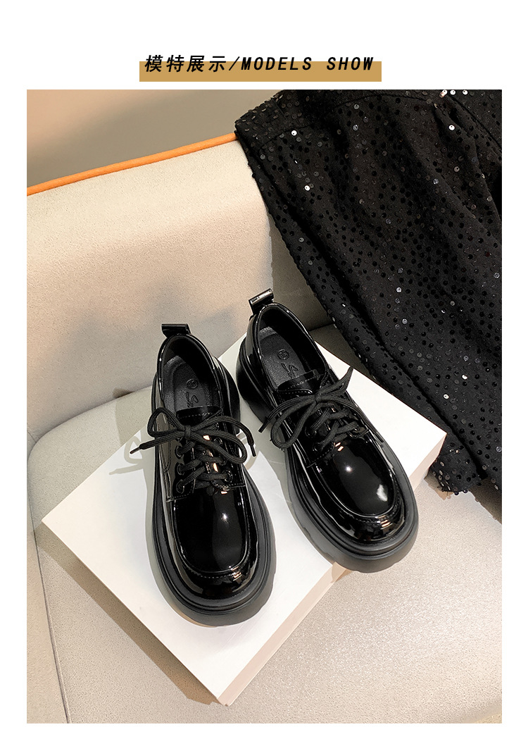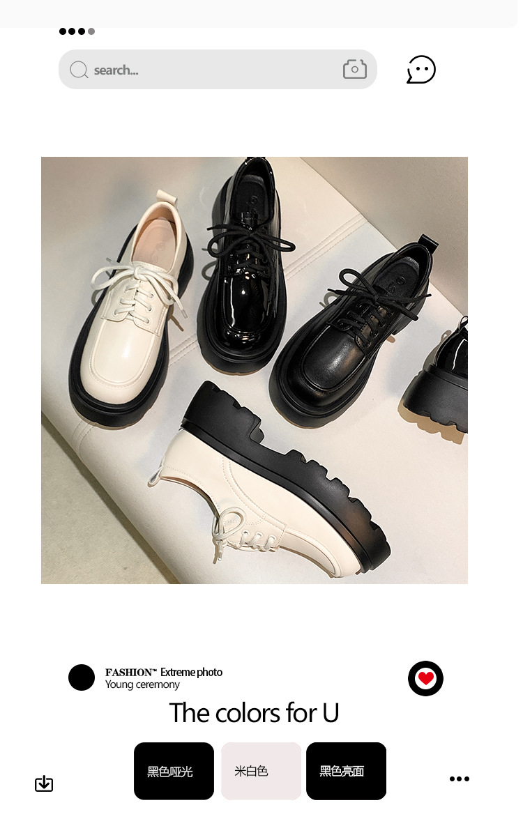 轻漫家【繁花似锦】2023新款百搭圆头单鞋厚底英伦风真皮小皮鞋女