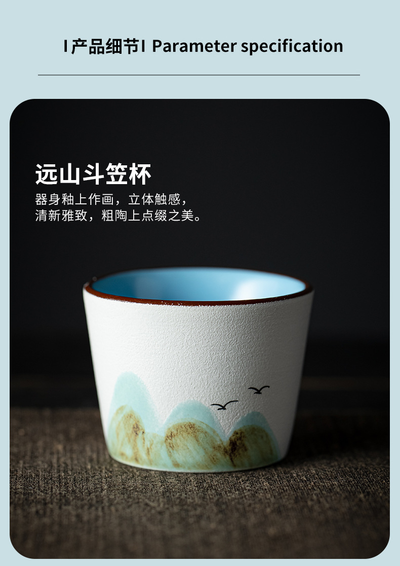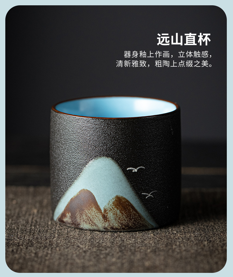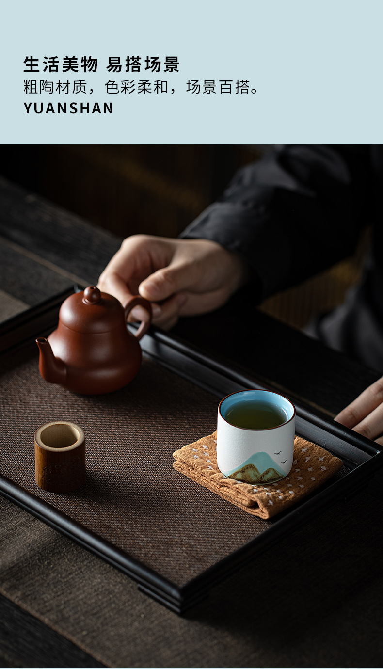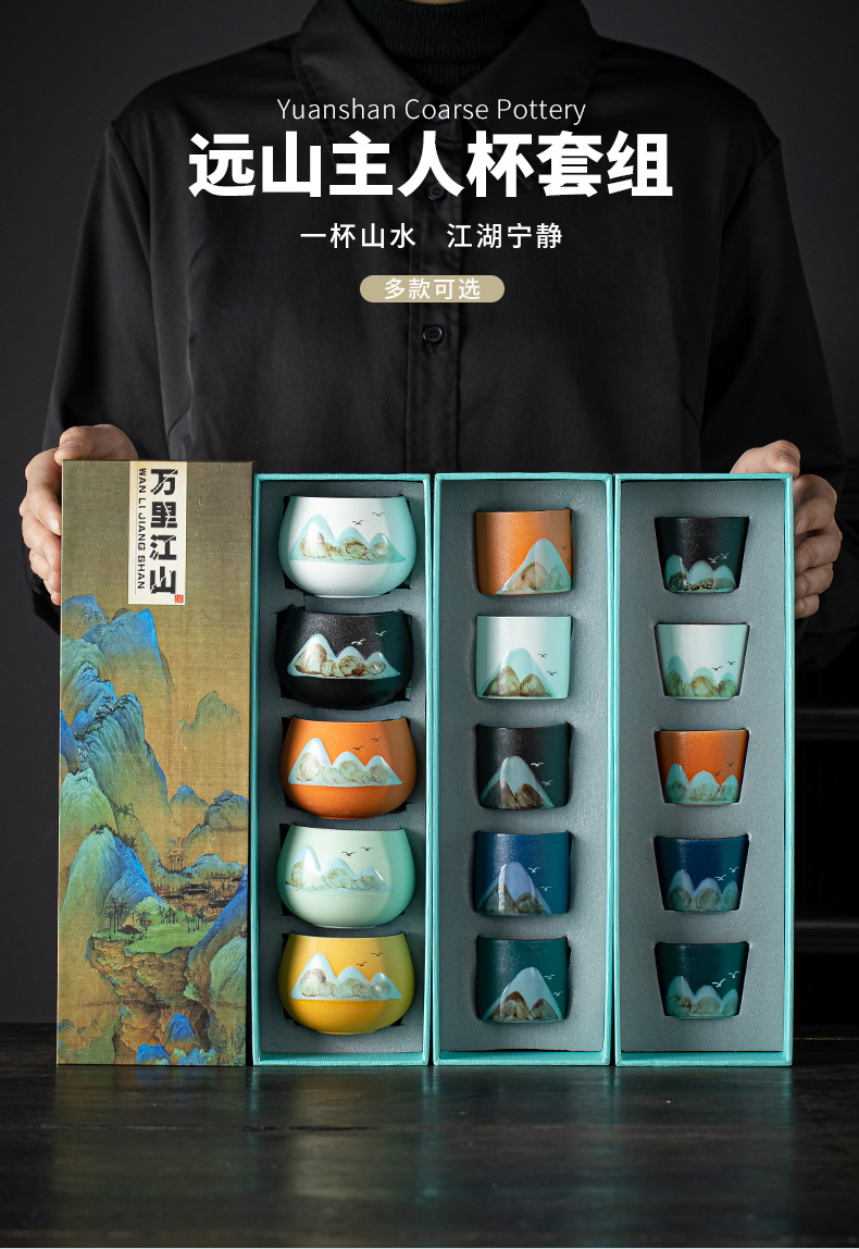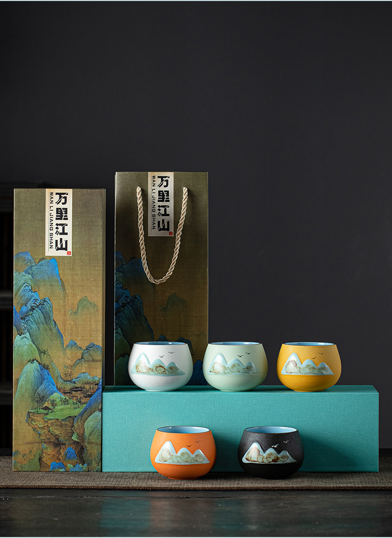 千里江山陶瓷茶杯粗陶水杯国潮办公杯送长辈父母乔迁伴手礼商务礼