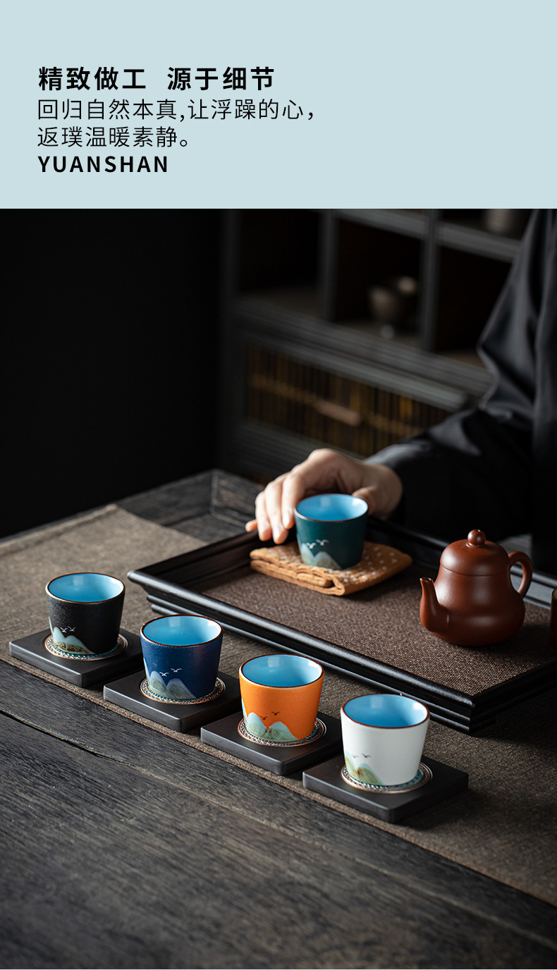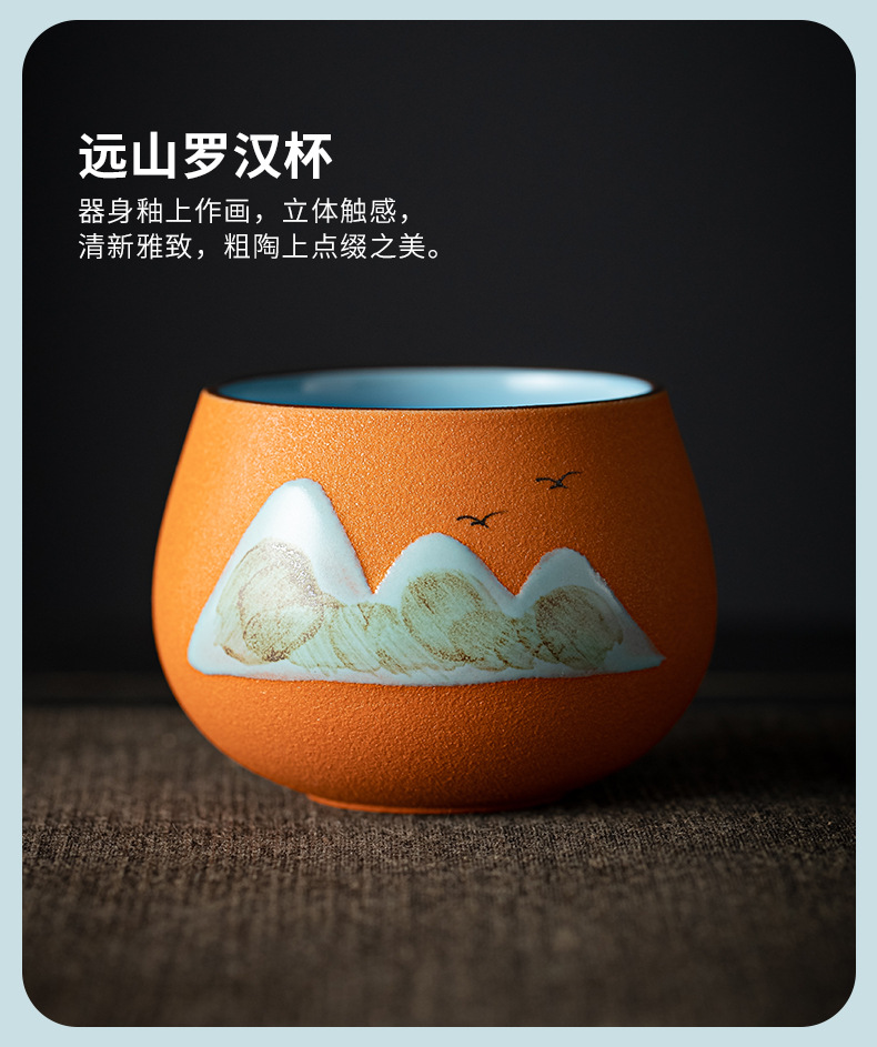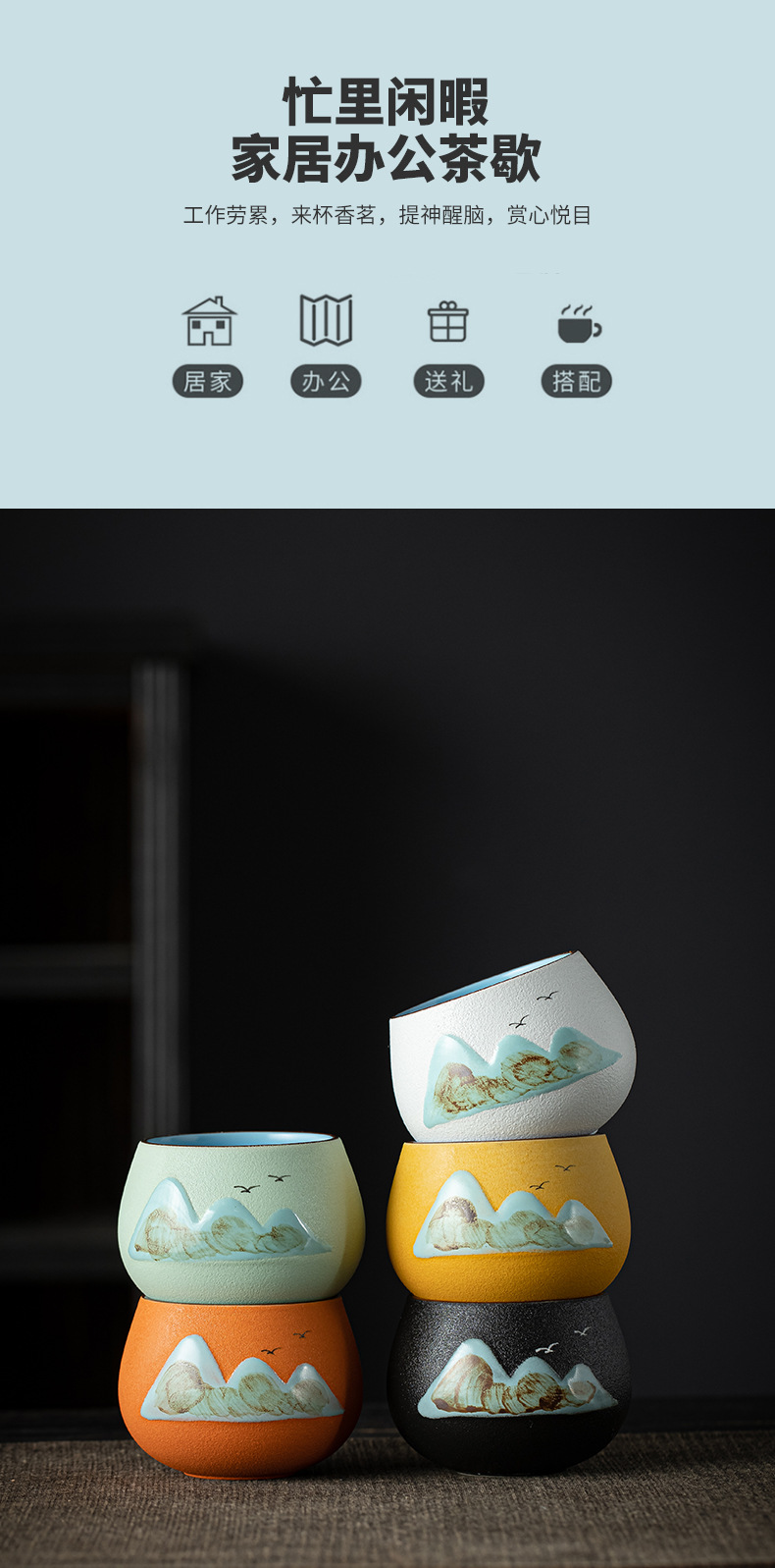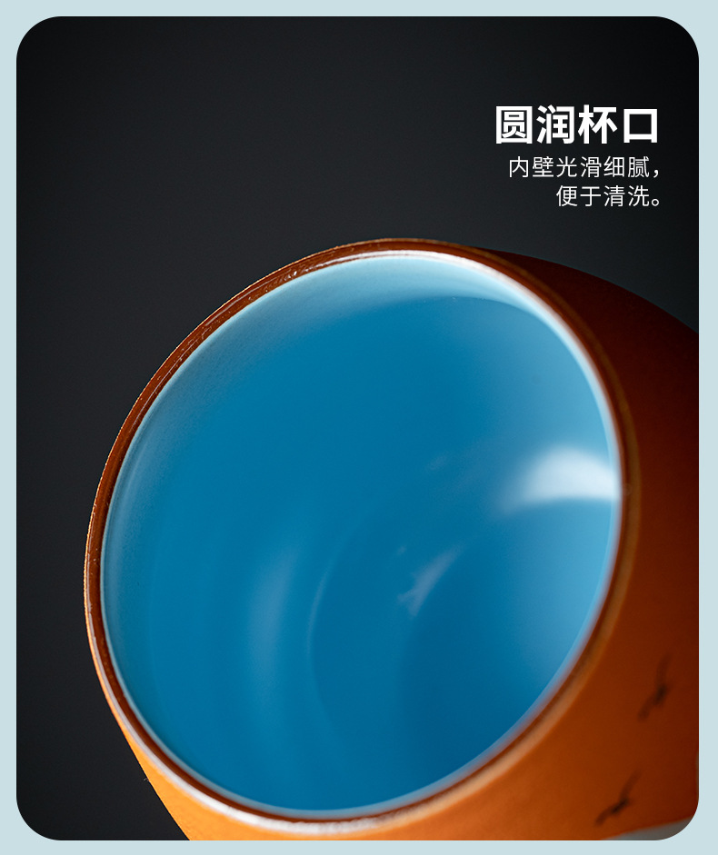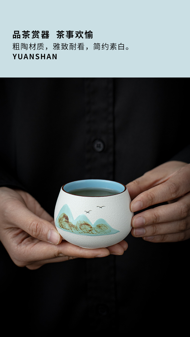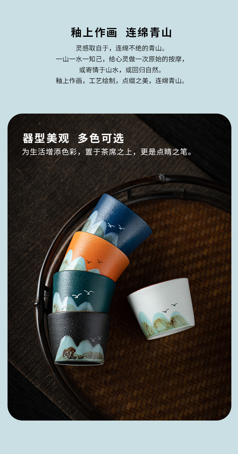 千里江山陶瓷茶杯粗陶水杯国潮办公杯送长辈父母乔迁伴手礼商务礼