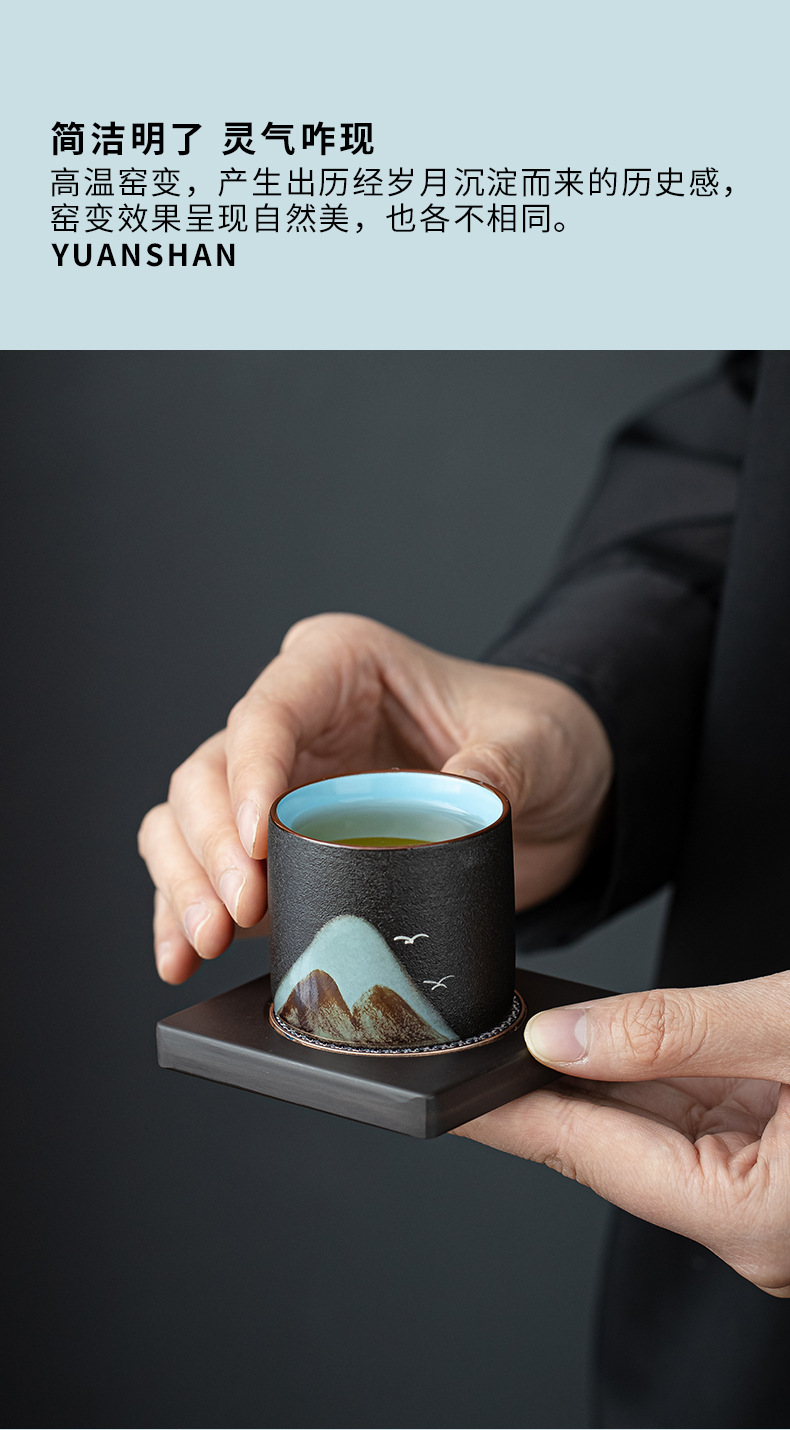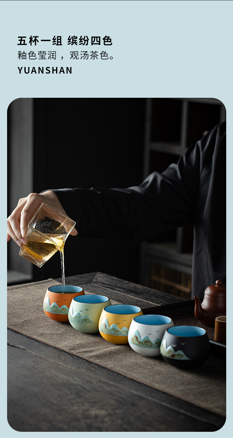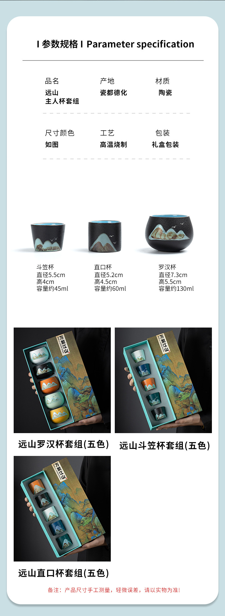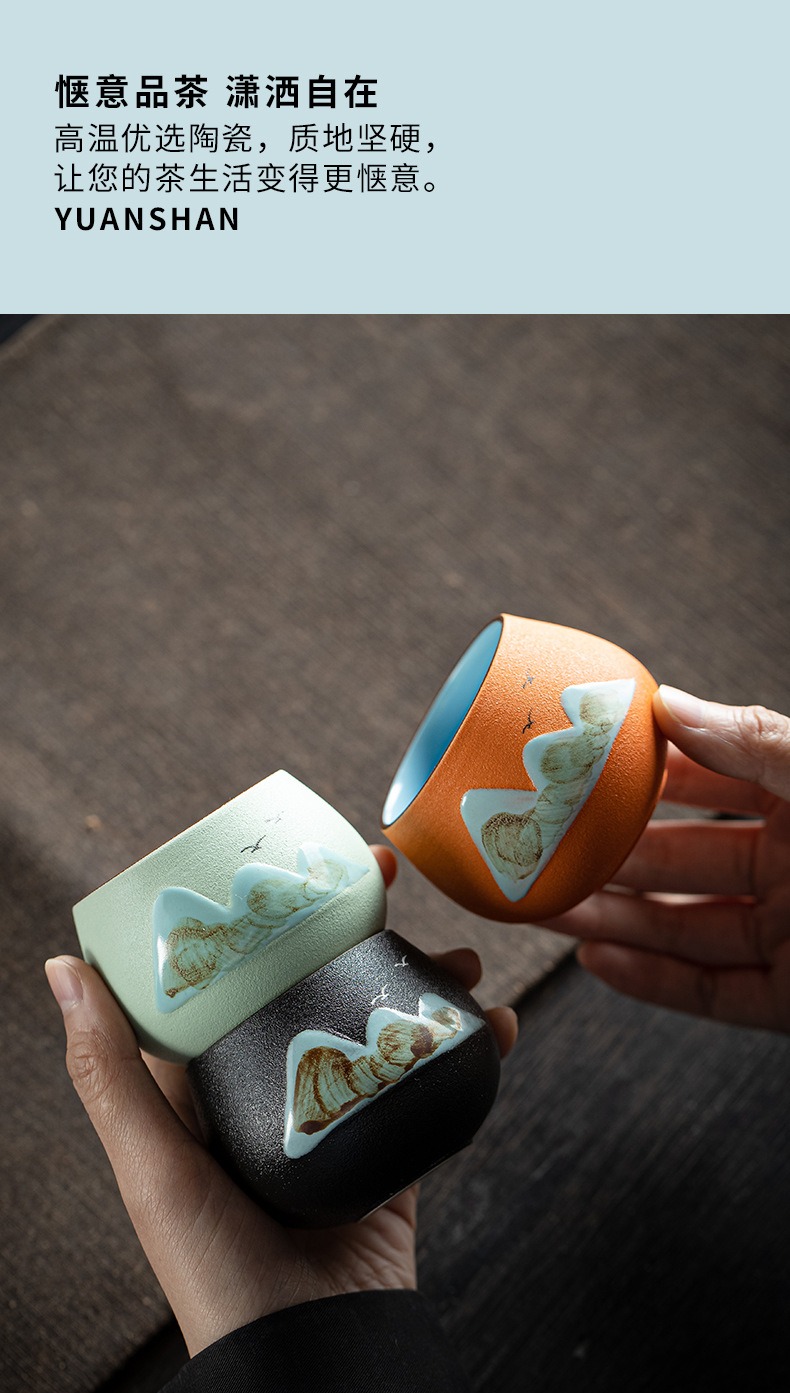 千里江山陶瓷茶杯粗陶水杯国潮办公杯送长辈父母乔迁伴手礼商务礼