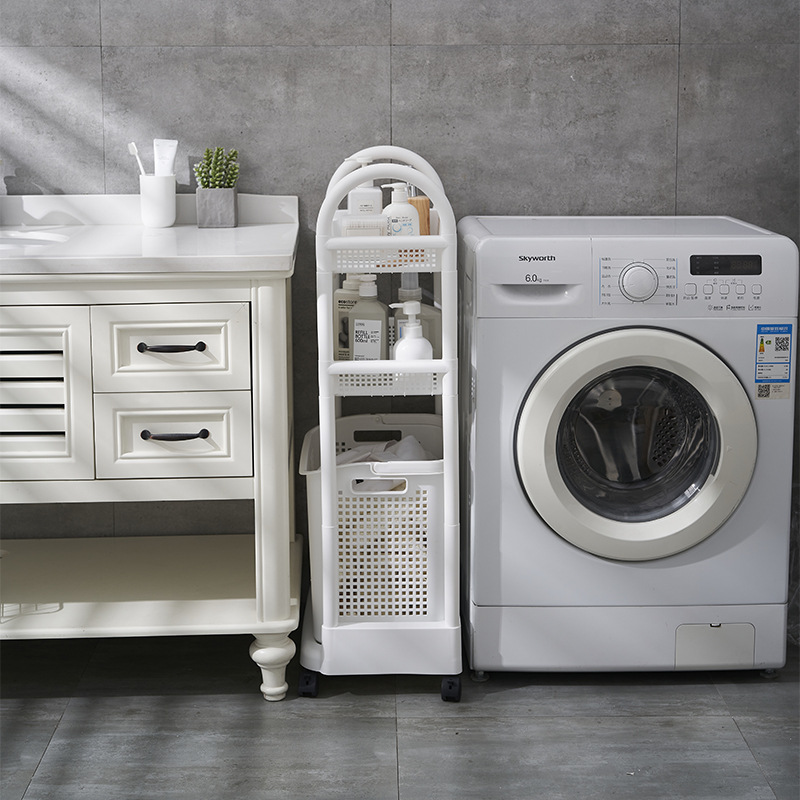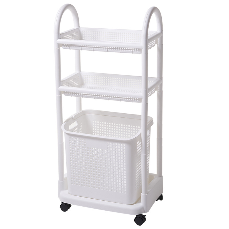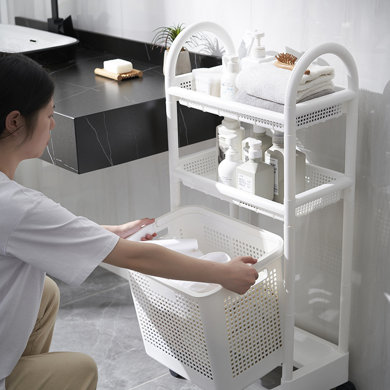 厂家现货批发简约可移动脏衣篮卫生间收纳筐置地式多层塑料置物架