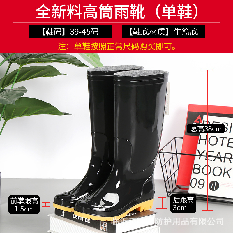 雨鞋男款PVC38CM工地三防劳保防水鞋成人钓鱼胶鞋牛筋底高筒雨靴