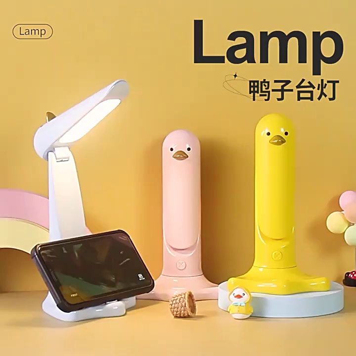 新款萌趣鸭子折叠台灯LED可充电小台灯桌面儿童小夜灯手机支架