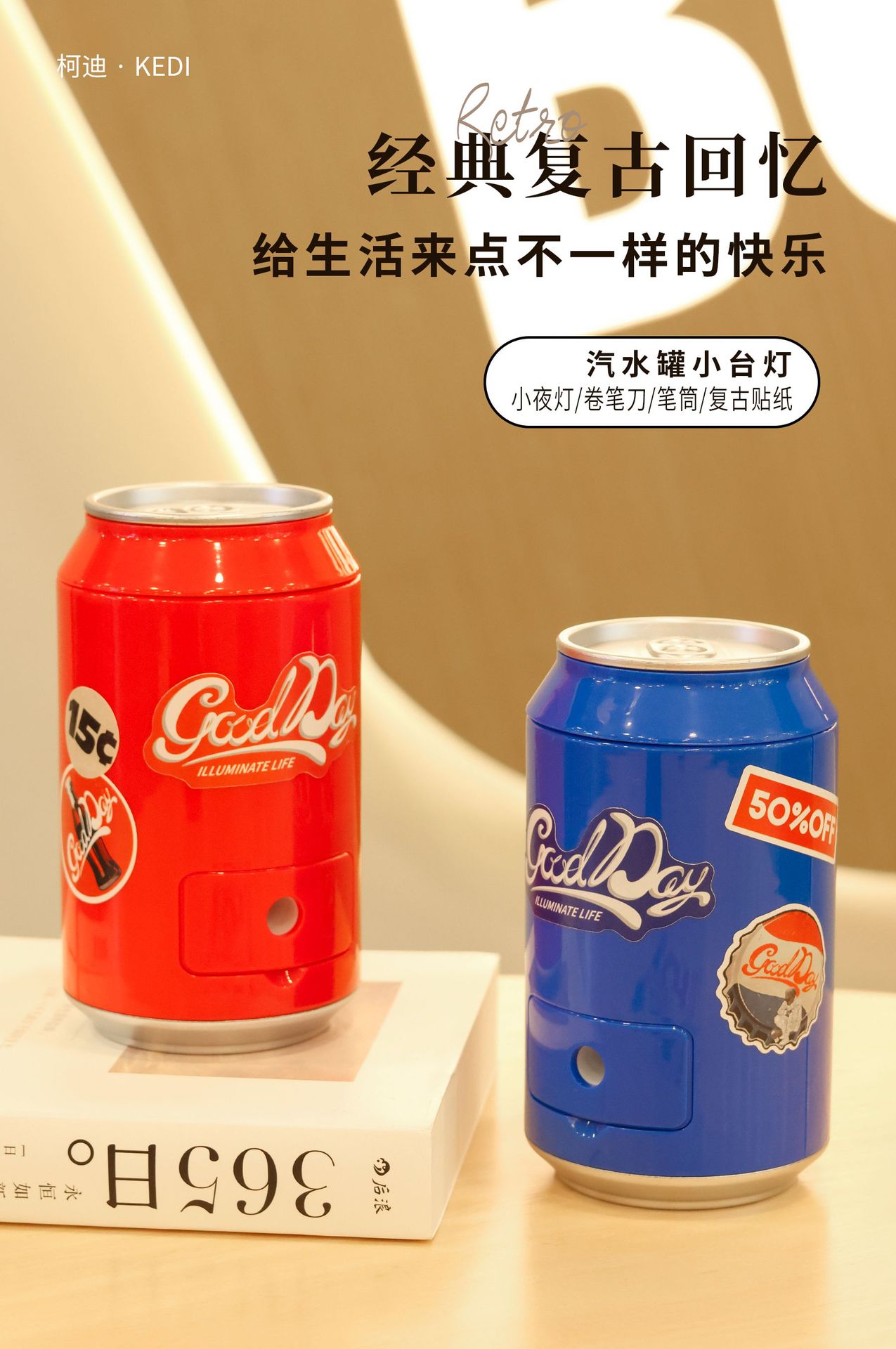 创意汽水罐LED充电台灯 书桌学习小夜灯迷你饮料罐带铅笔削小夜灯