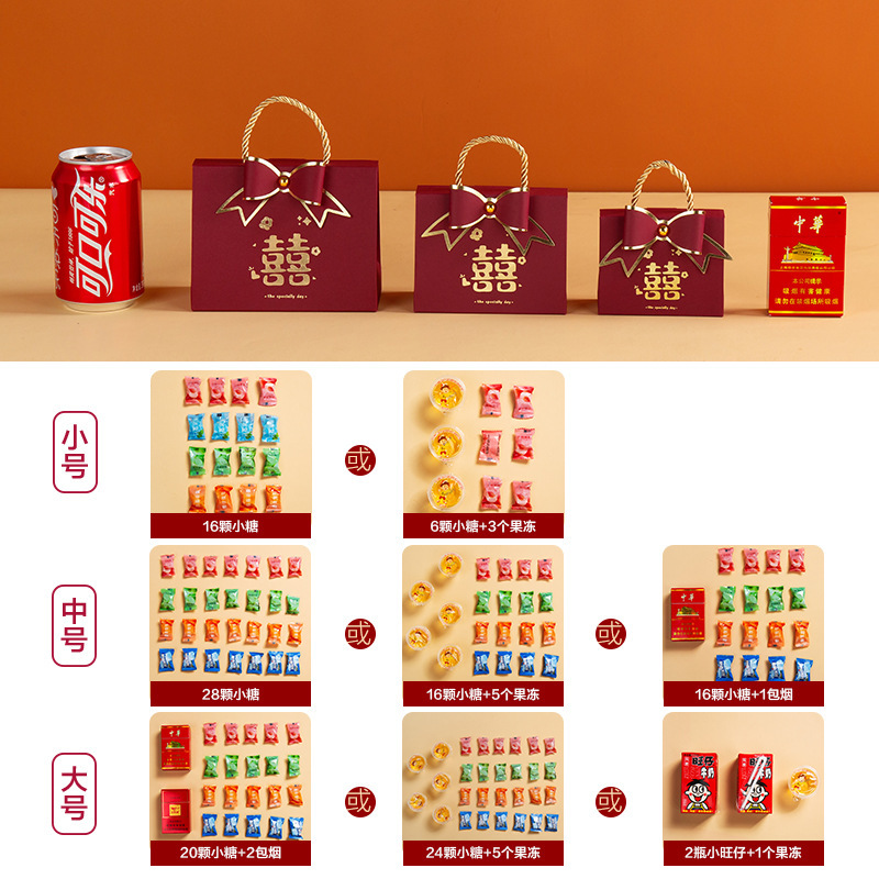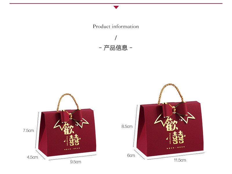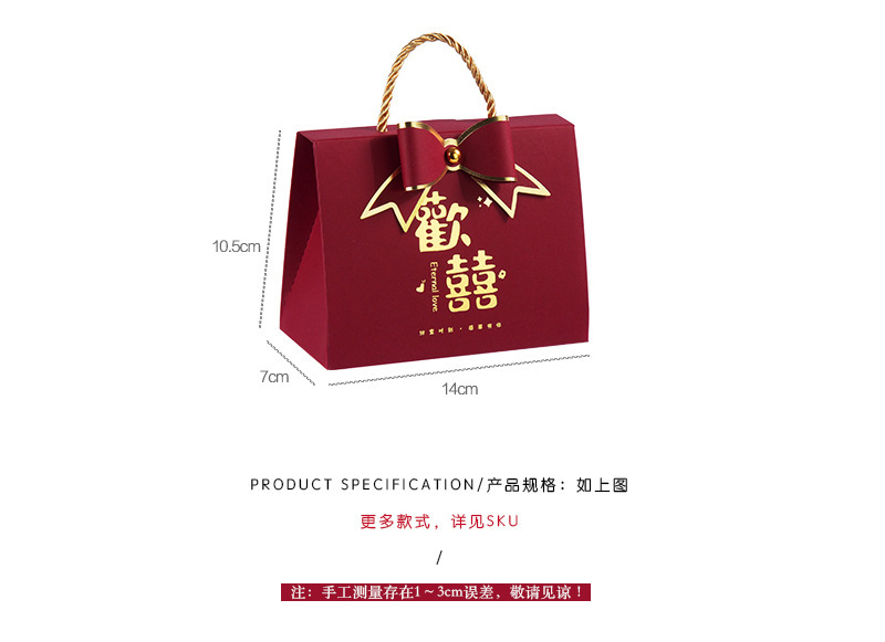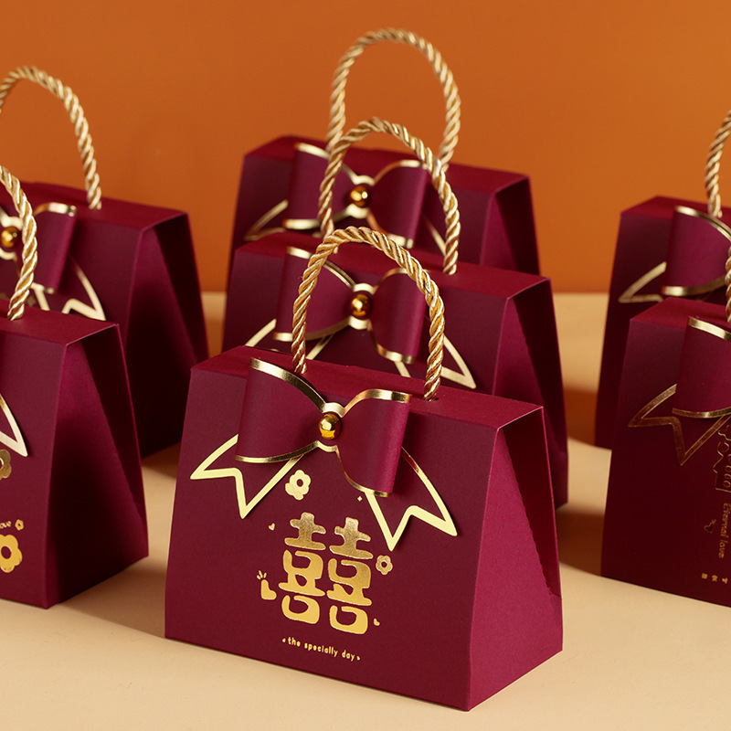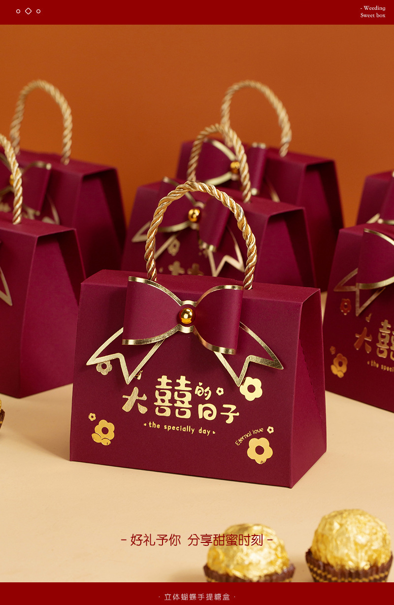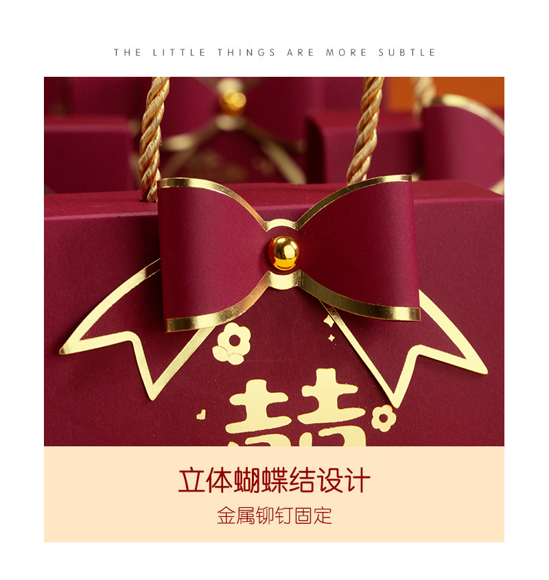 喜庆用品批发新款结婚手提喜糖盒蝴蝶结中式伴手礼礼盒加厚红卡