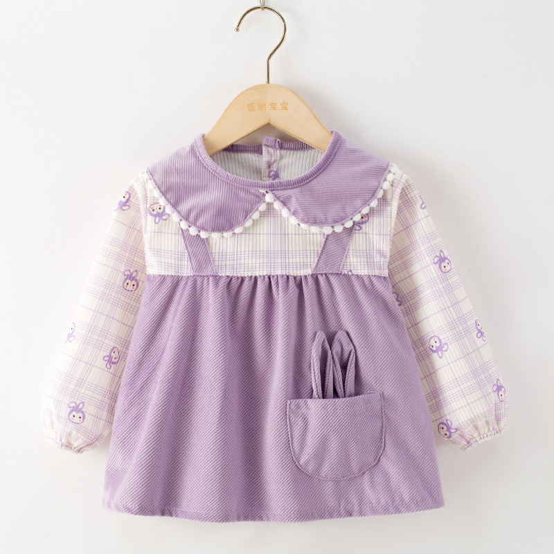 秋冬儿童罩衣宝宝吃饭围兜公主裙防水画画衣婴儿饭兜反穿小孩护衣