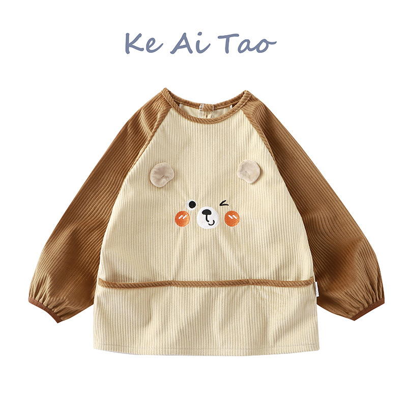 儿童罩衣灯芯绒秋冬宝宝反穿衣防水卡通长袖倒褂外穿带兜保暖外套