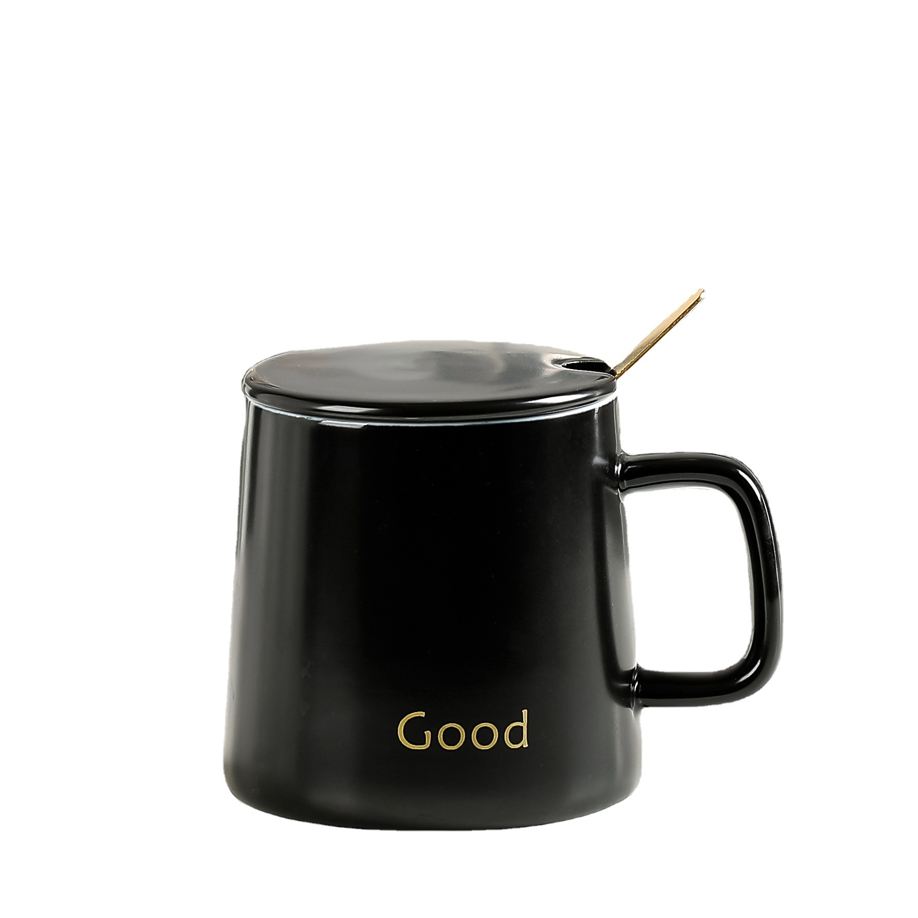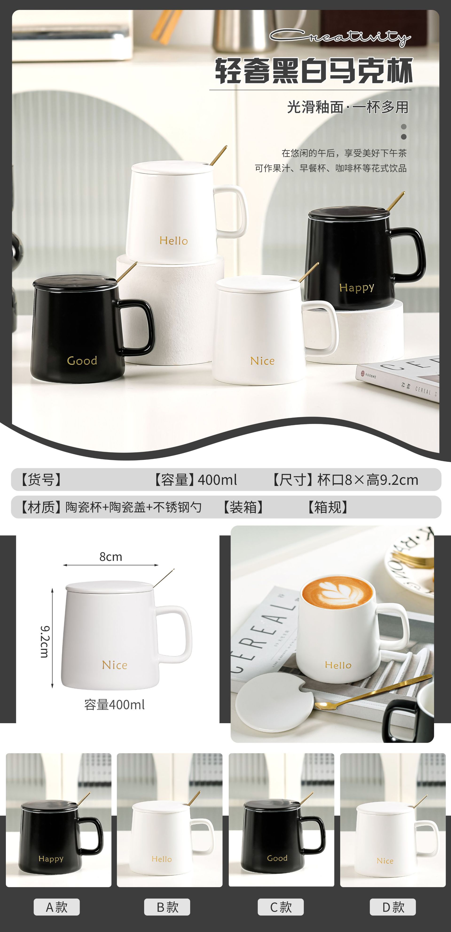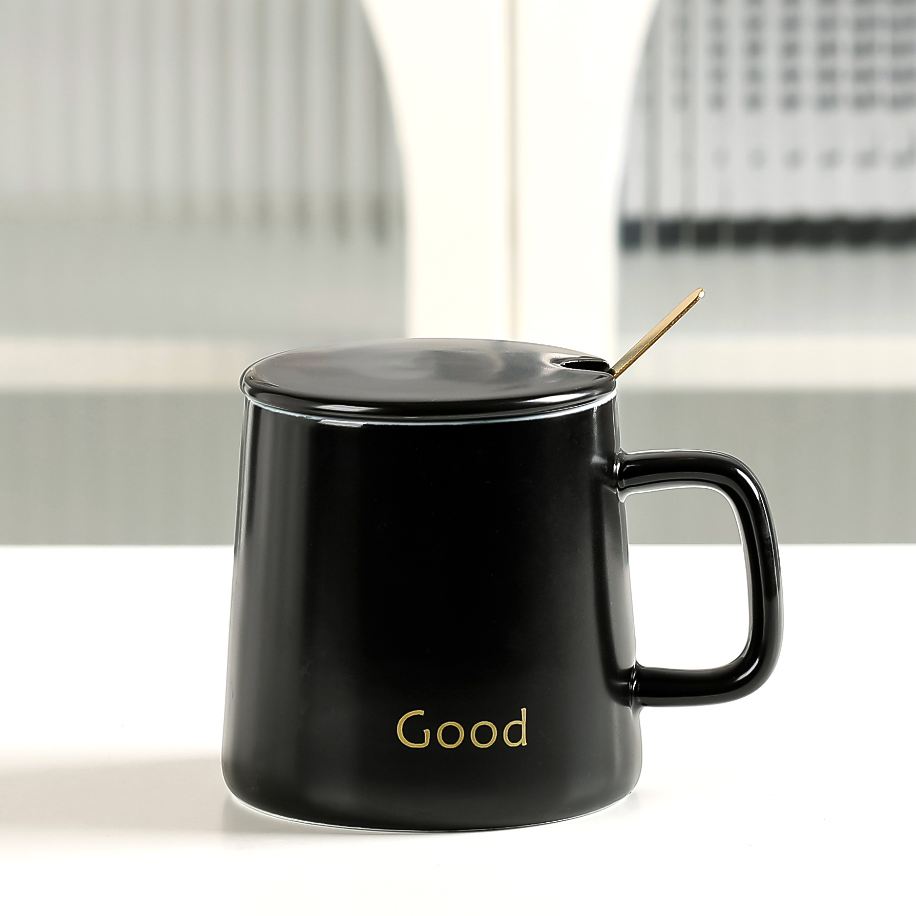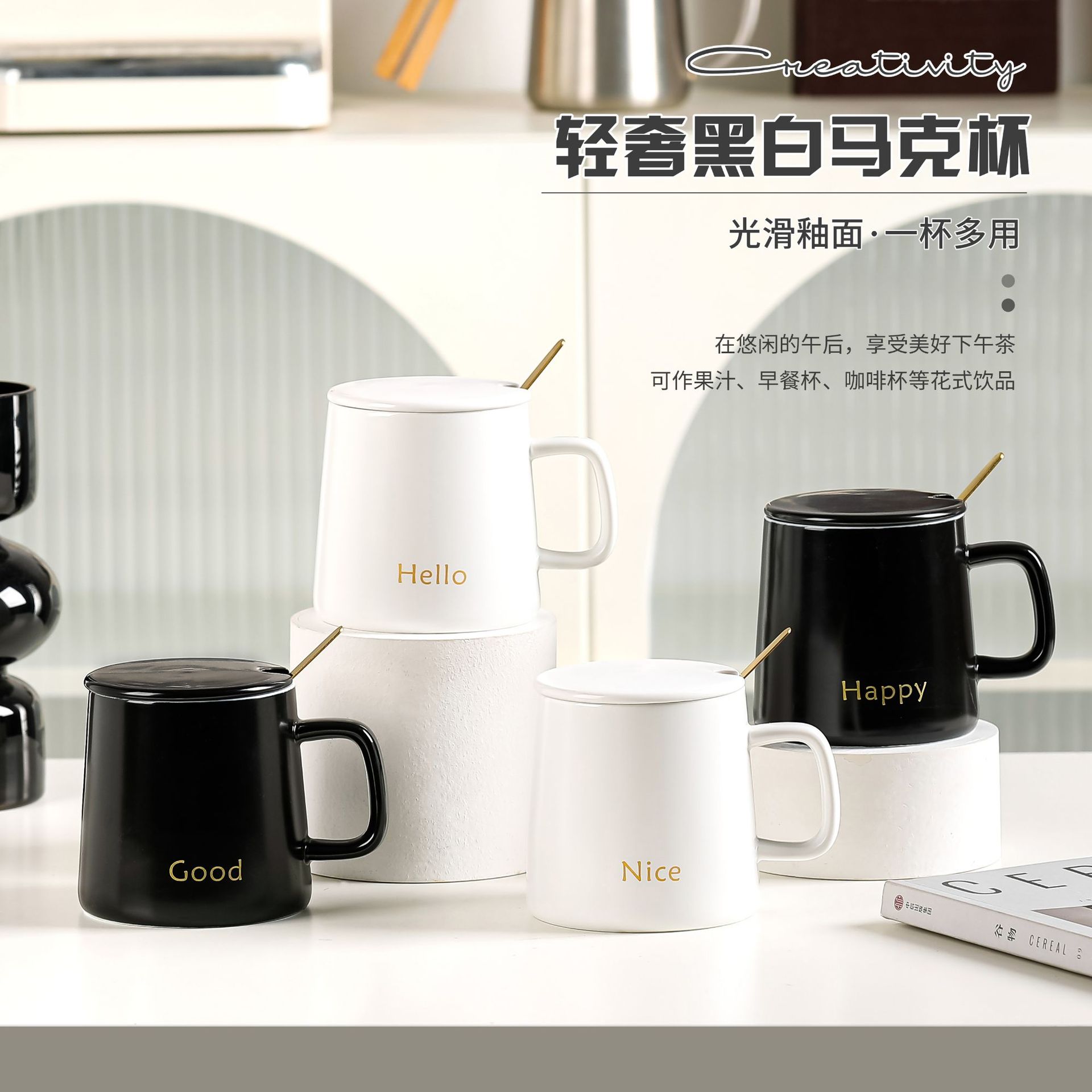 批发马克杯陶瓷杯高颜值牛奶早餐杯带盖带勺学生水杯办公商务杯