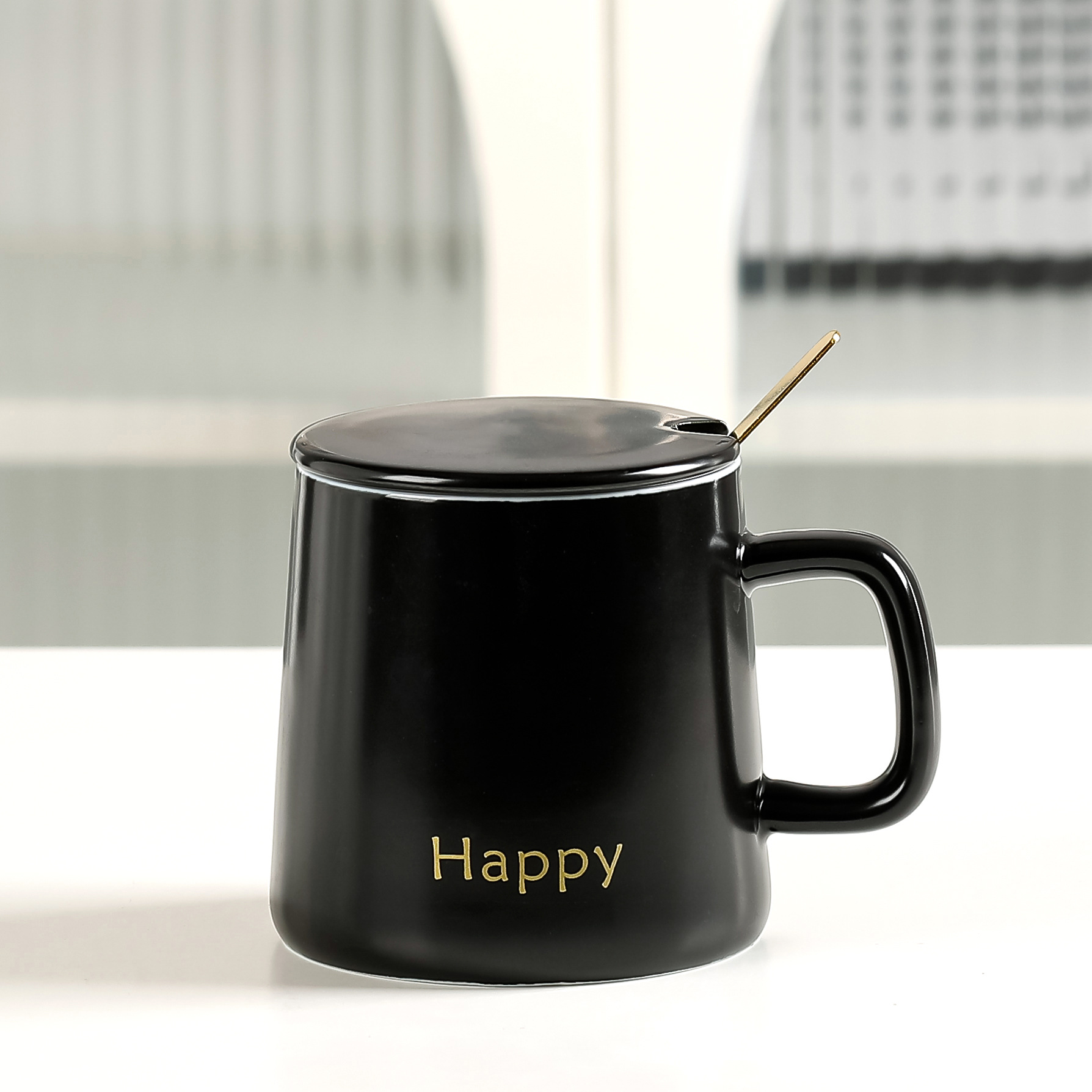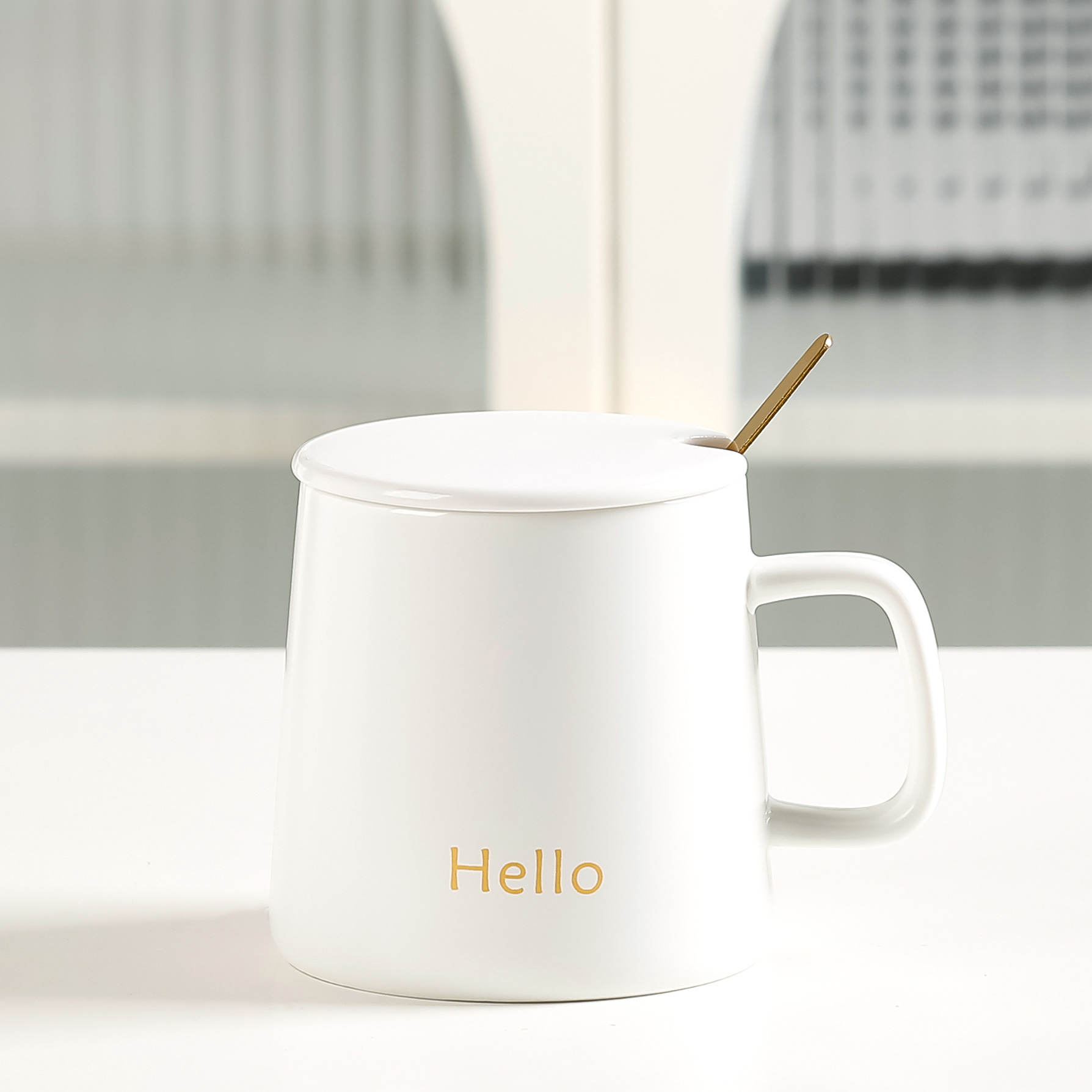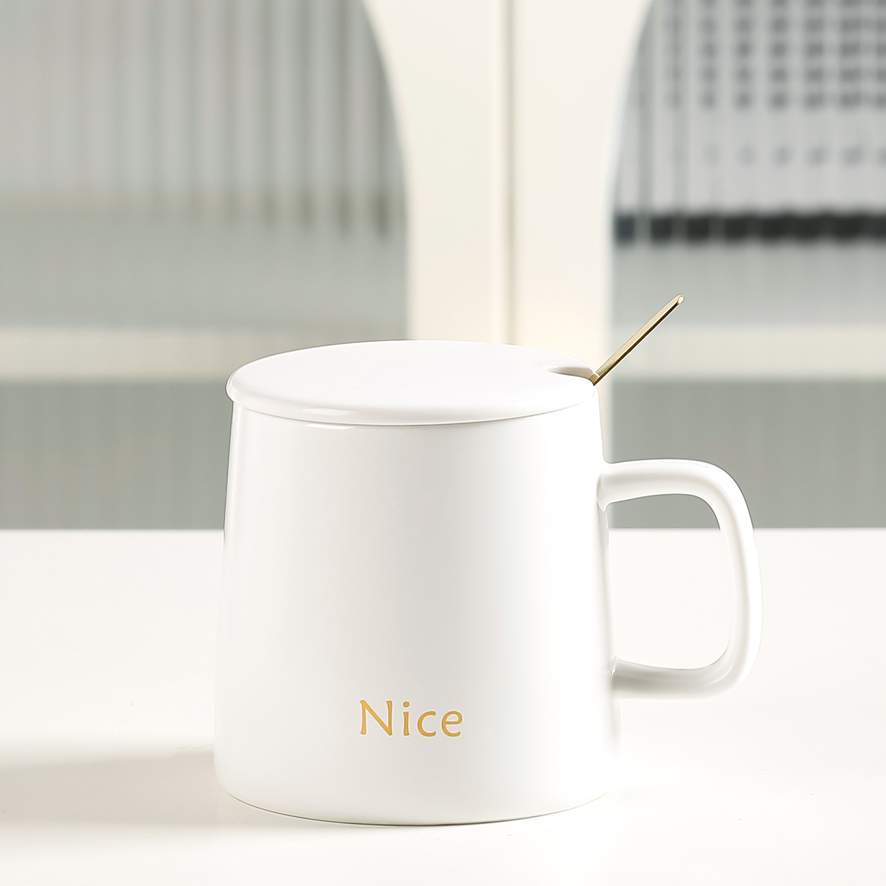 批发马克杯陶瓷杯高颜值牛奶早餐杯带盖带勺学生水杯办公商务杯