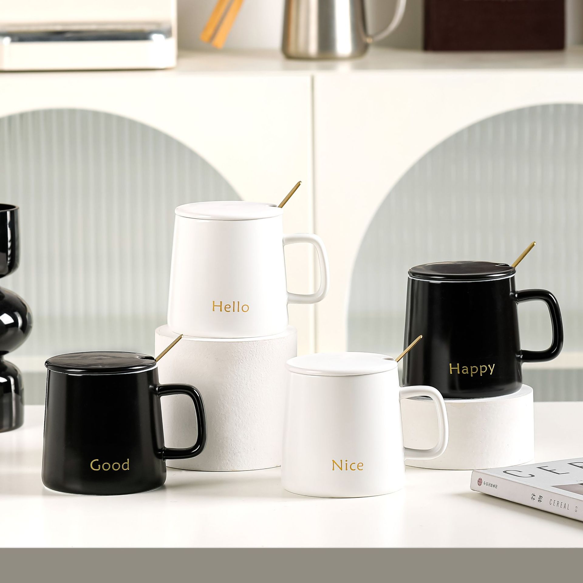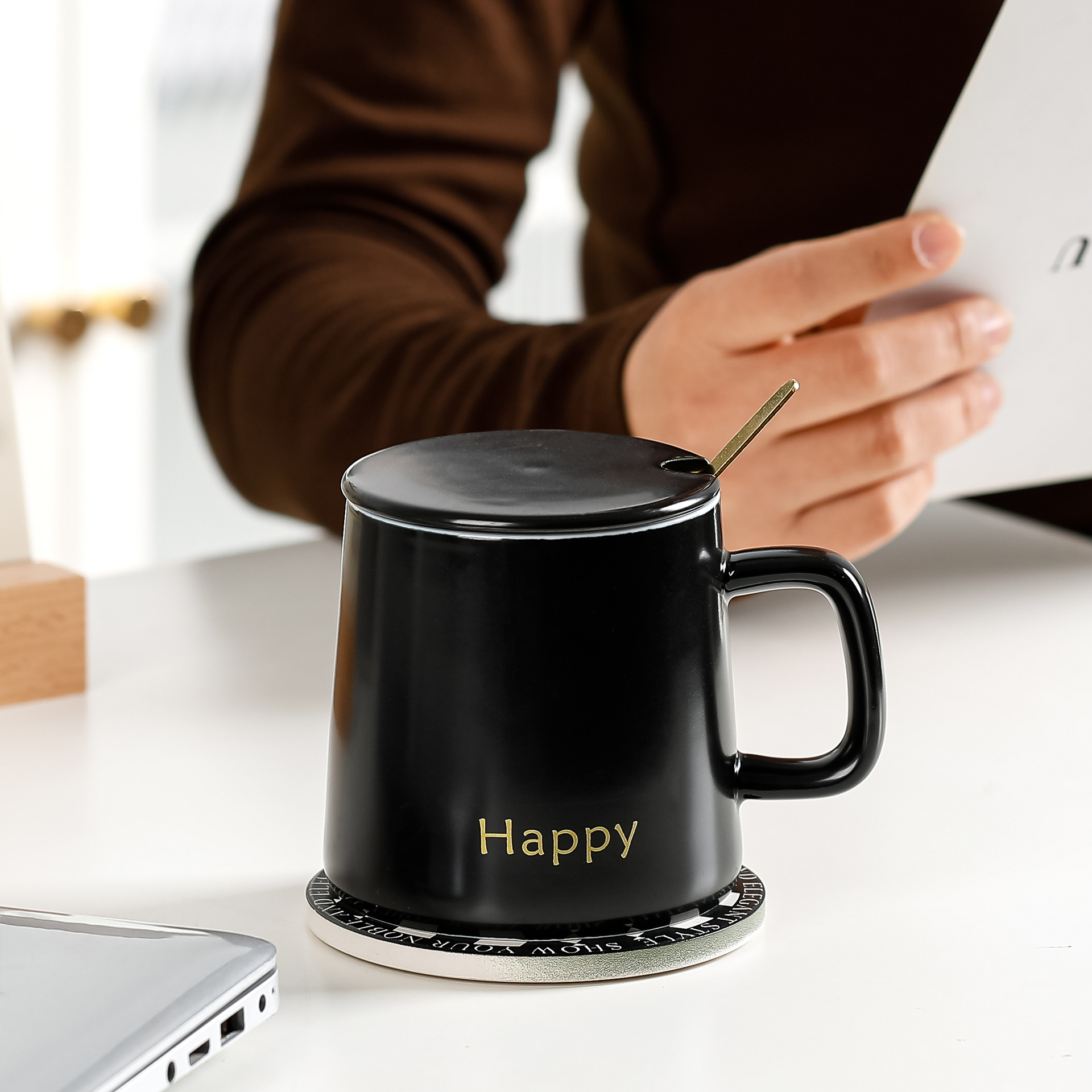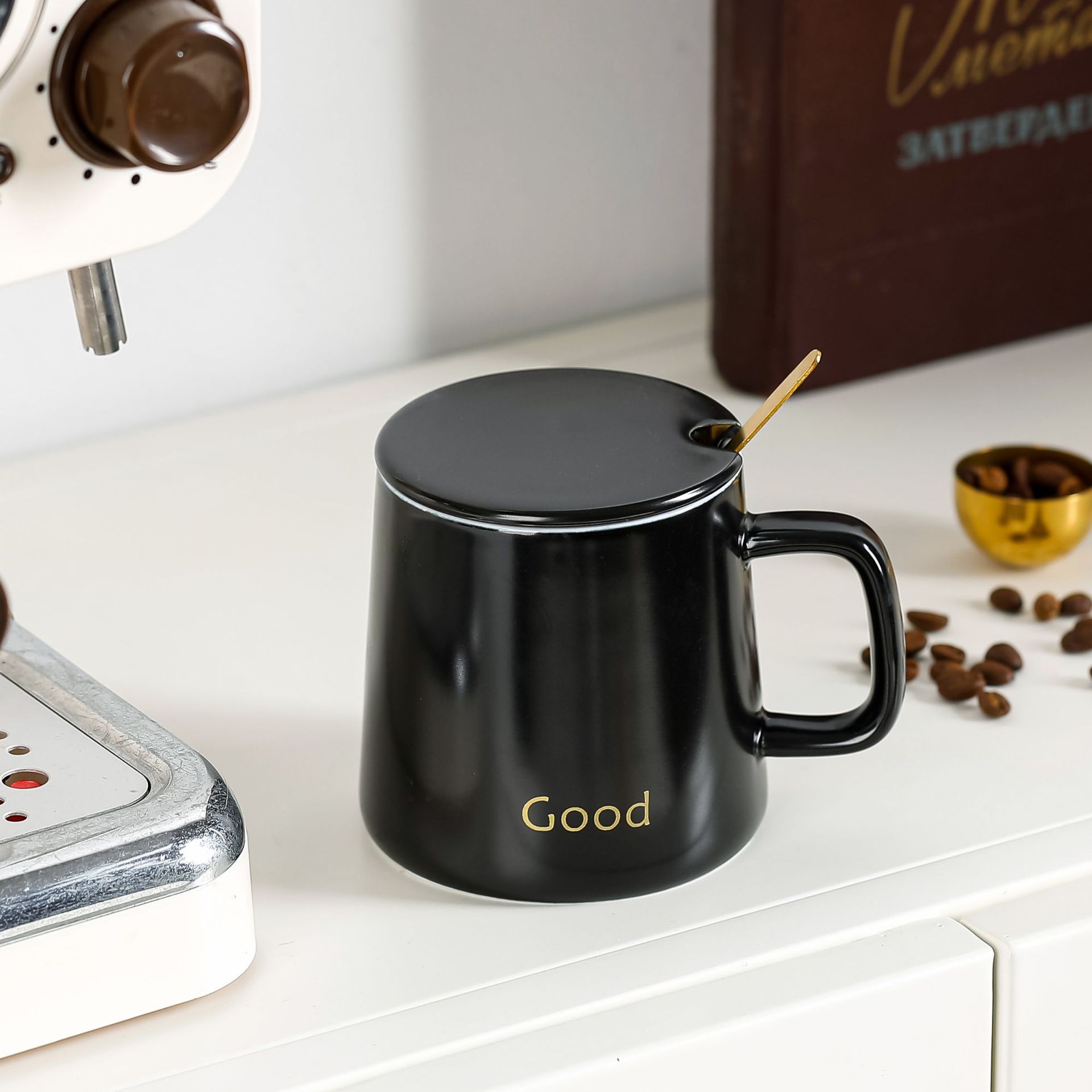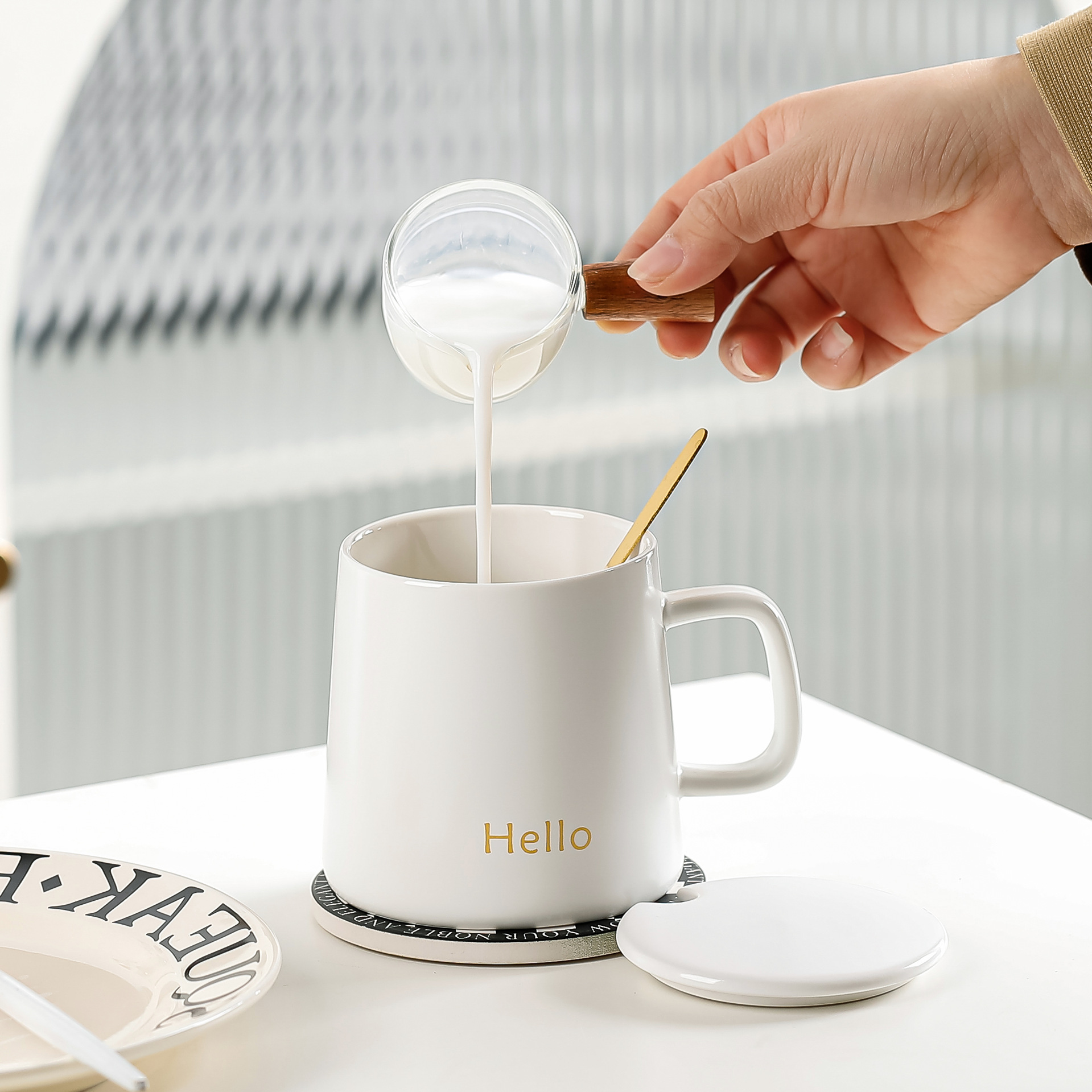 批发马克杯陶瓷杯高颜值牛奶早餐杯带盖带勺学生水杯办公商务杯