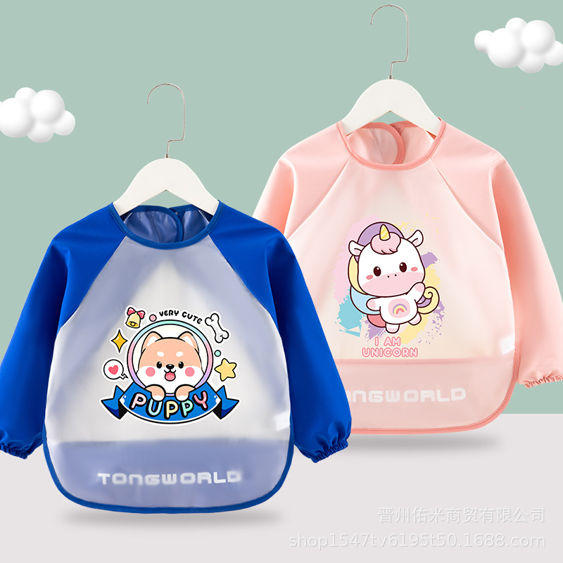 新款宝宝吃饭罩衣围兜女童防水防脏婴儿饭兜男儿童围裙长袖反穿衣