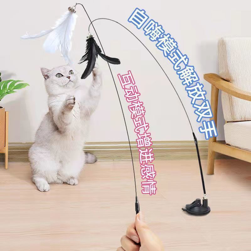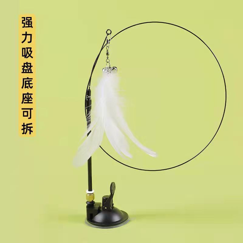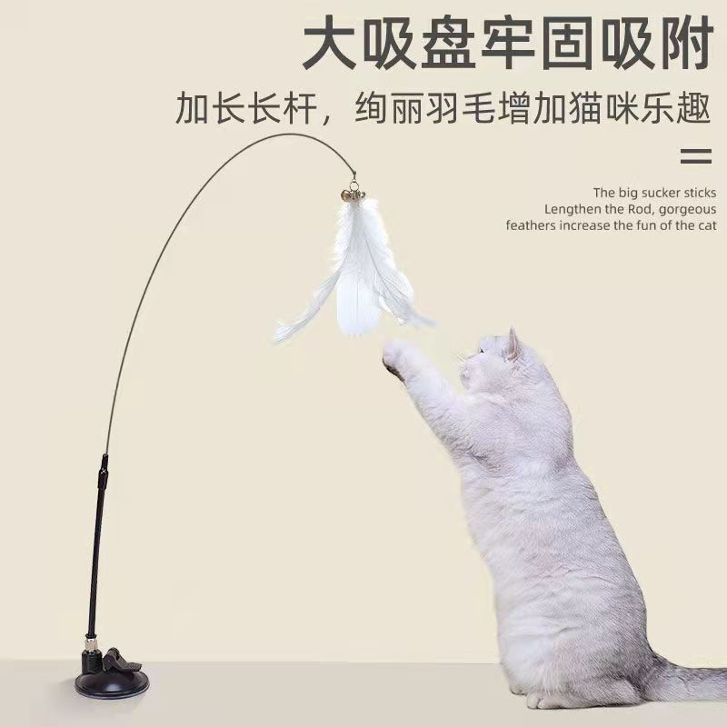 宠物猫咪玩具吸盘钢丝羽毛逗猫棒长杆带铃铛猫咪自嗨宠物玩具代发