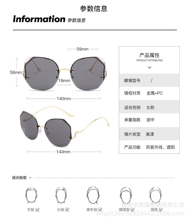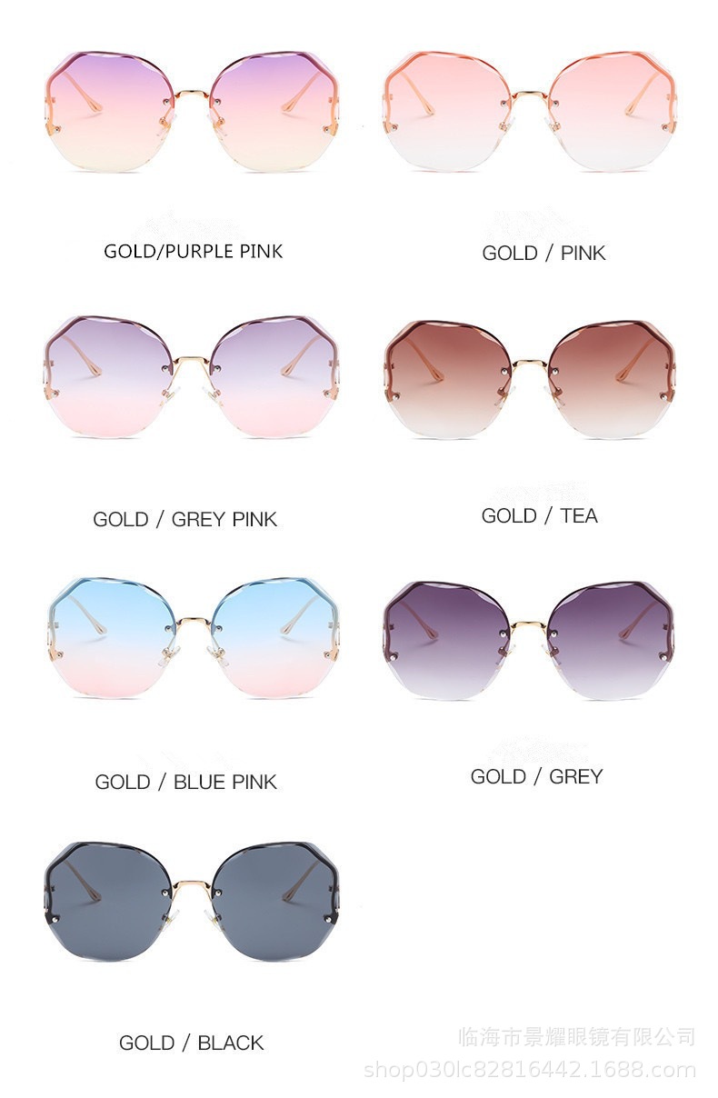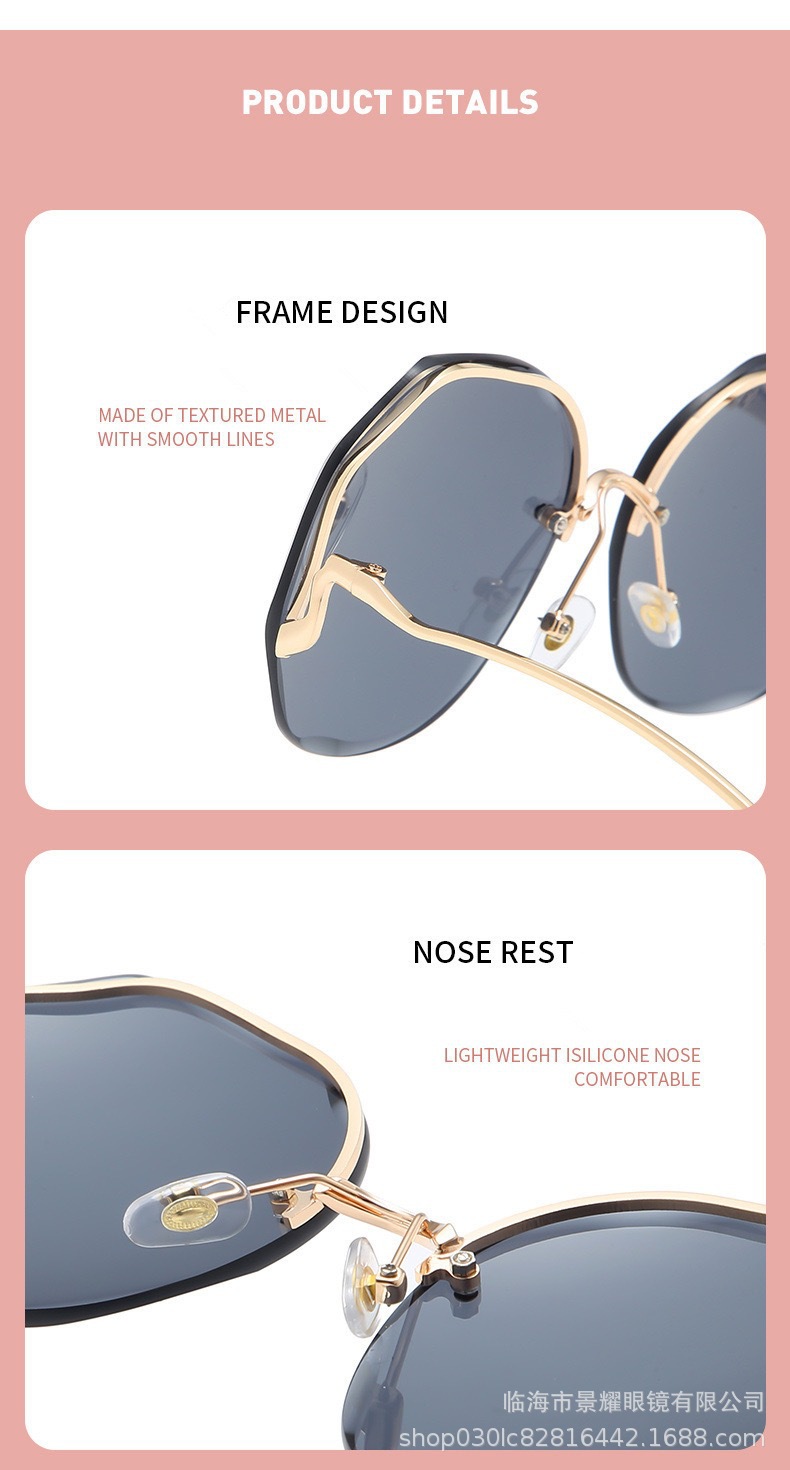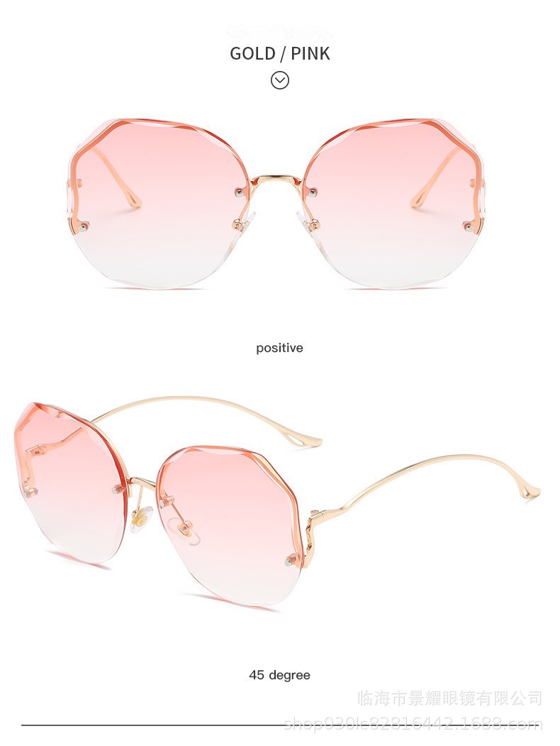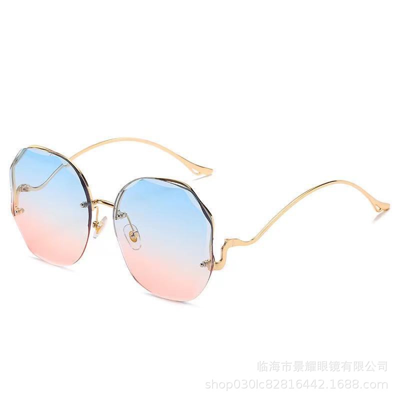 时尚多边形无框切边墨镜女金属弧形镜腿ins风街拍防晒太阳镜批发