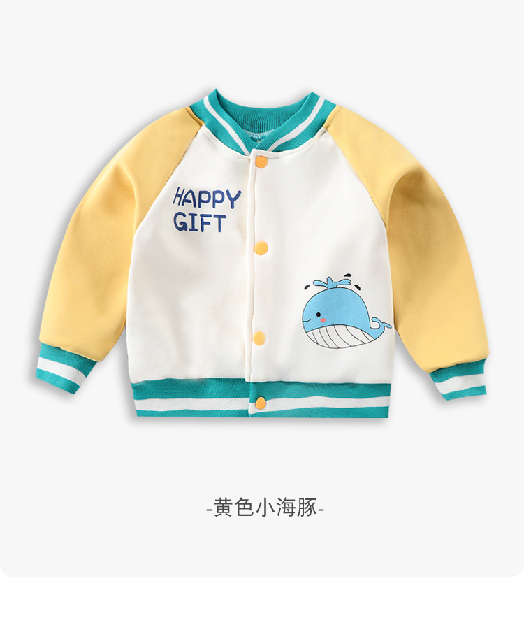 儿童棒球服2023春秋韩版婴儿加绒加厚开衫卡通卫衣外套幼儿上衣