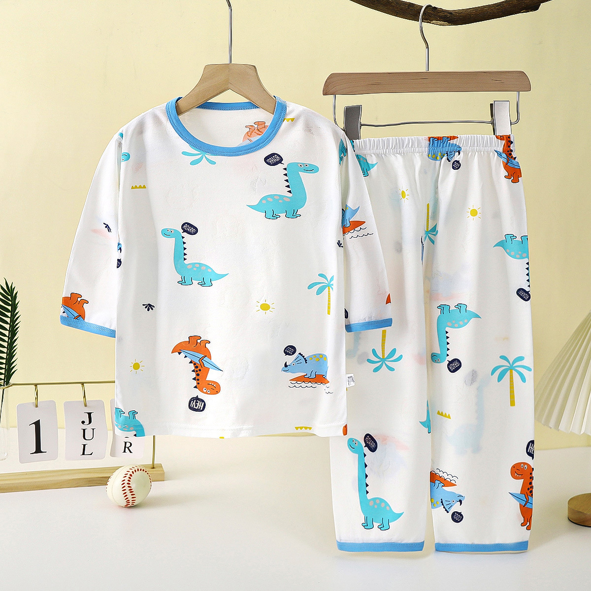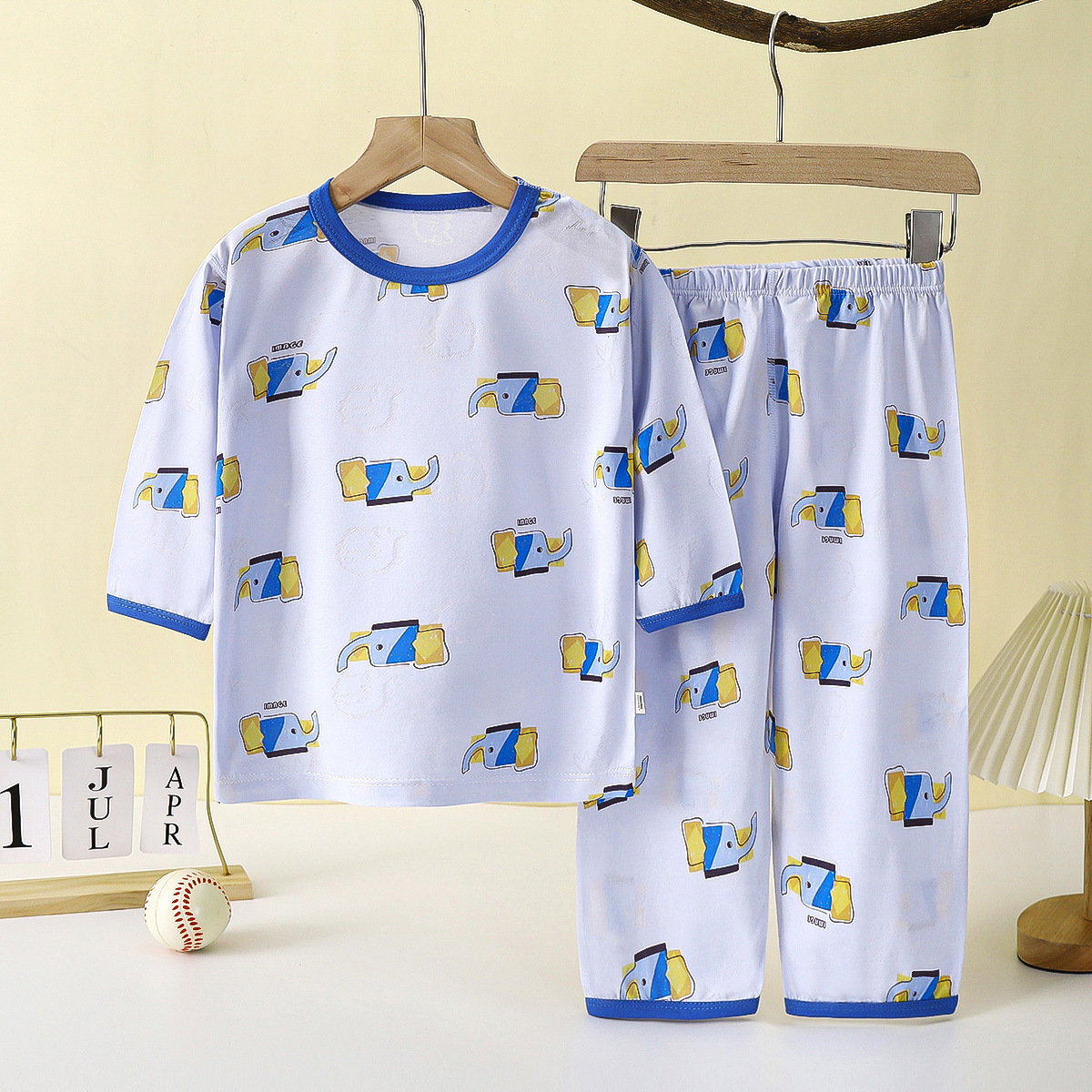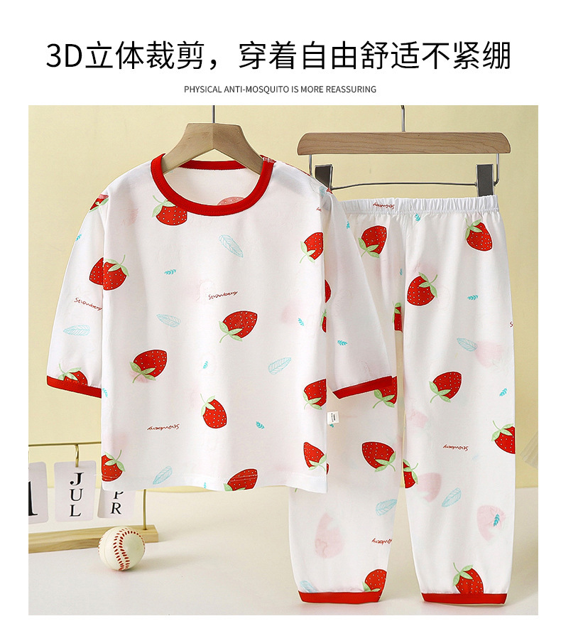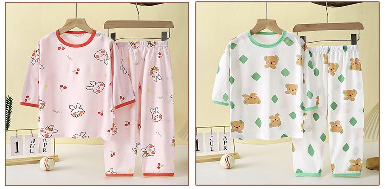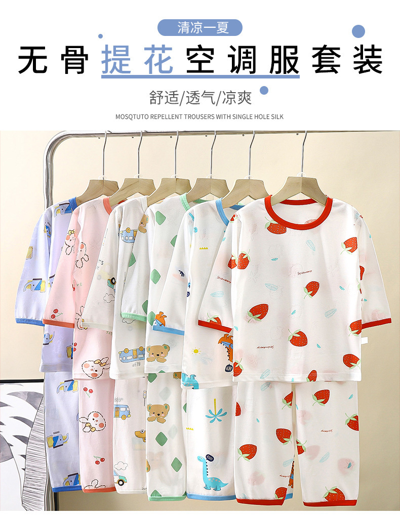 儿童艾草无骨七分家居服套装夏季薄款中大童睡衣家居服防蚊套装