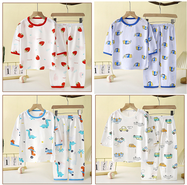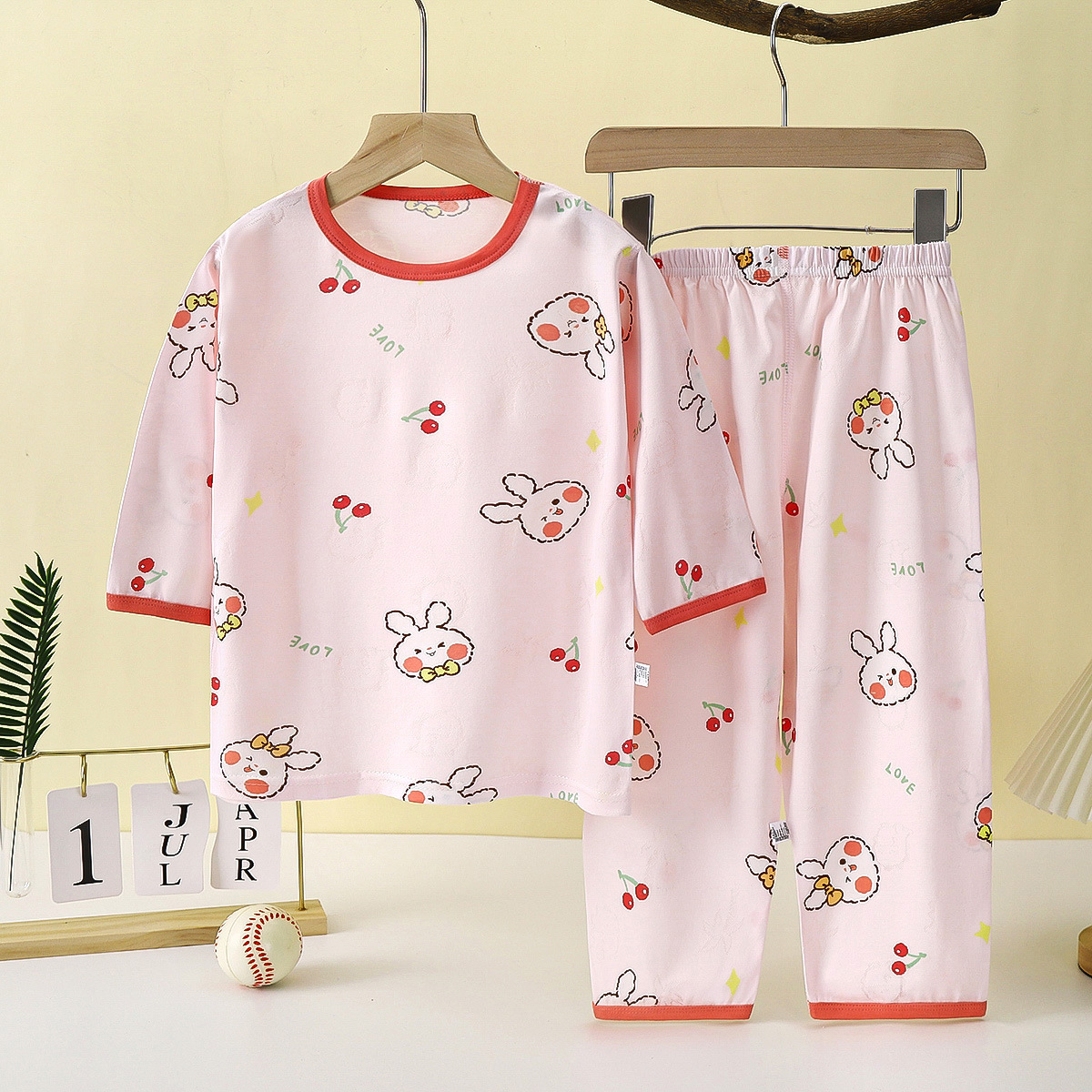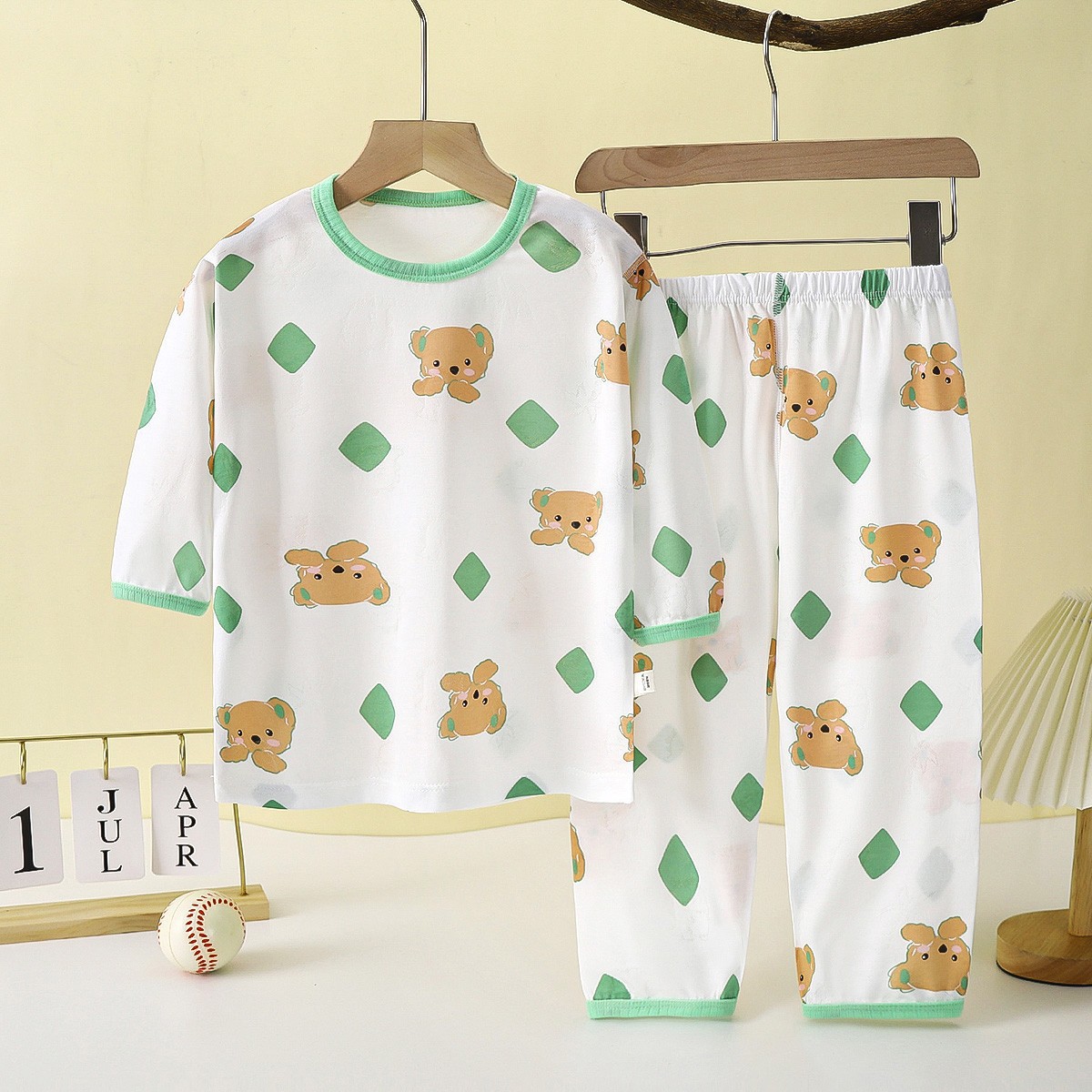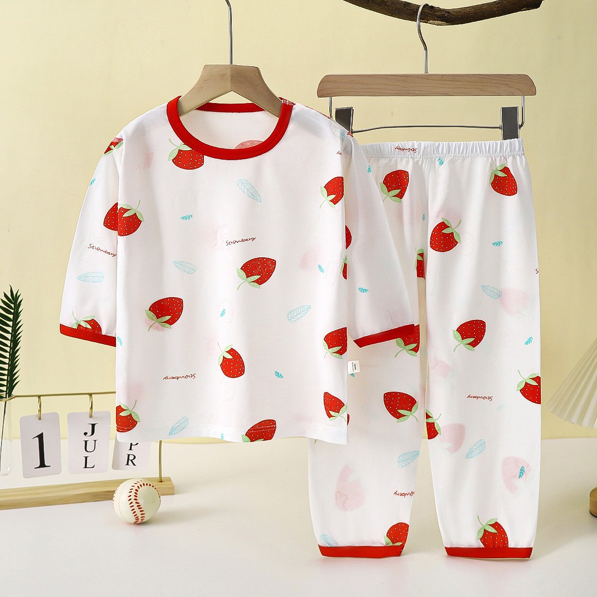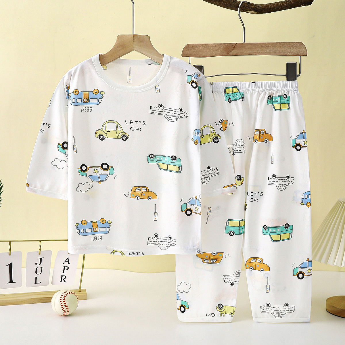 儿童艾草无骨七分家居服套装夏季薄款中大童睡衣家居服防蚊套装
