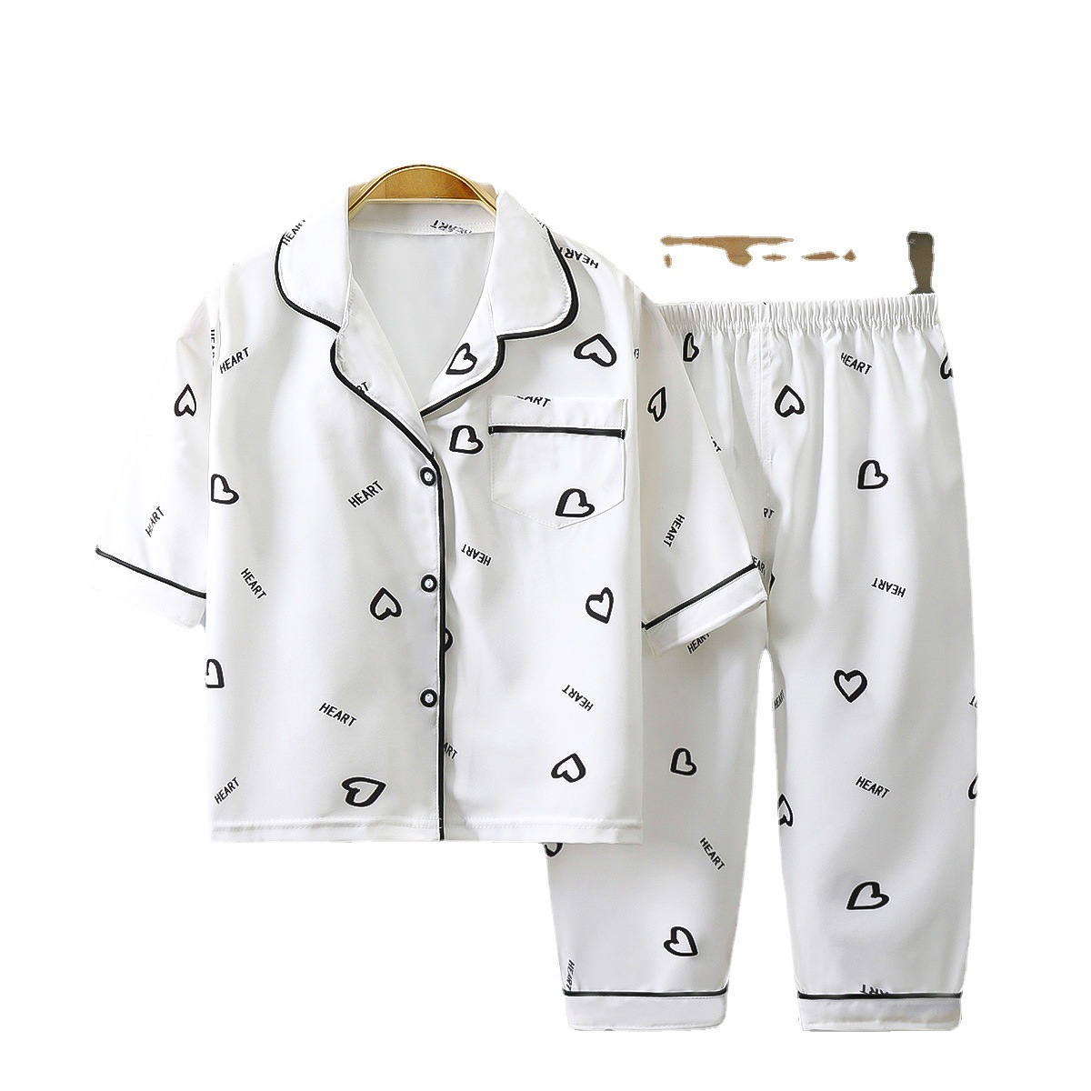 夏季儿童家居服翻领睡衣套装薄款七分袖七分裤男女童家居服空调服