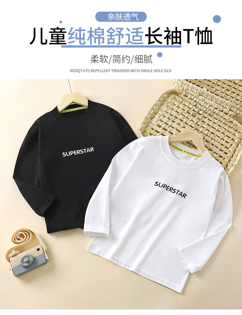 儿童纯棉打底中大童保暖内搭上衣男女宝春秋纯色休闲圆领长袖T恤