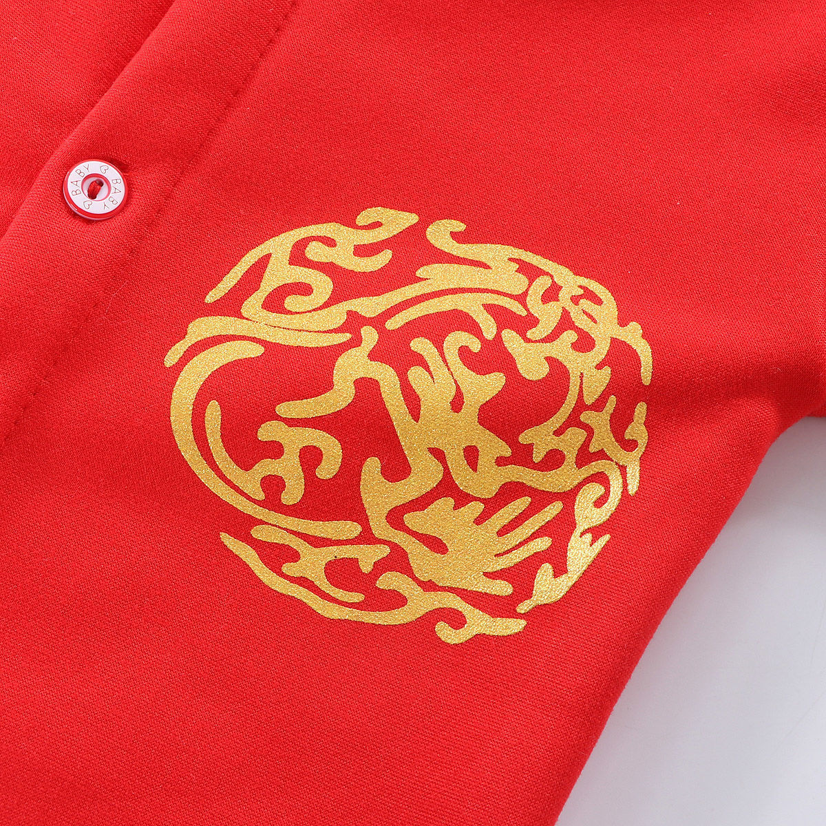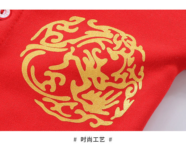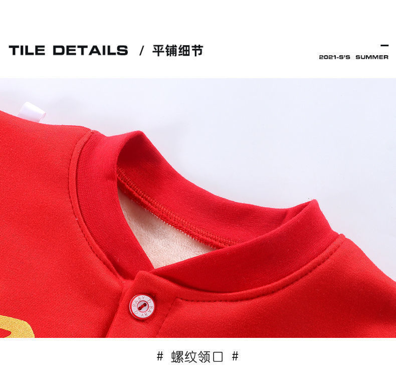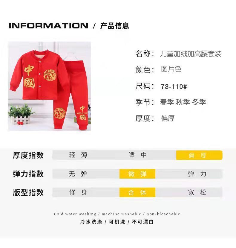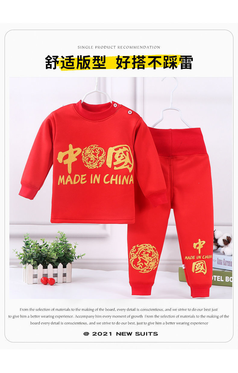 大红喜庆开衫套装可开裆婴幼儿童拜年服保暖套装加绒加厚内衣现货