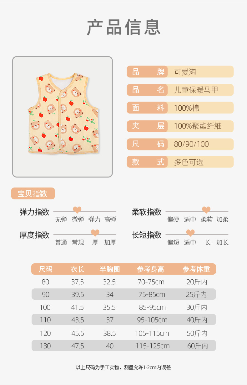 儿童秋冬马甲纯棉背心加绒宝宝保暖开衫加厚打底小坎肩男童女童