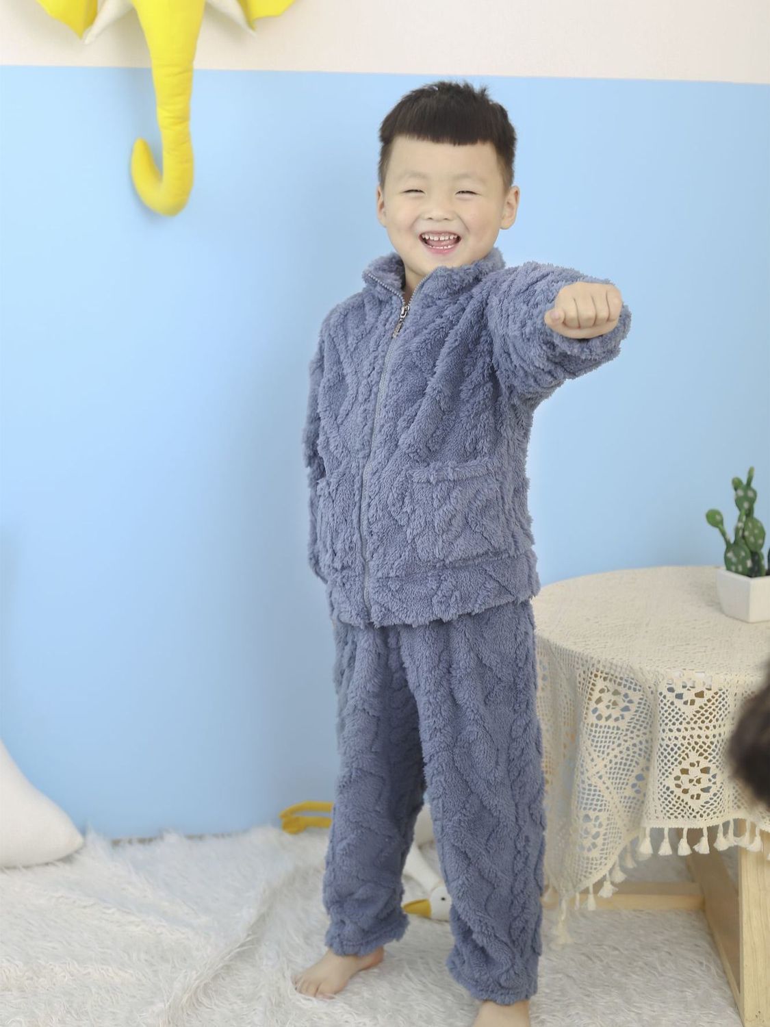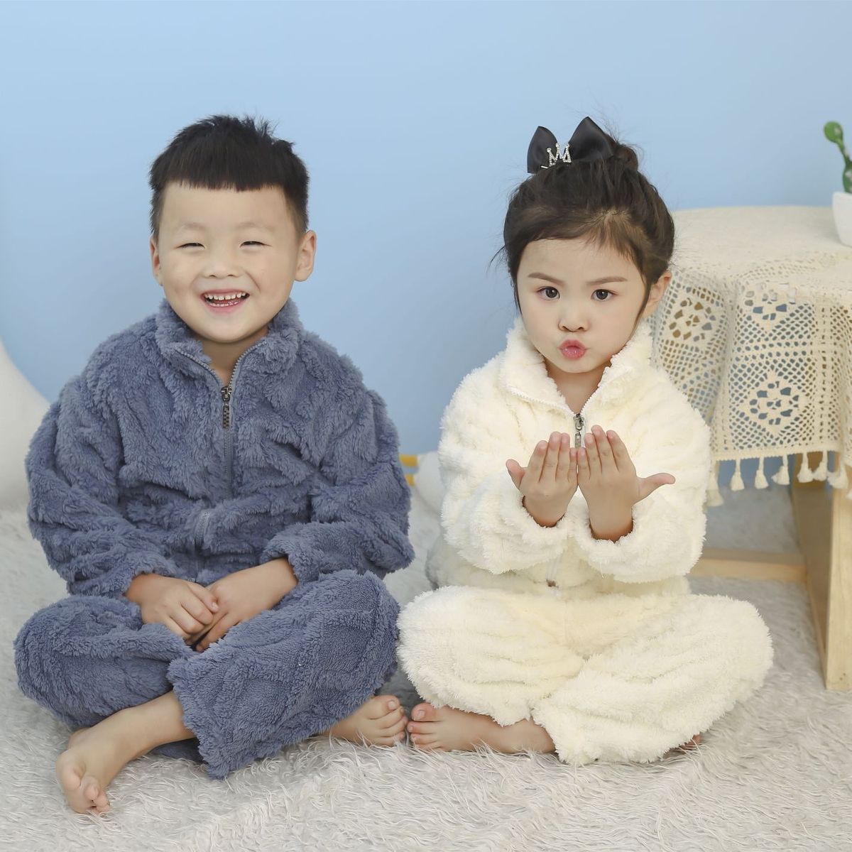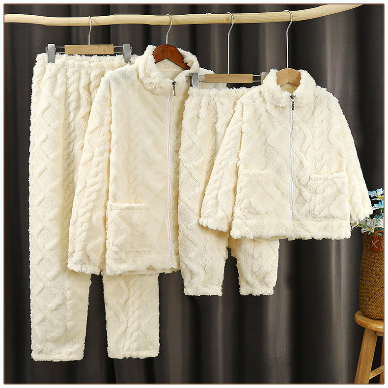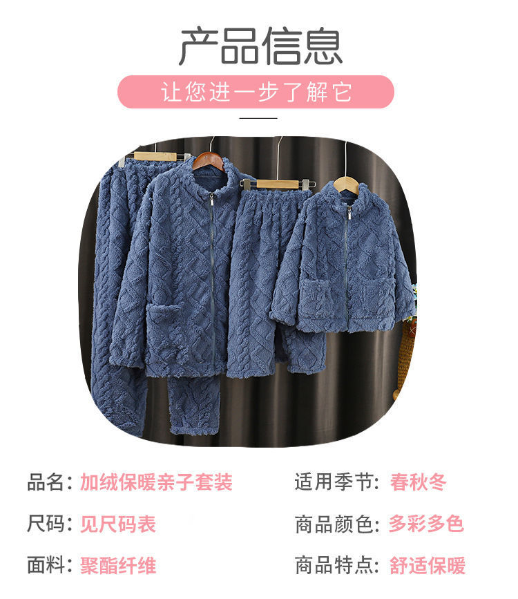新款儿童法兰绒睡衣男女亲子装秋冬加厚珊瑚绒家居服保暖套装