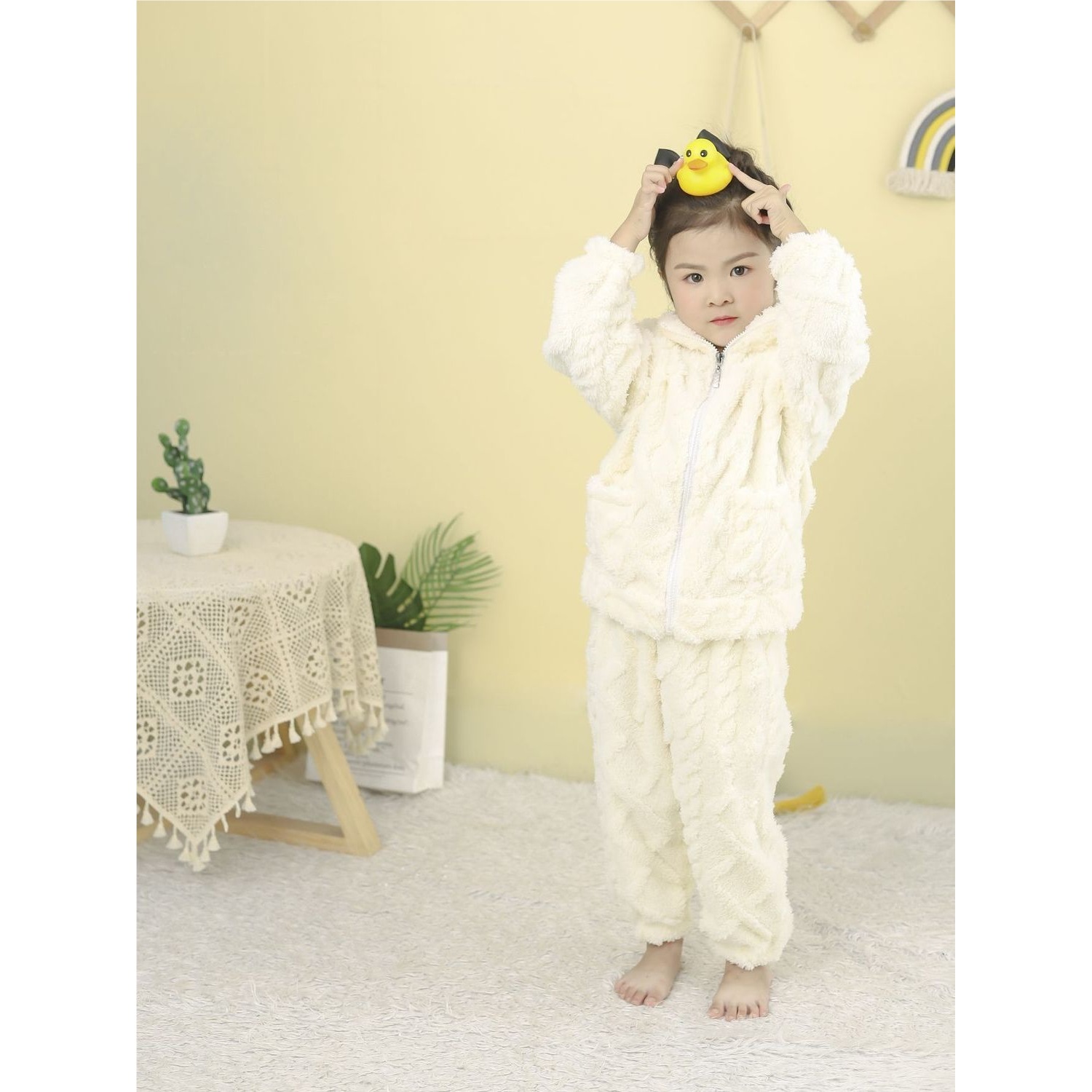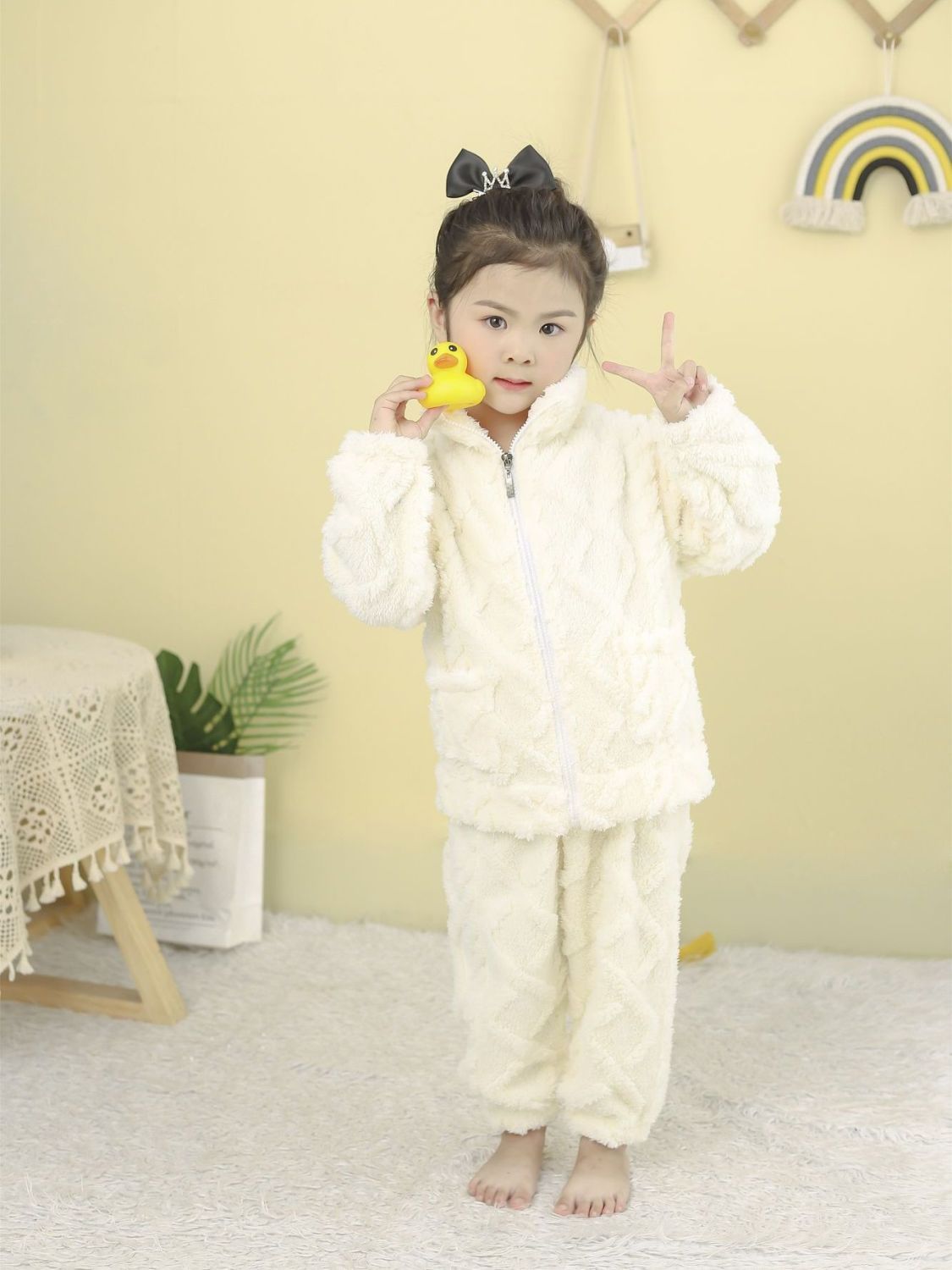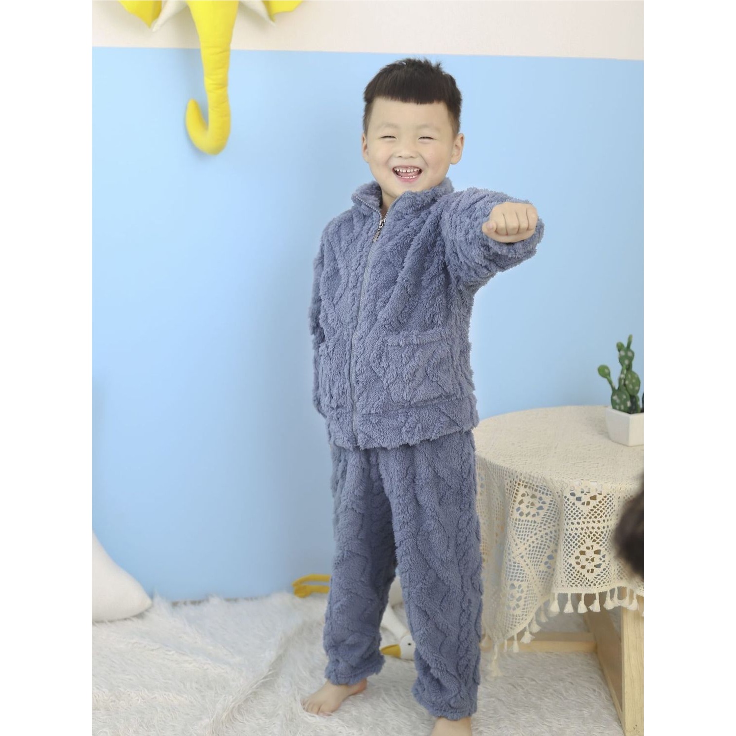 新款儿童法兰绒睡衣男女亲子装秋冬加厚珊瑚绒家居服保暖套装