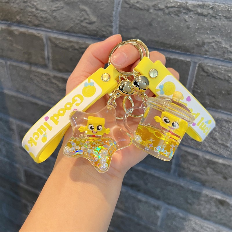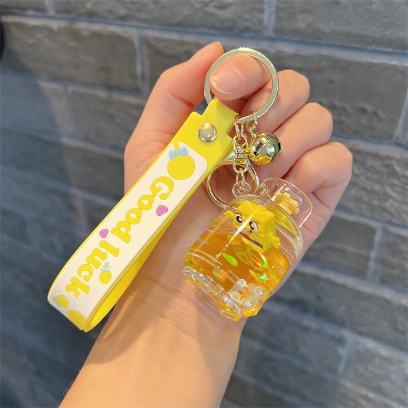 创意卡通海绵宝宝漂流瓶钥匙扣入油煤气罐海洋动物流沙瓶挂件批发